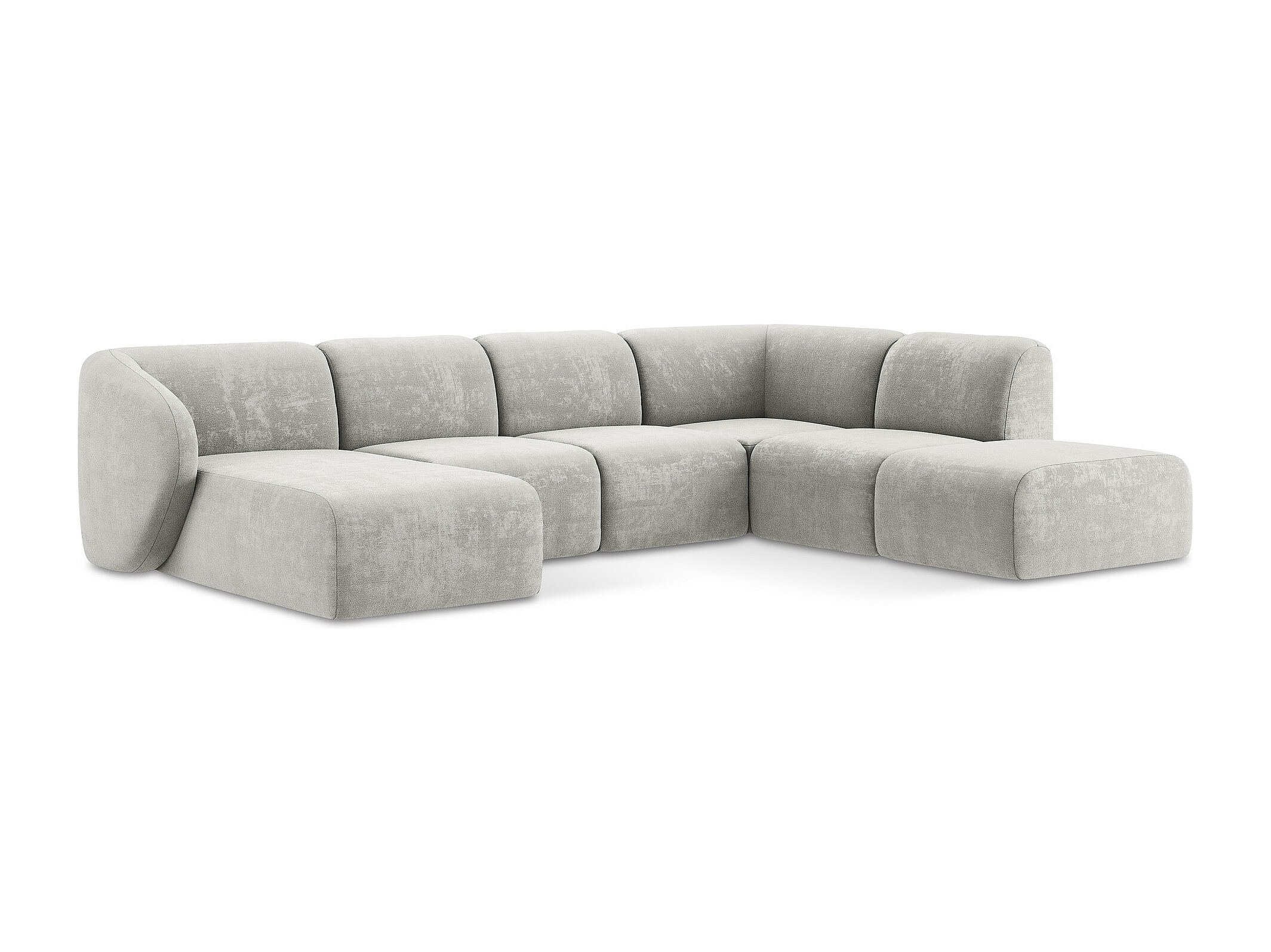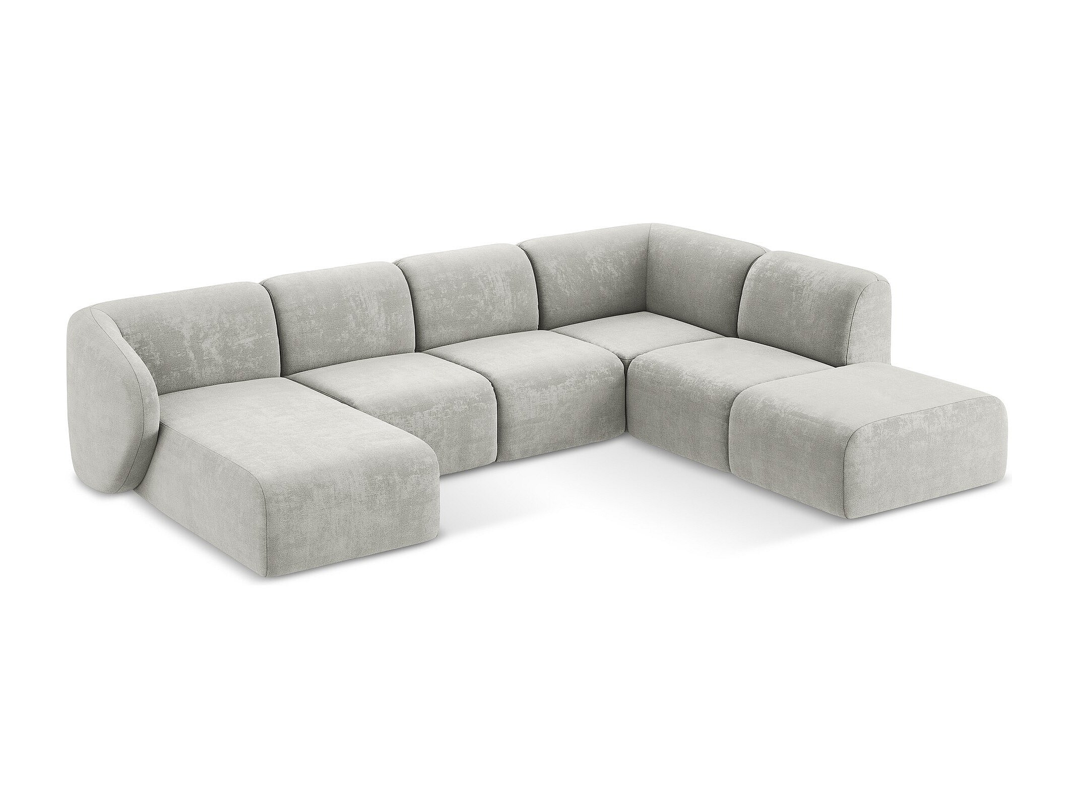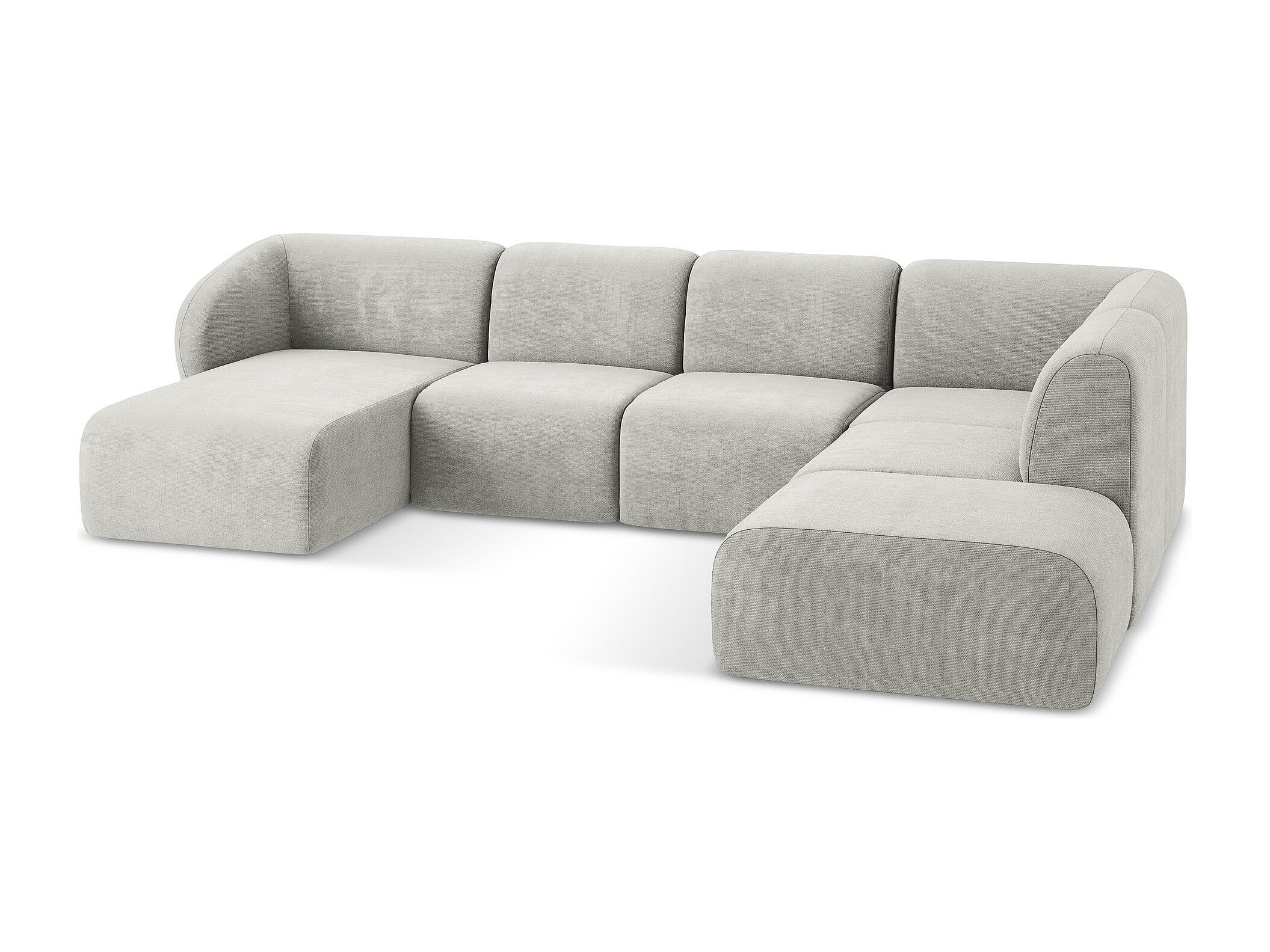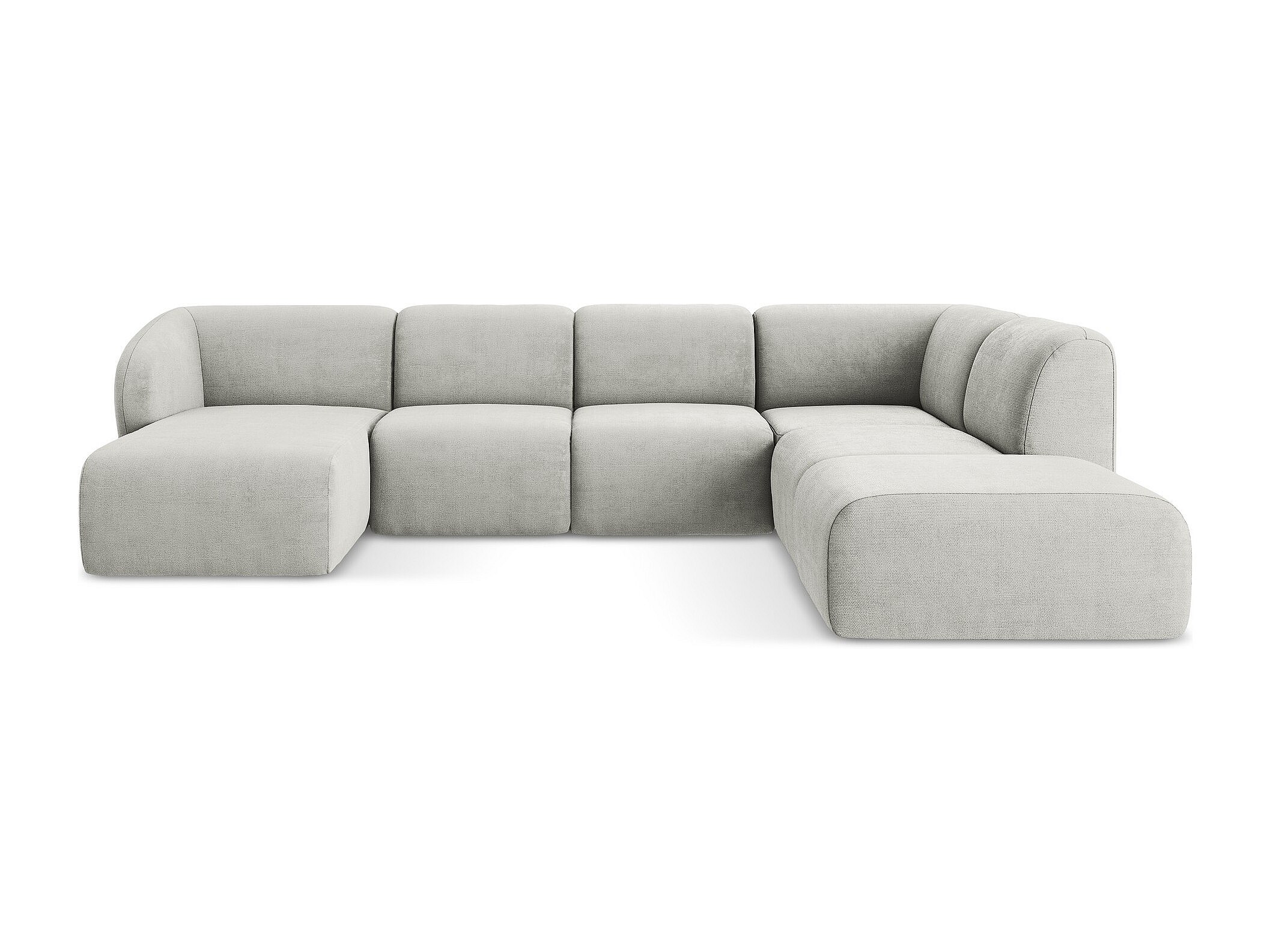 Canapé panoramique 5 places droit en tissu chenille - gris clair - LANI