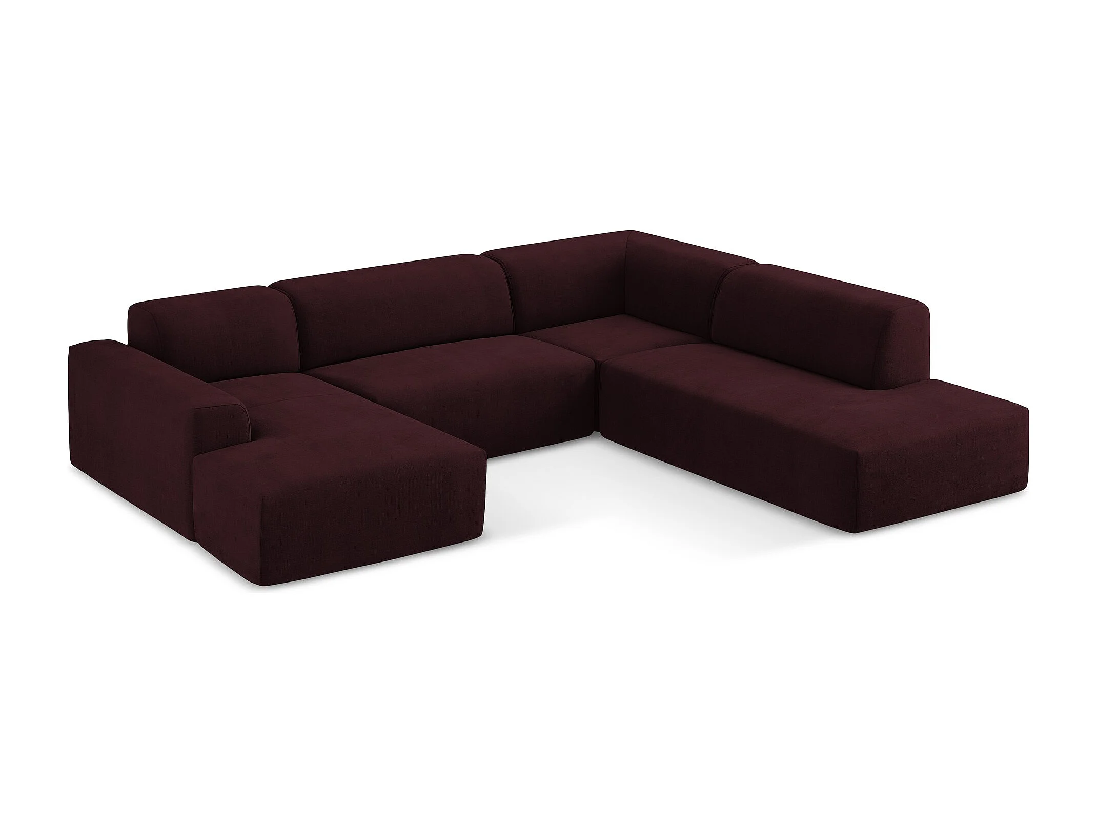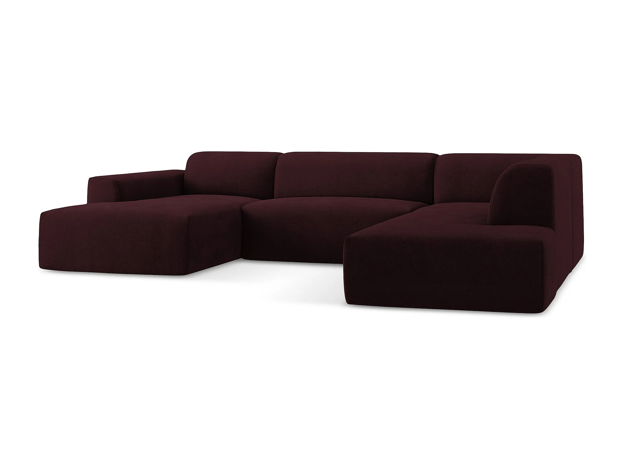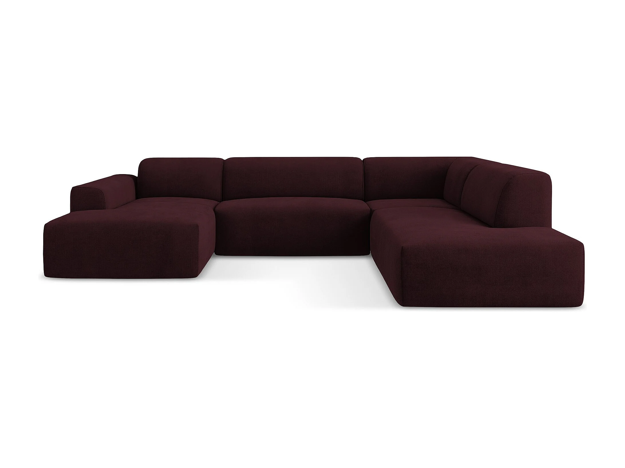 Canapé panoramique 5 places droit en tissu texturé - bordeaux - KELI