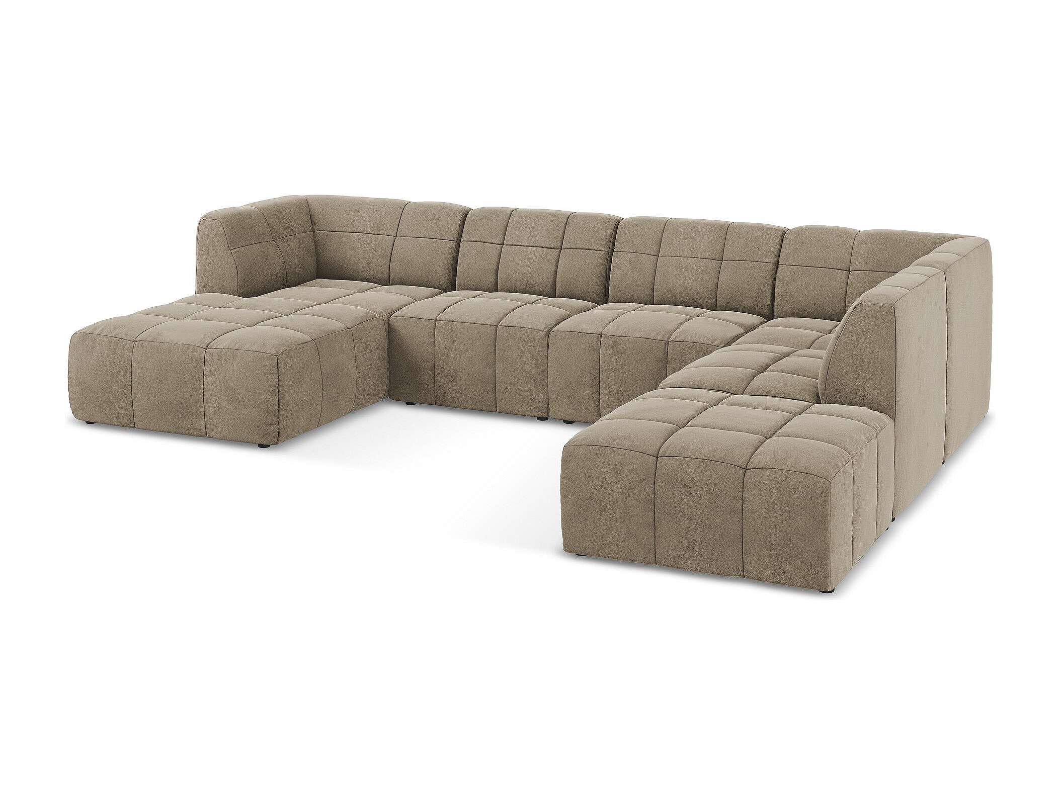 Canapé panoramique 5 places en tissu bouclette - sable - ALOHA