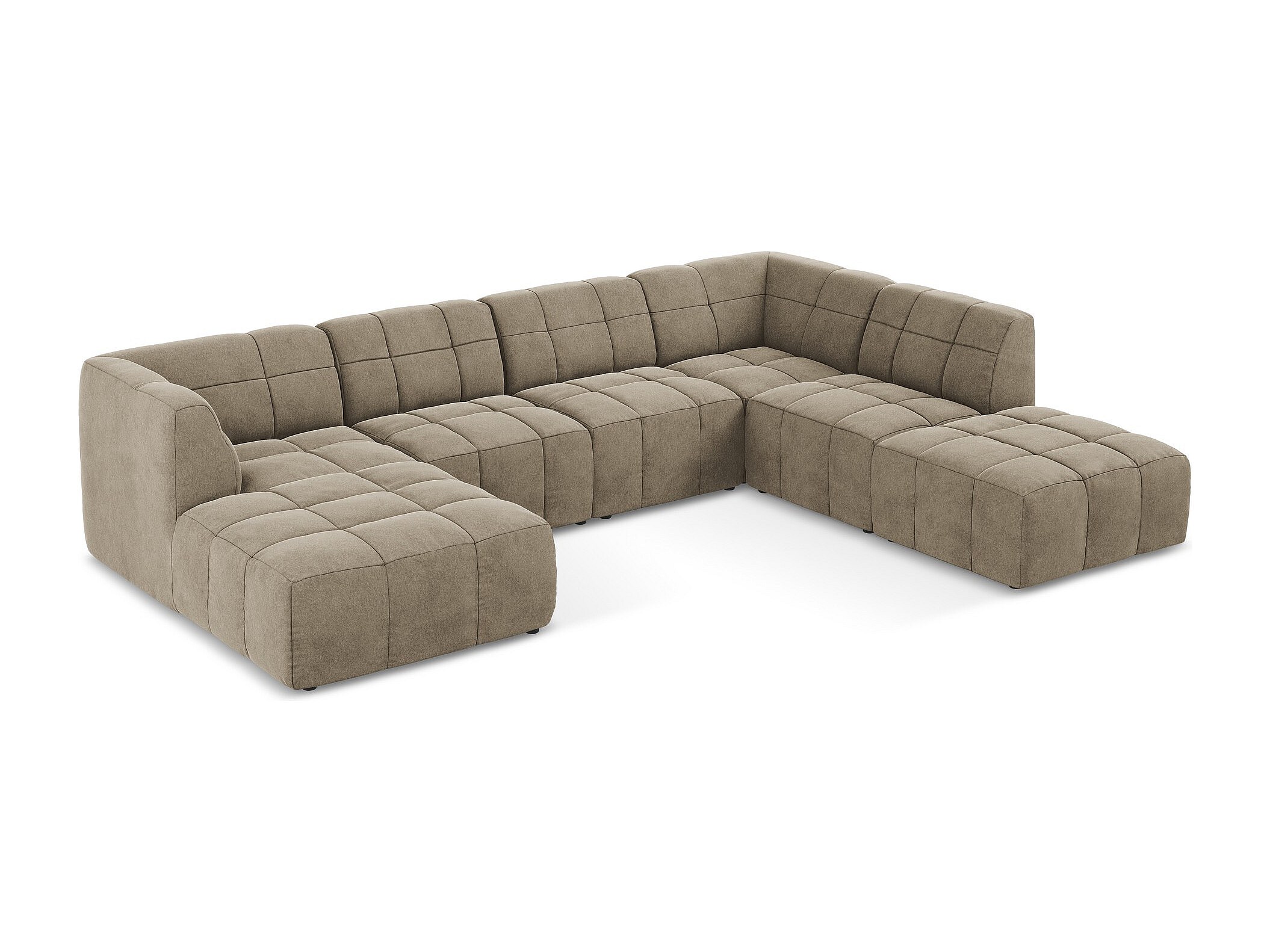 Canapé panoramique 5 places modulaire gauche en tissu chenille - beige - OMAO