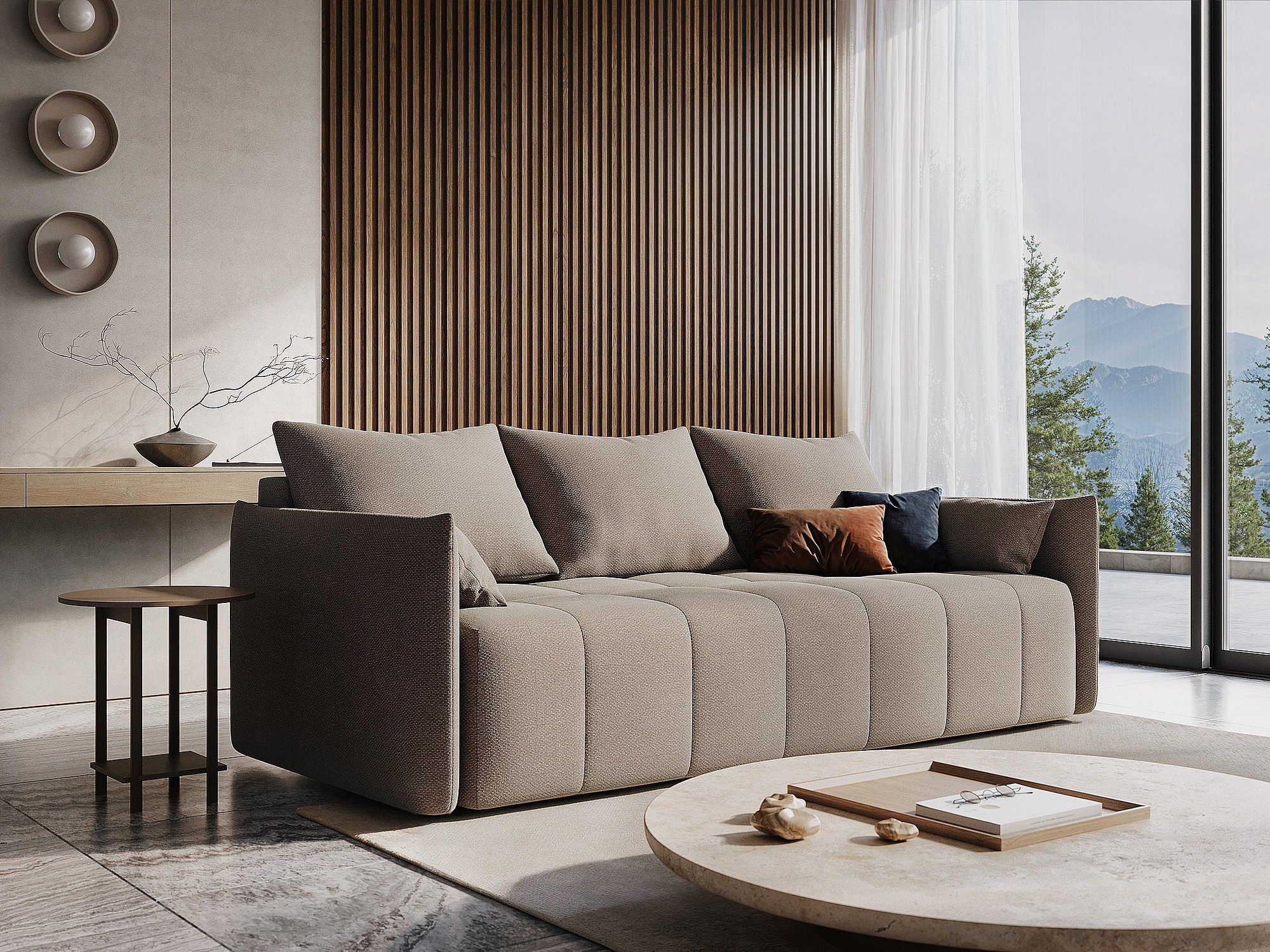 Canapé panoramique 5 places droit en tissu chenille - beige foncé - LANI