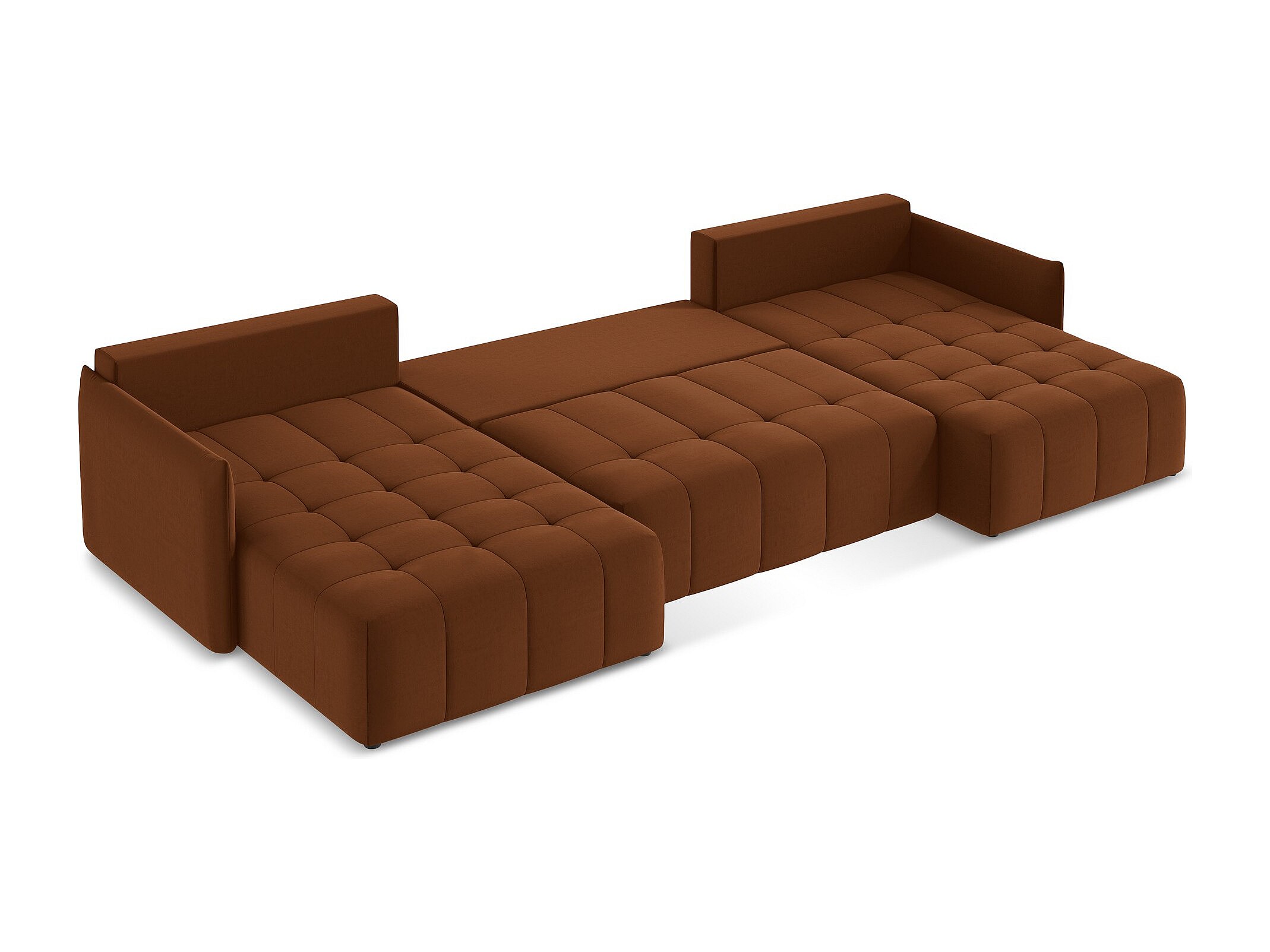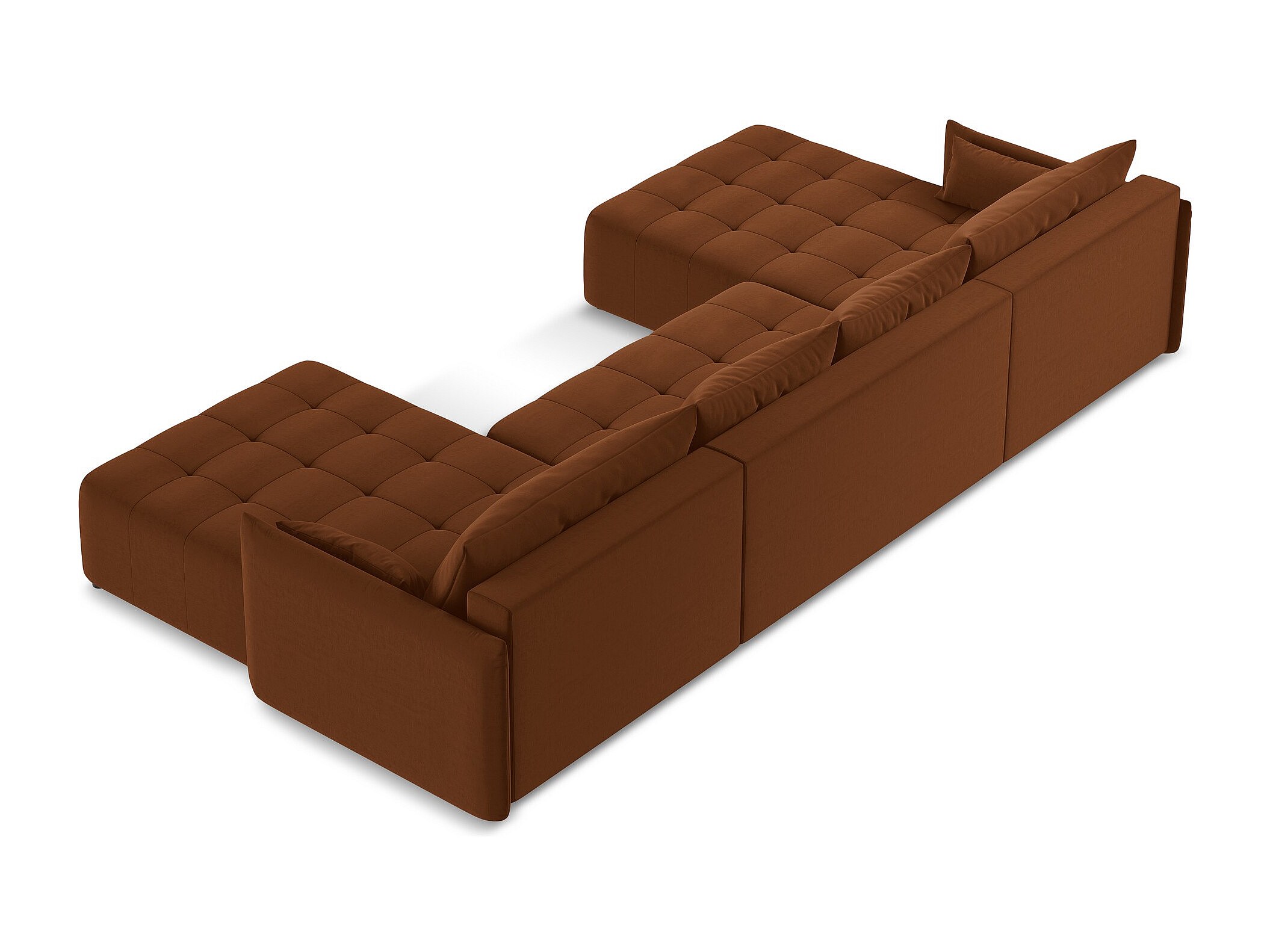 Canapé panoramique 5 places droit en velours - terre cuite - LANI