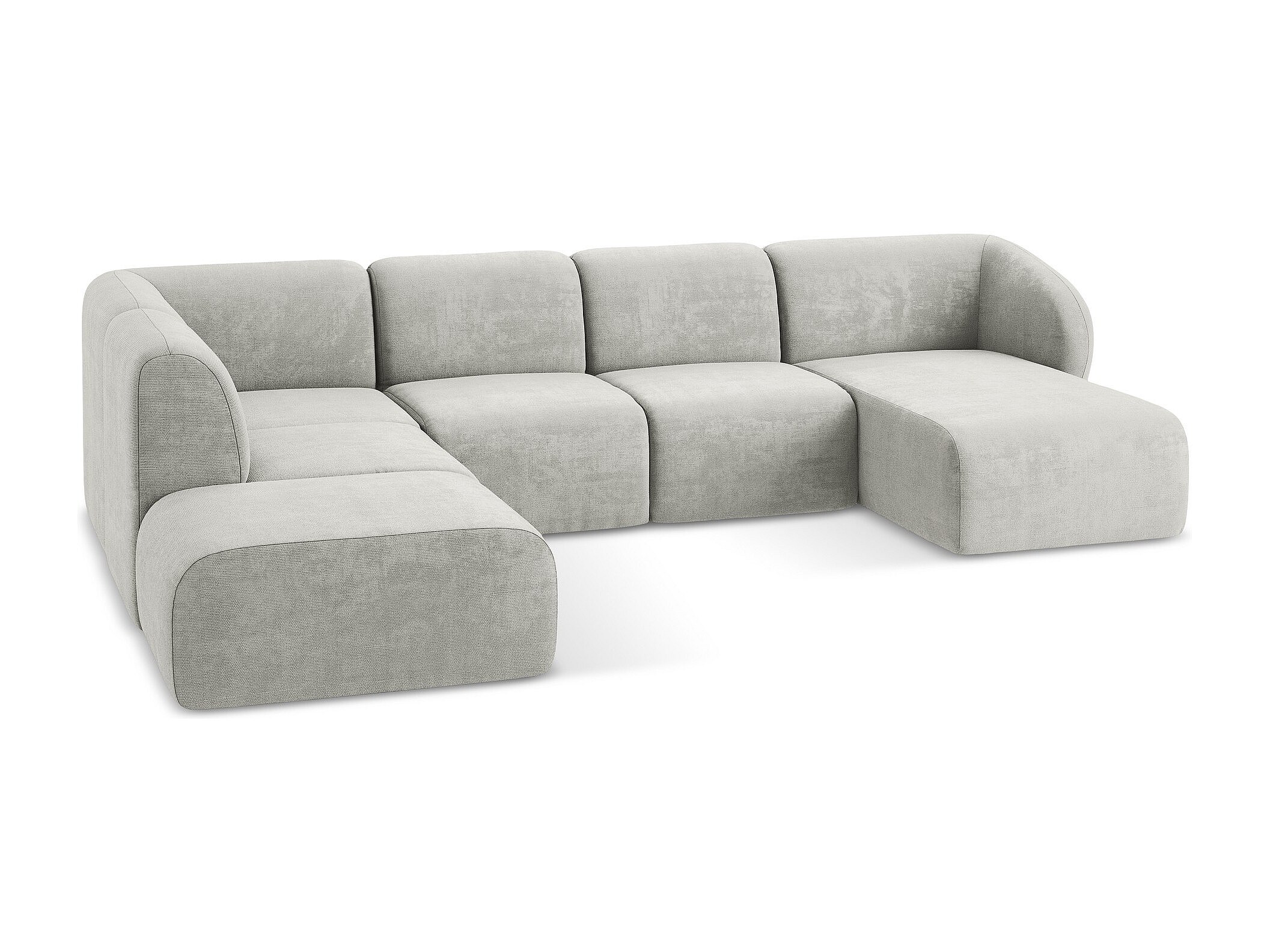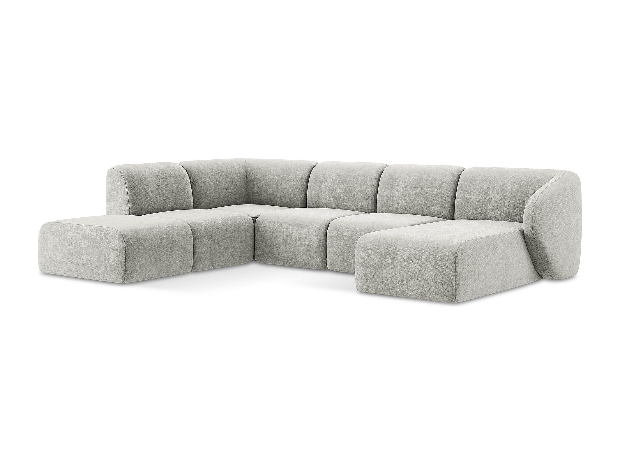 Canapé panoramique 5 places gauche en tissu chenille - gris clair - LANI