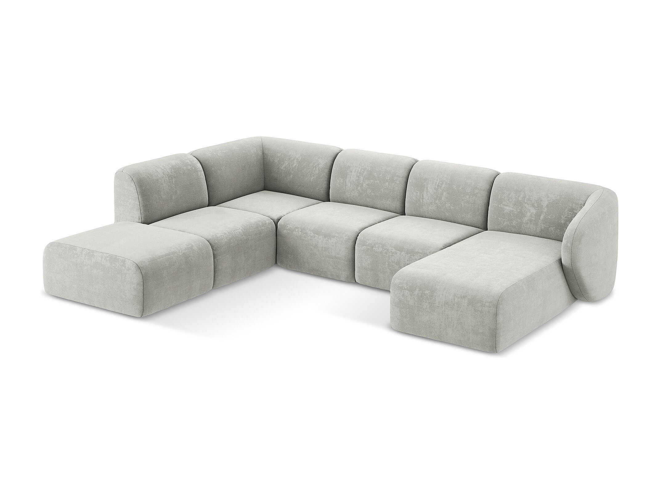 Canapé panoramique 5 places en velours - gris clair - ALOHA