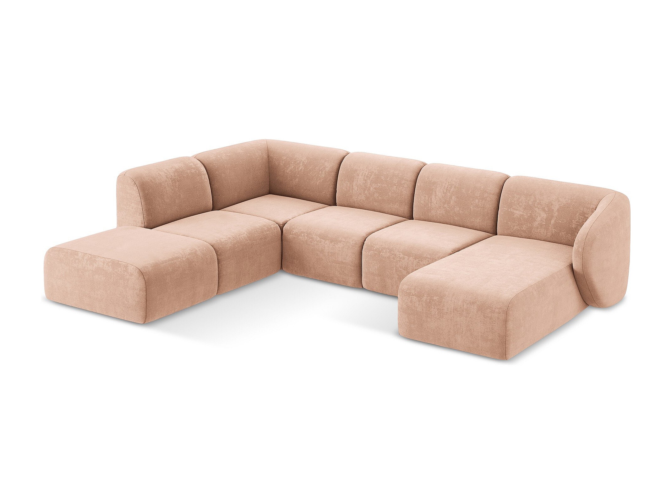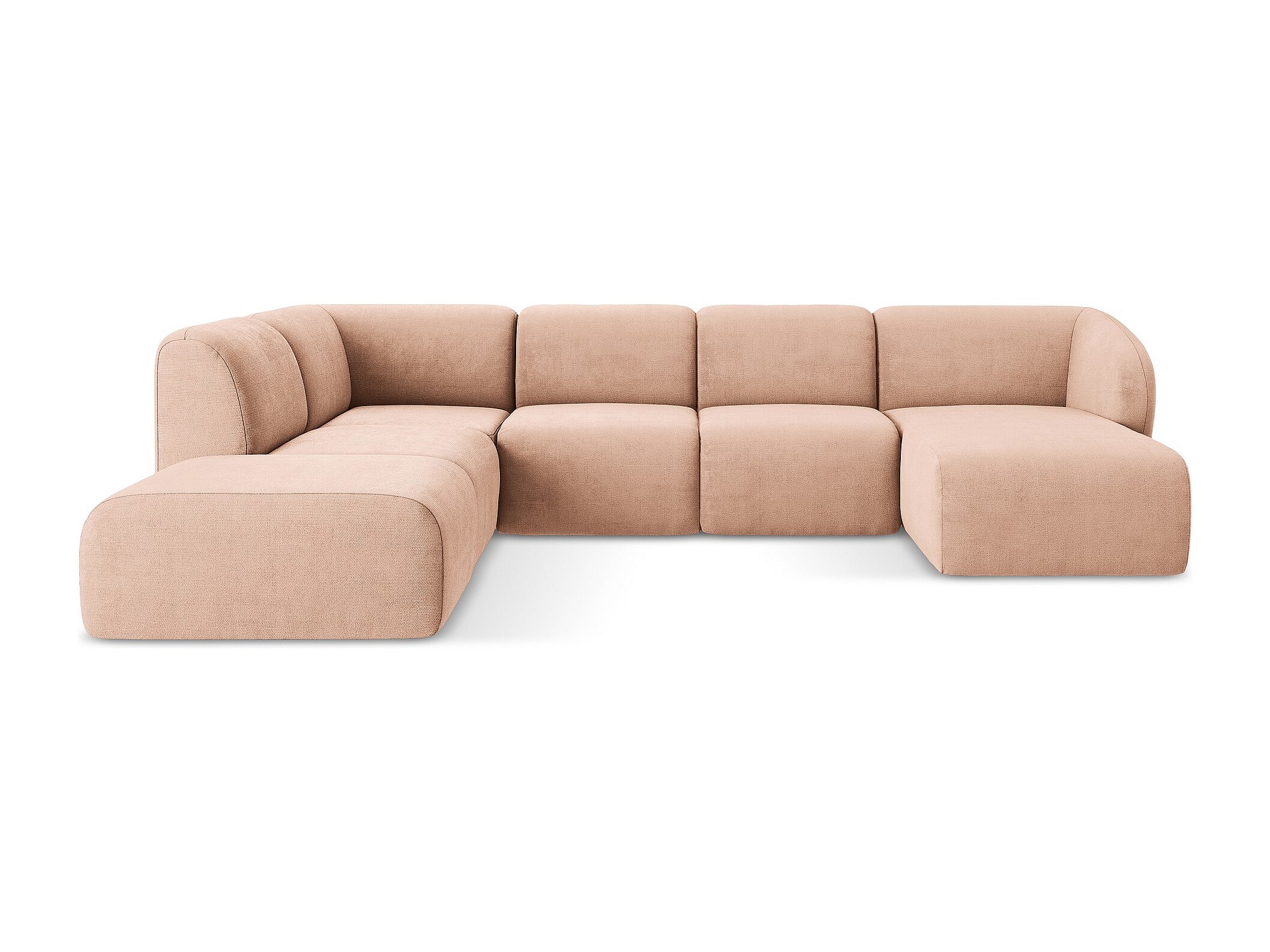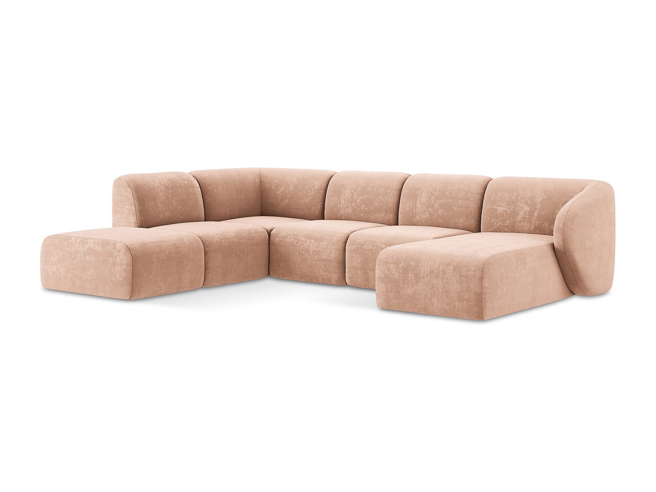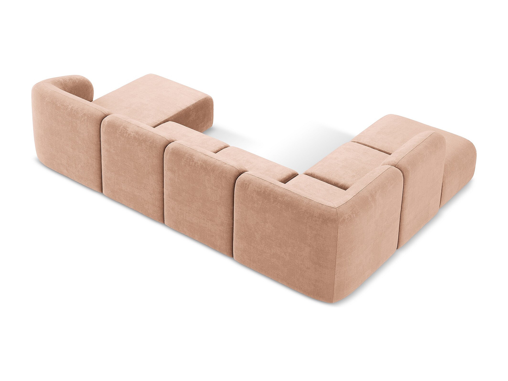 Canapé panoramique 5 places gauche en tissu chenille - pêche - LANI