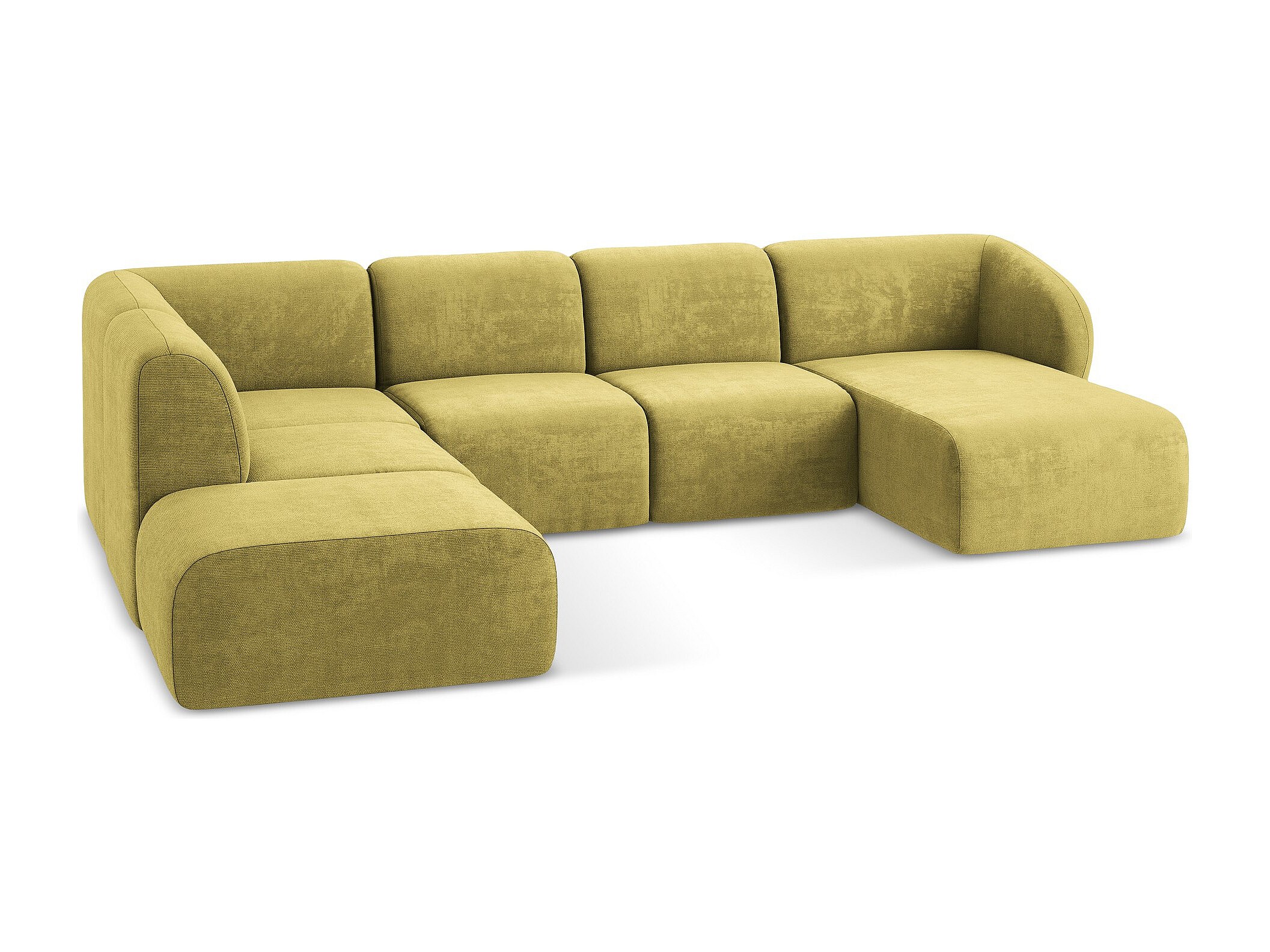 Canapé panoramique 5 places gauche en tissu chenille - vert citron - LANI