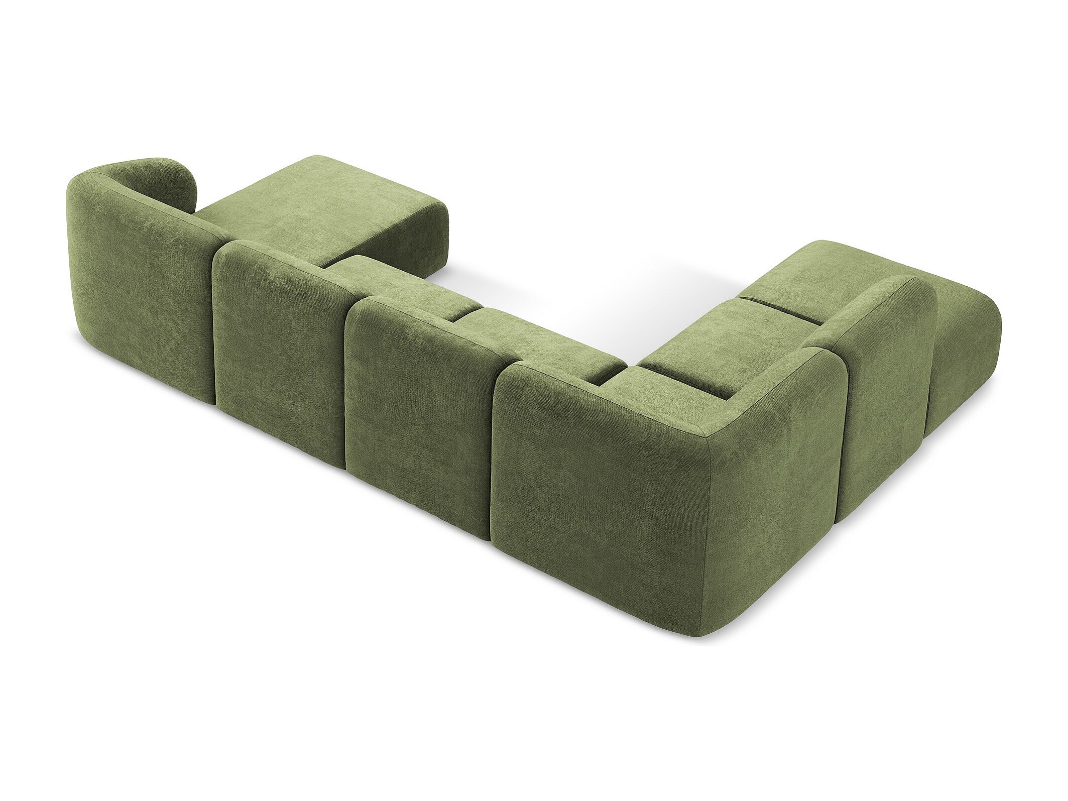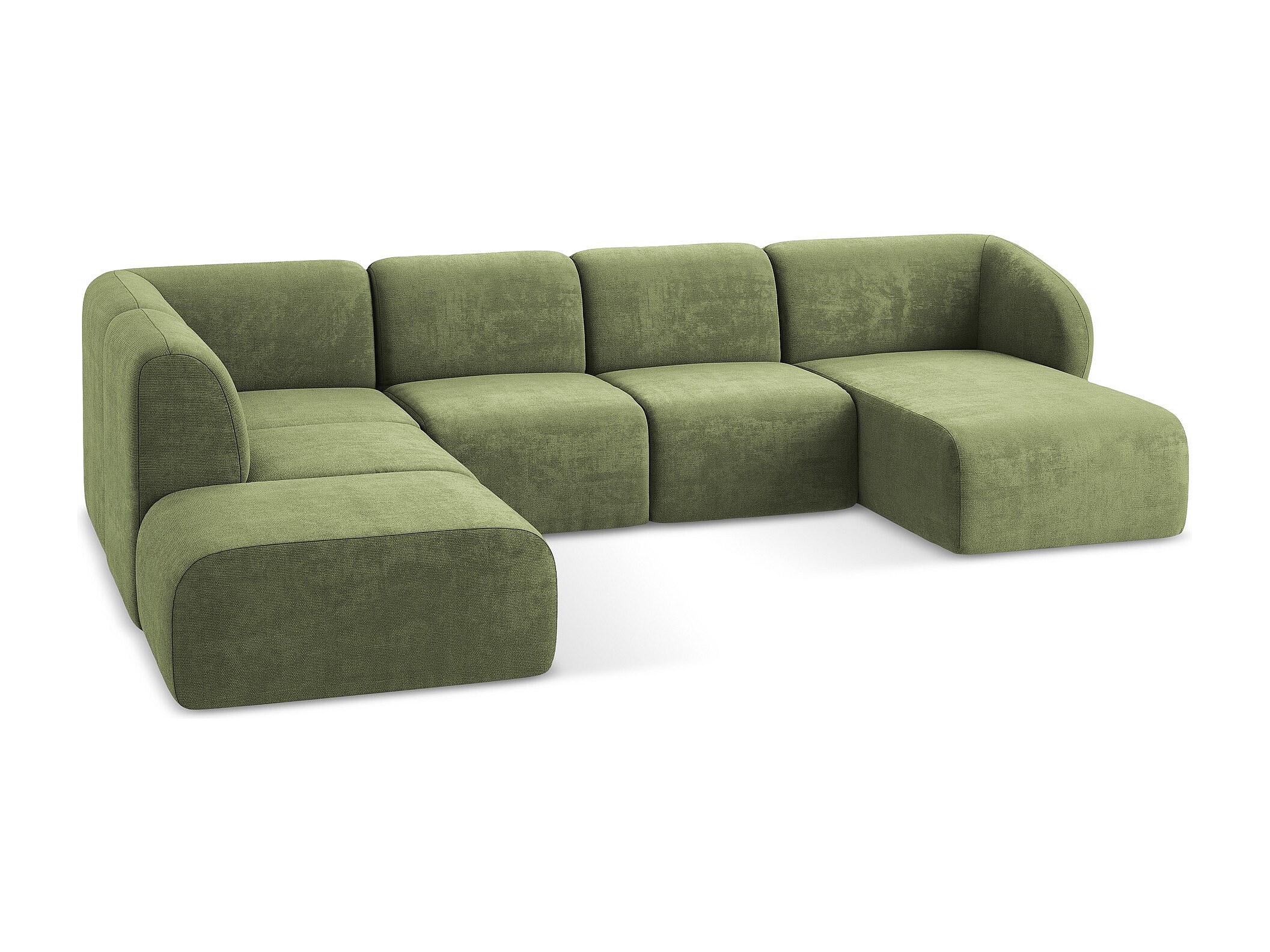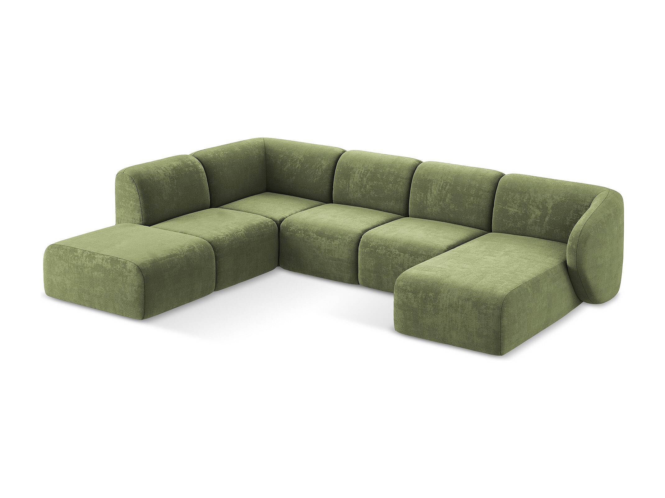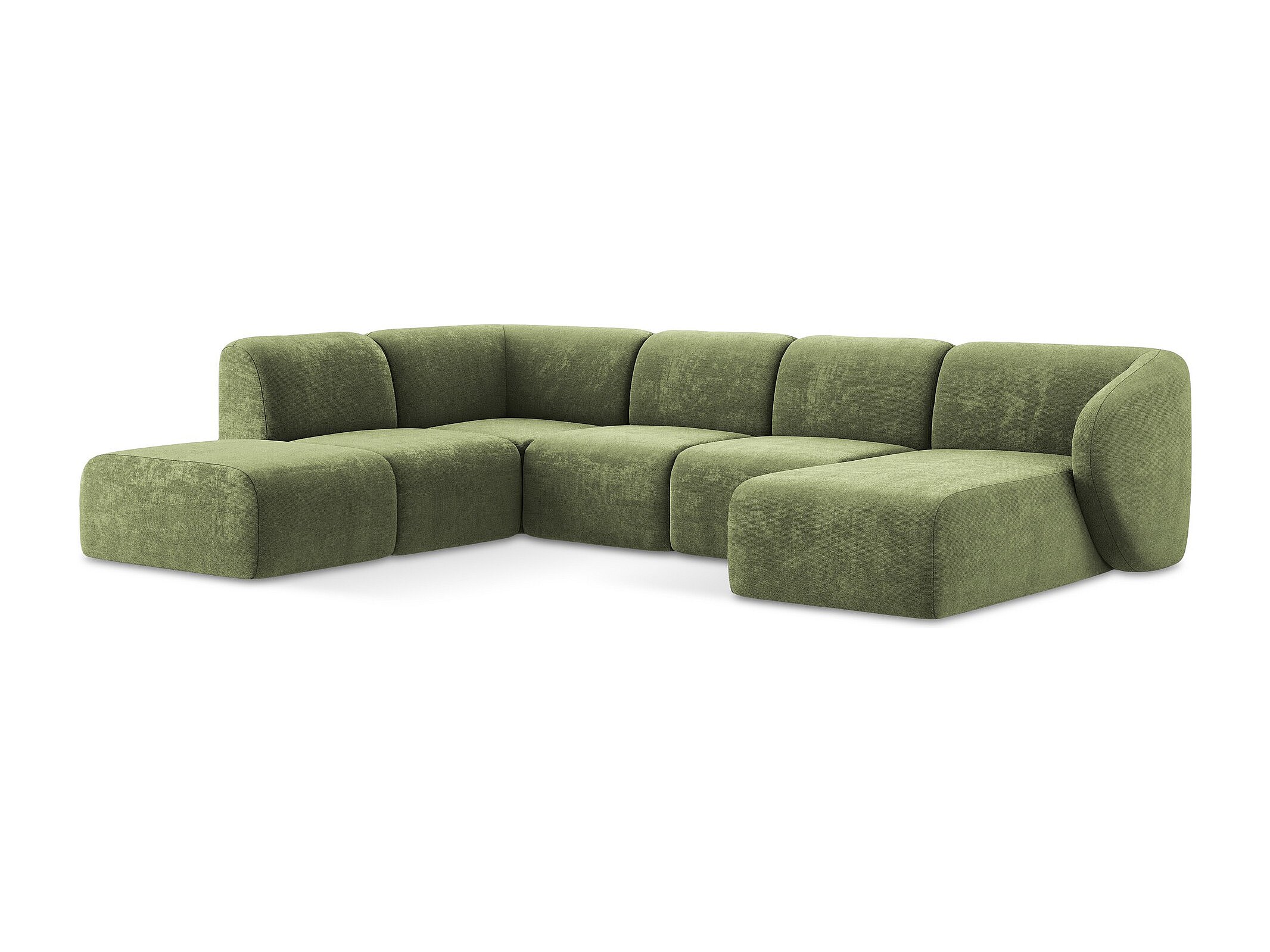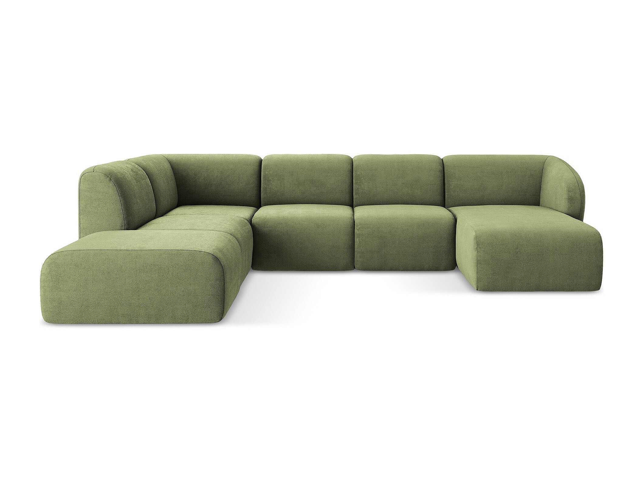 Canapé panoramique 5 places modulaire gauche en tissu chenille - olive - OMAO