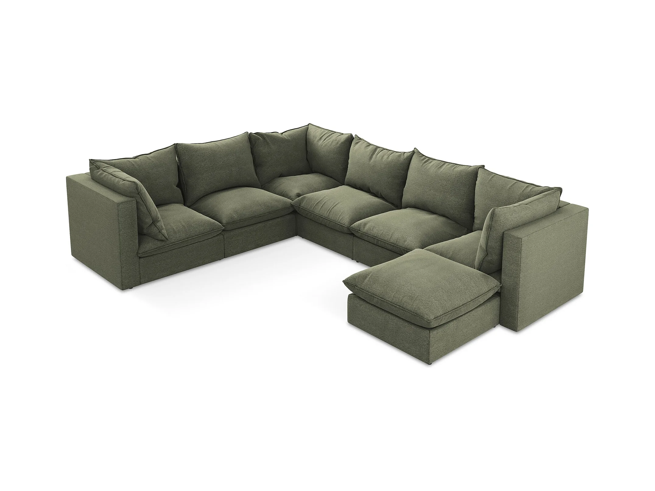 Canapé panoramique 5 places modulaire en tissu texturé - olive - OMAO
