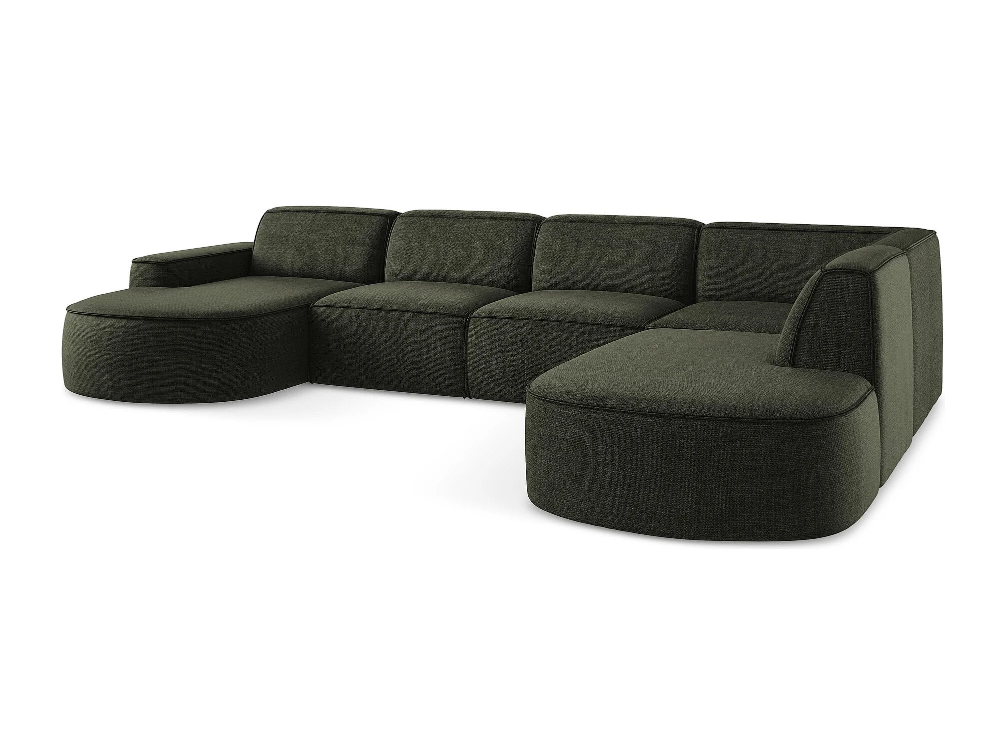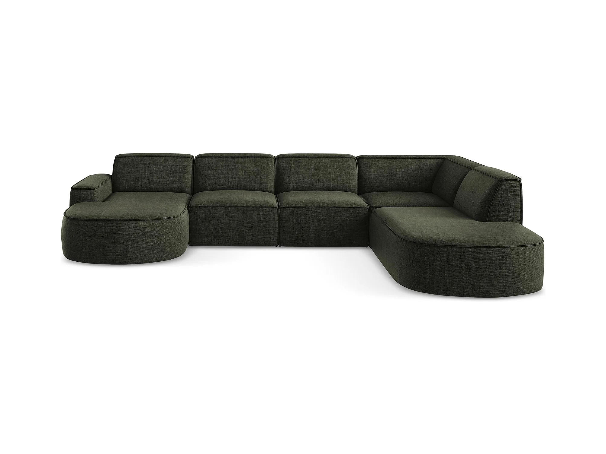 Canapé panoramique 5 places modulaire gauche en tissu chenille - olive - OMAO