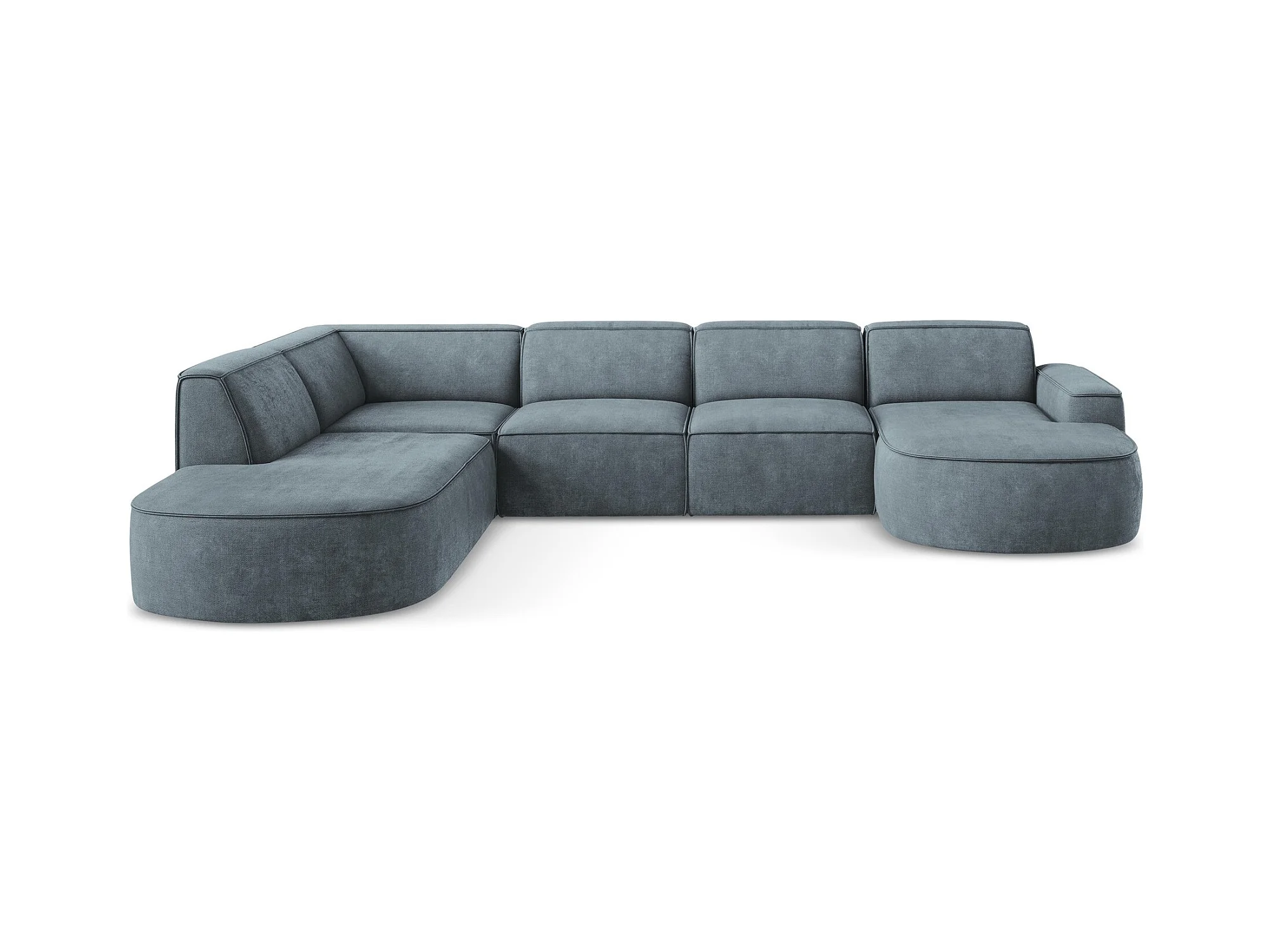 Canapé panoramique 5 places gauche en velours - bleu clair - LANI