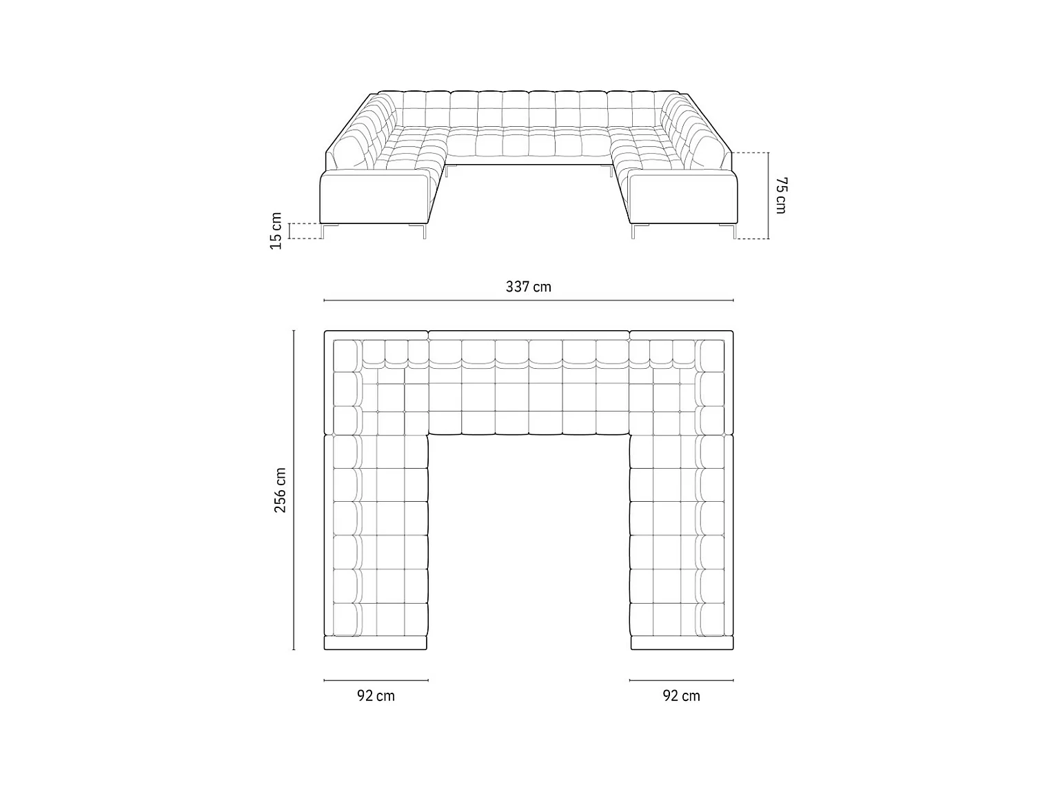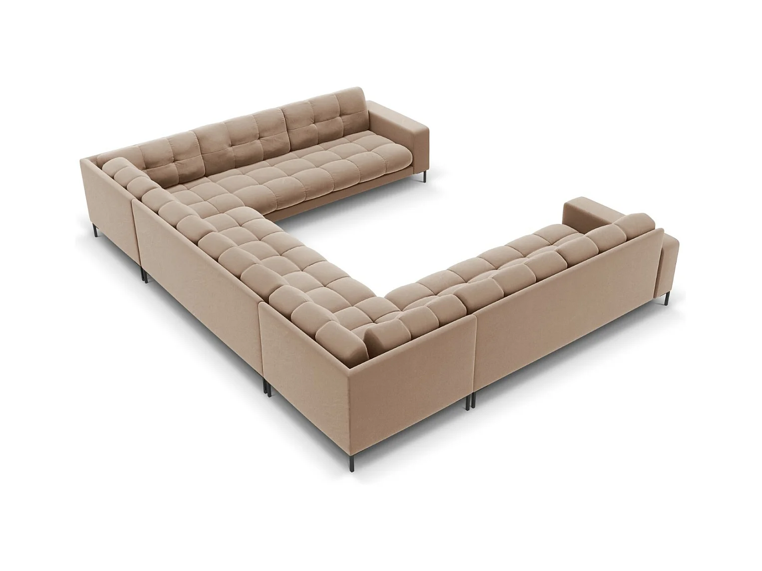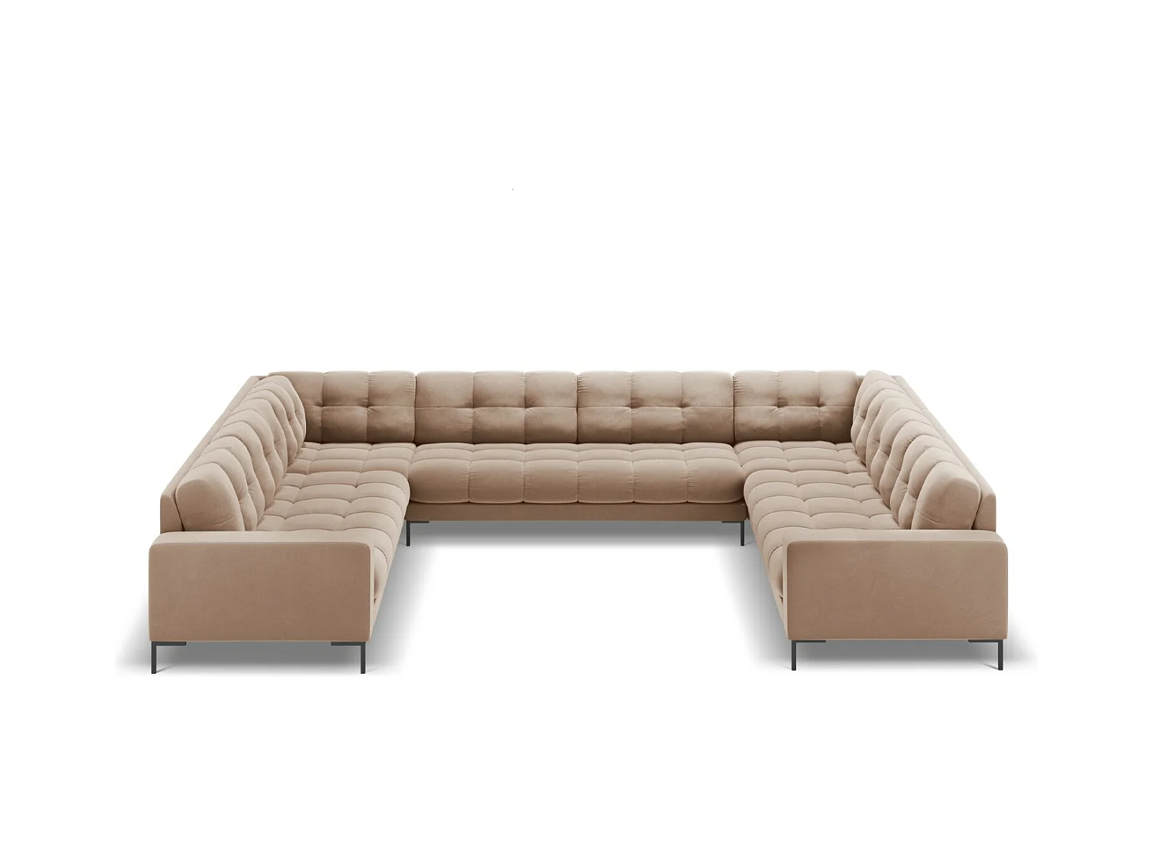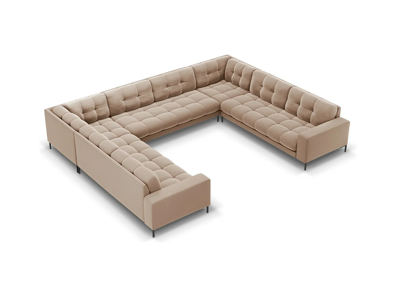 Cosmopolitan Design - Canapé panoramique "Bali" 9 places en velours beige - 327x256x75cm