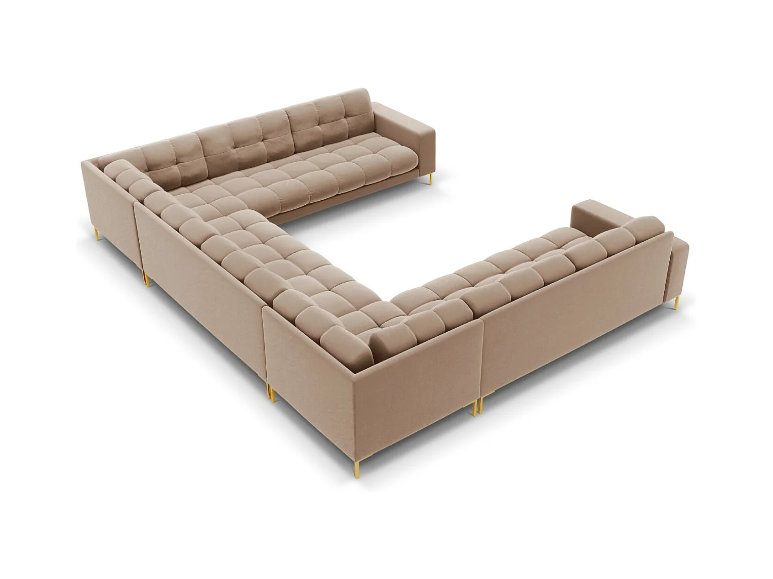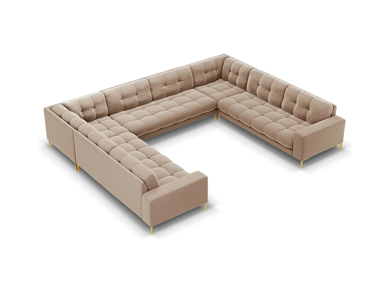 Cosmopolitan Design - Canapé panoramique "Bali" 9 places en velours beige - 327x256x75cm