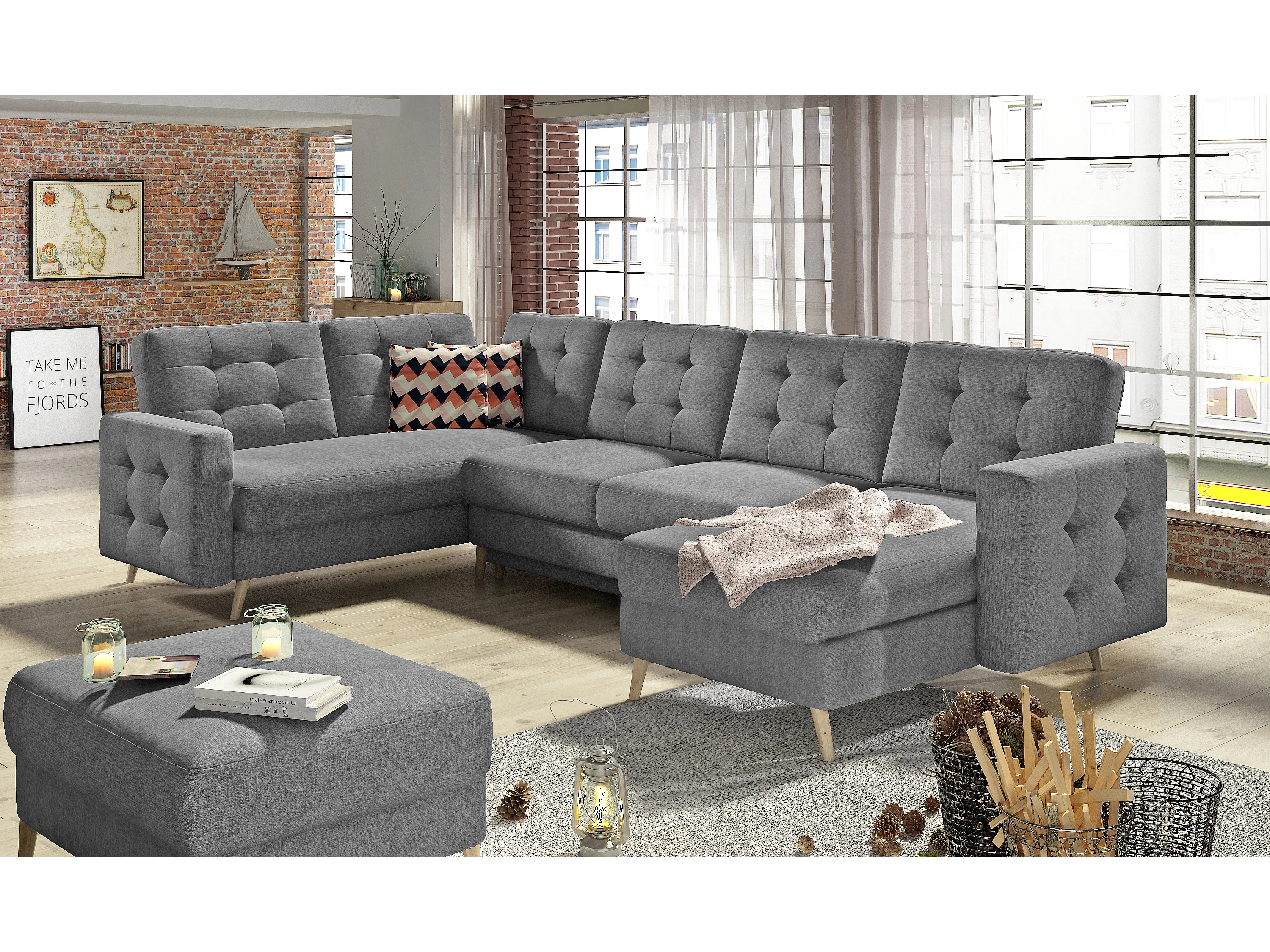 Canapé panoramique convertible ANSKA en tissu - Pieds bois naturel-Gris
