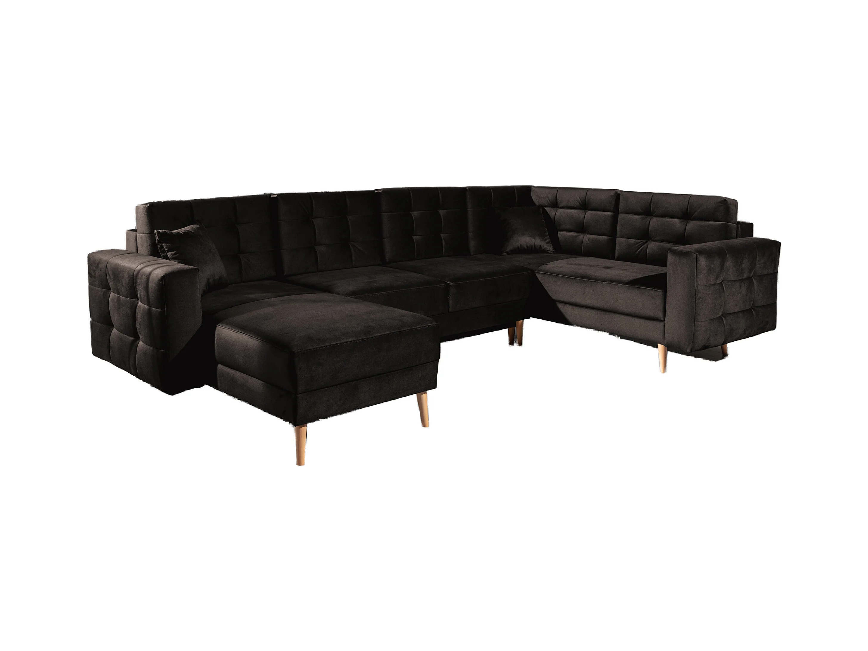 Canapé panoramique convertible ANSKA en velours - Pieds bois naturel-Marron foncé