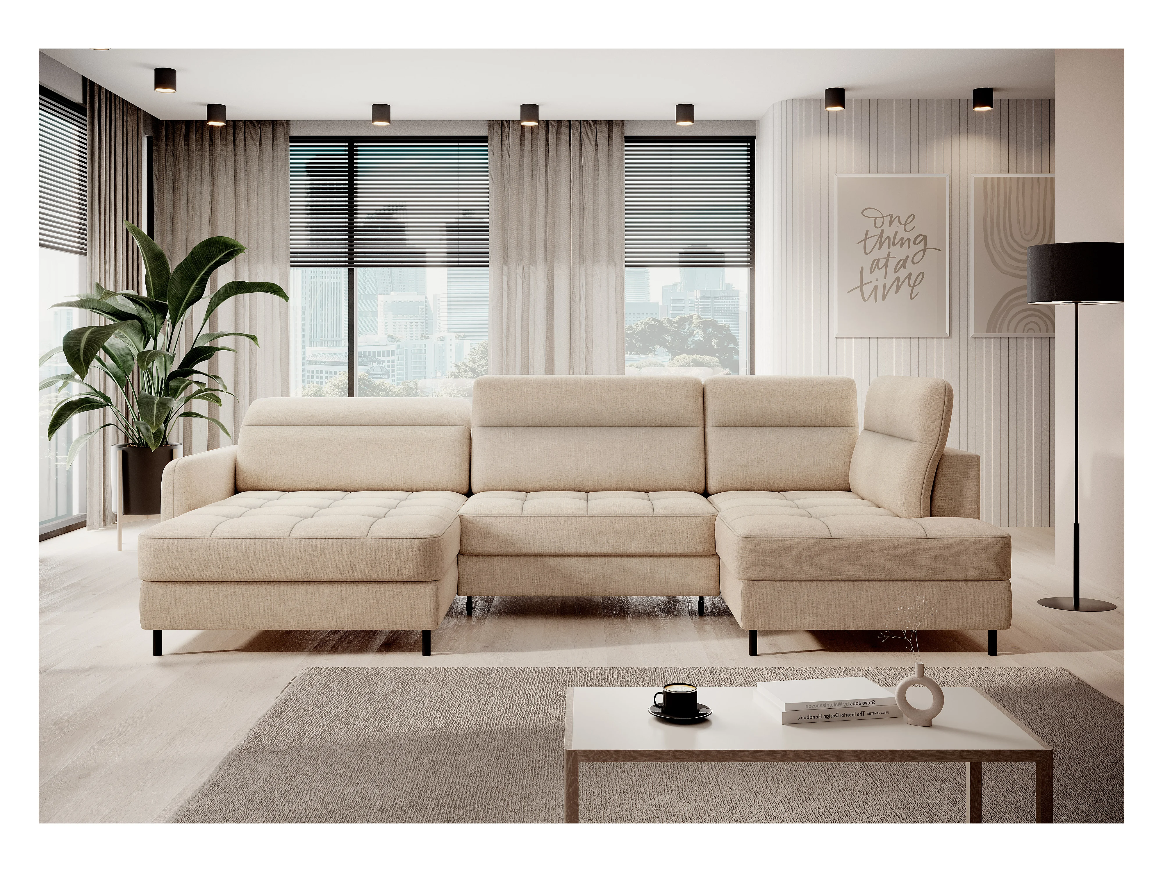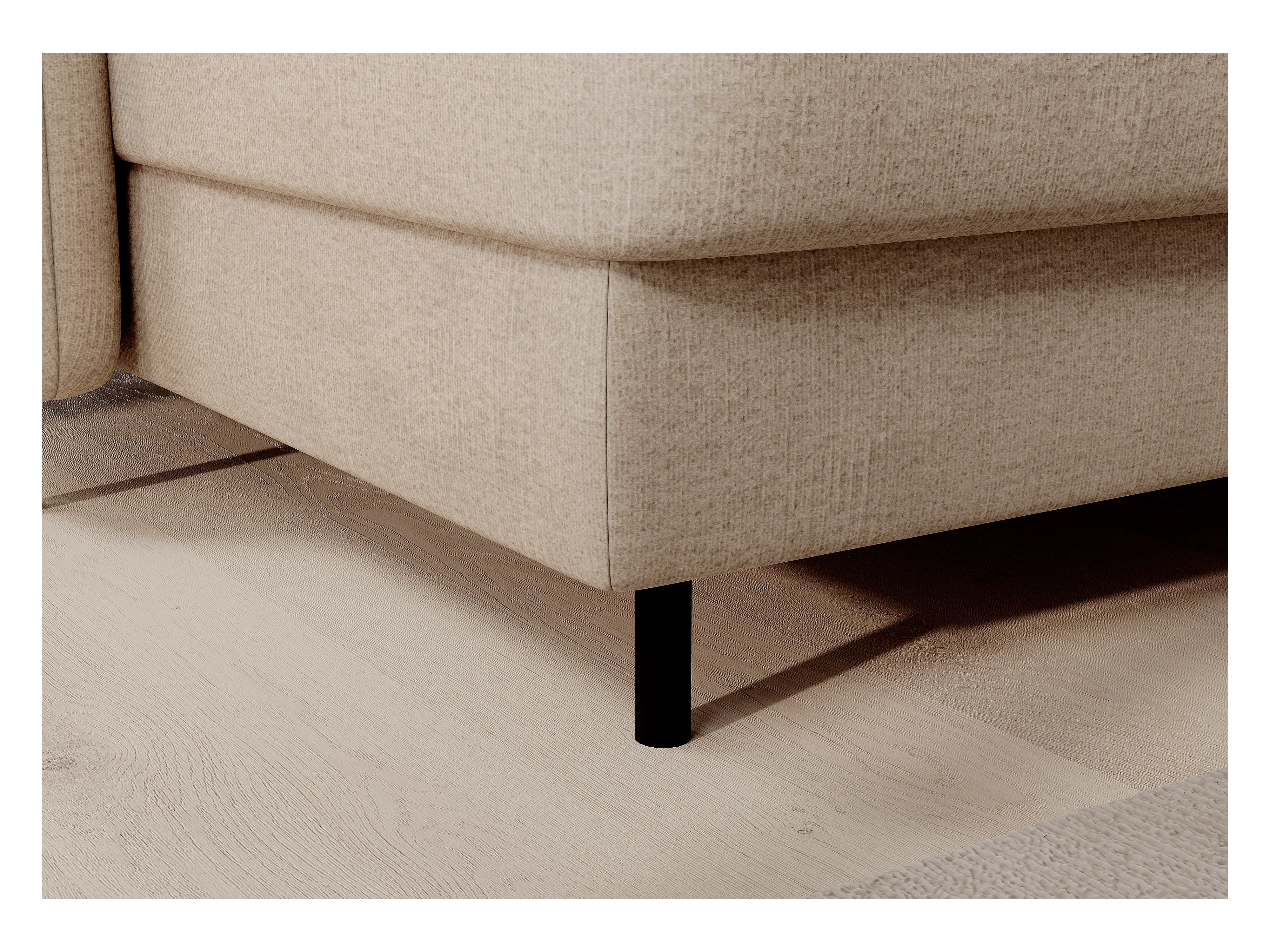 Canapé d’angle convertible tissu appuis-tête réglables KATE – Coffre et pieds métal noir-Beige-angle droit