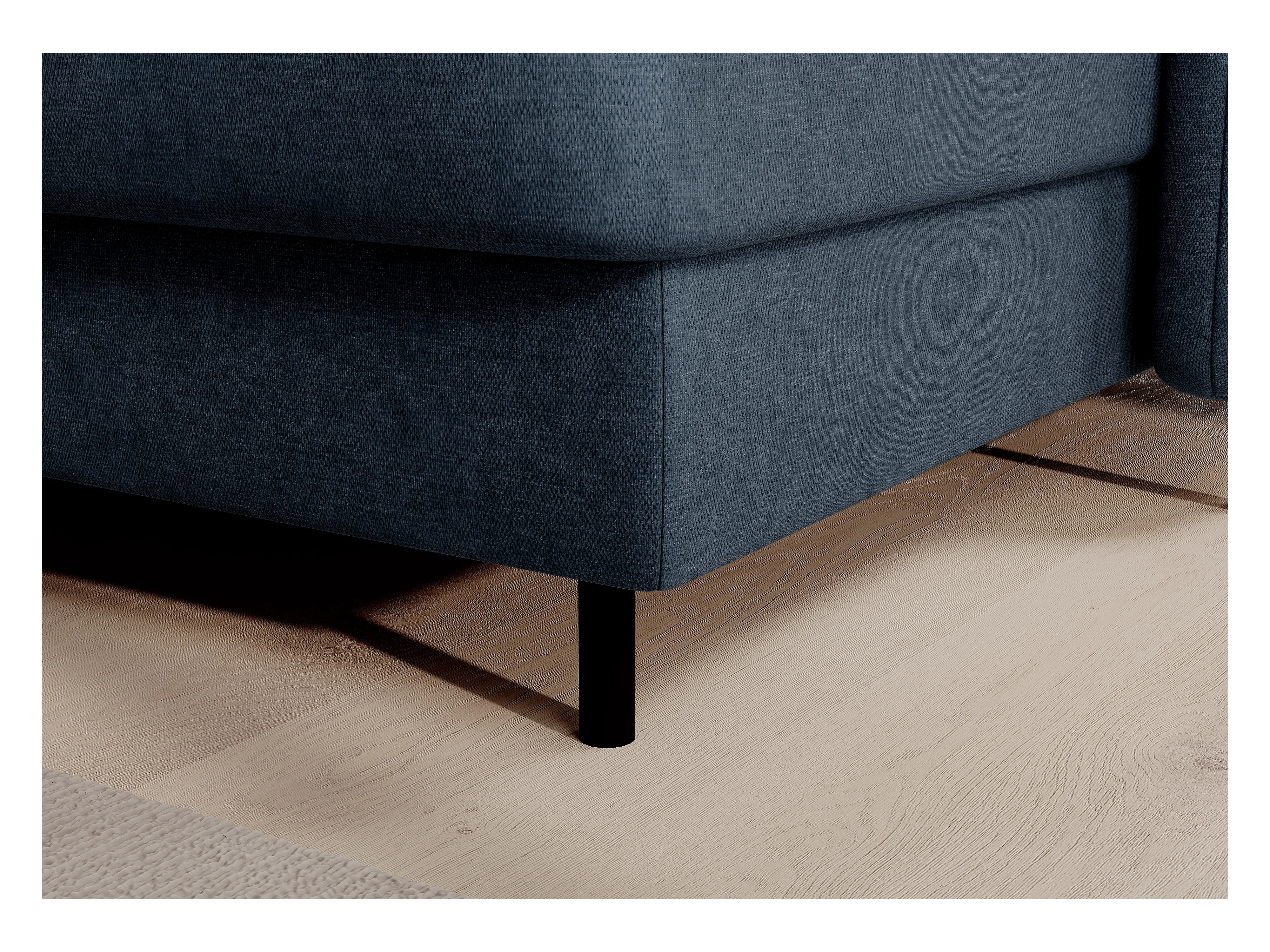 Petit canapé d'angle en tissu convertible avec coffre BOREA 208cm-Bleu foncé-angle gauche