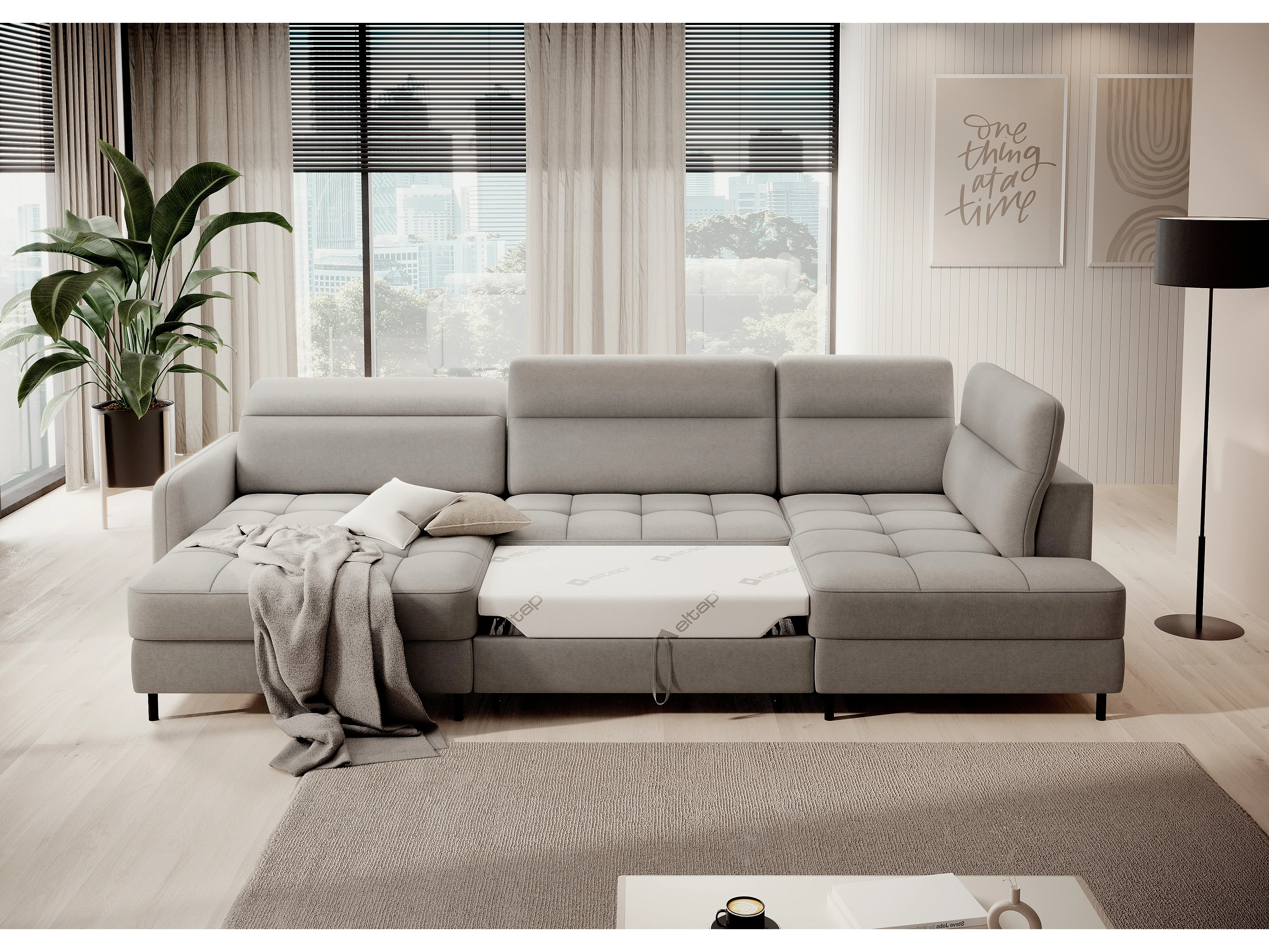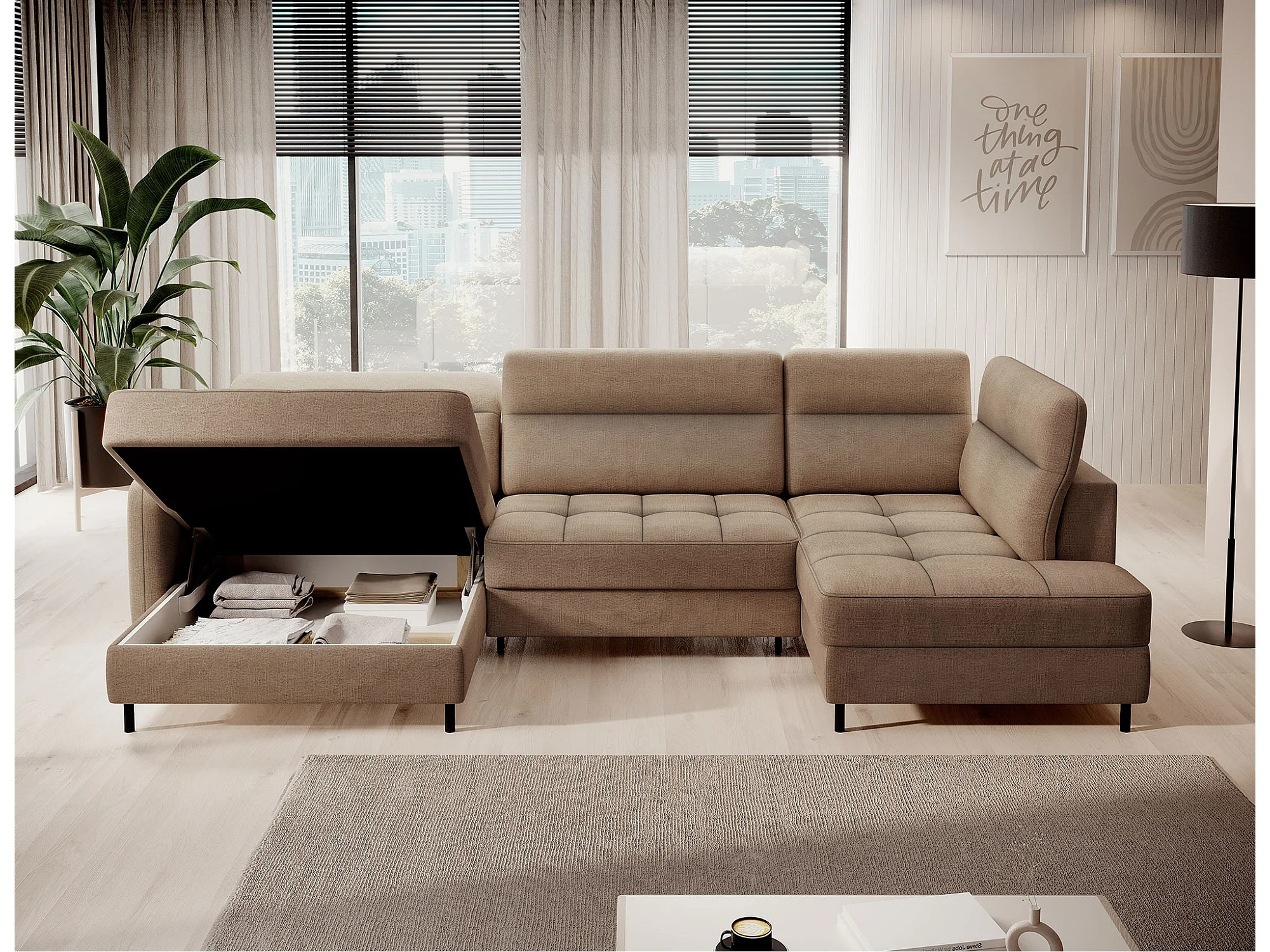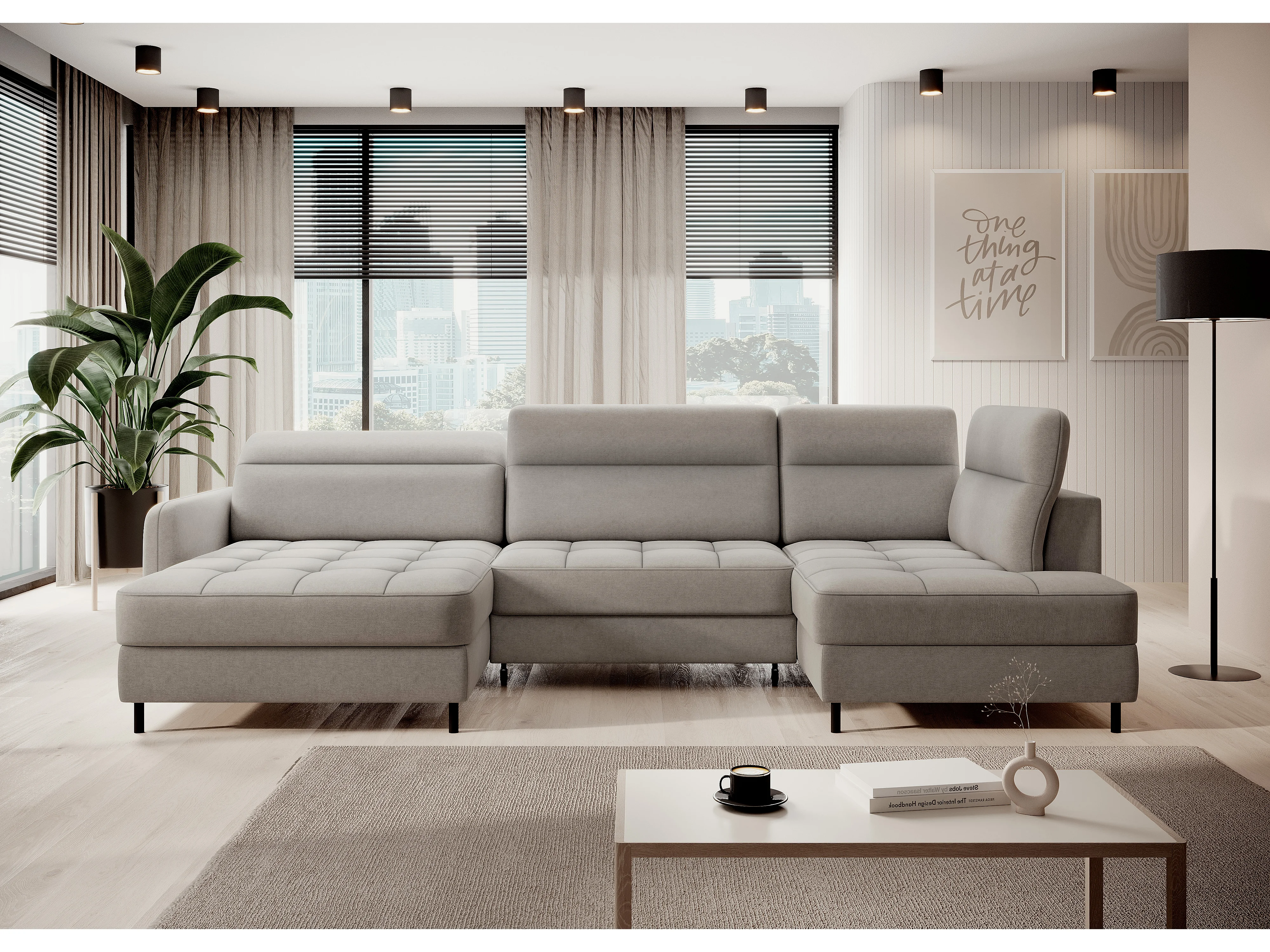 Canapé panoramique convertible BENTO en tissu avec coffre de rangement-Gris taupe-angle gauche
