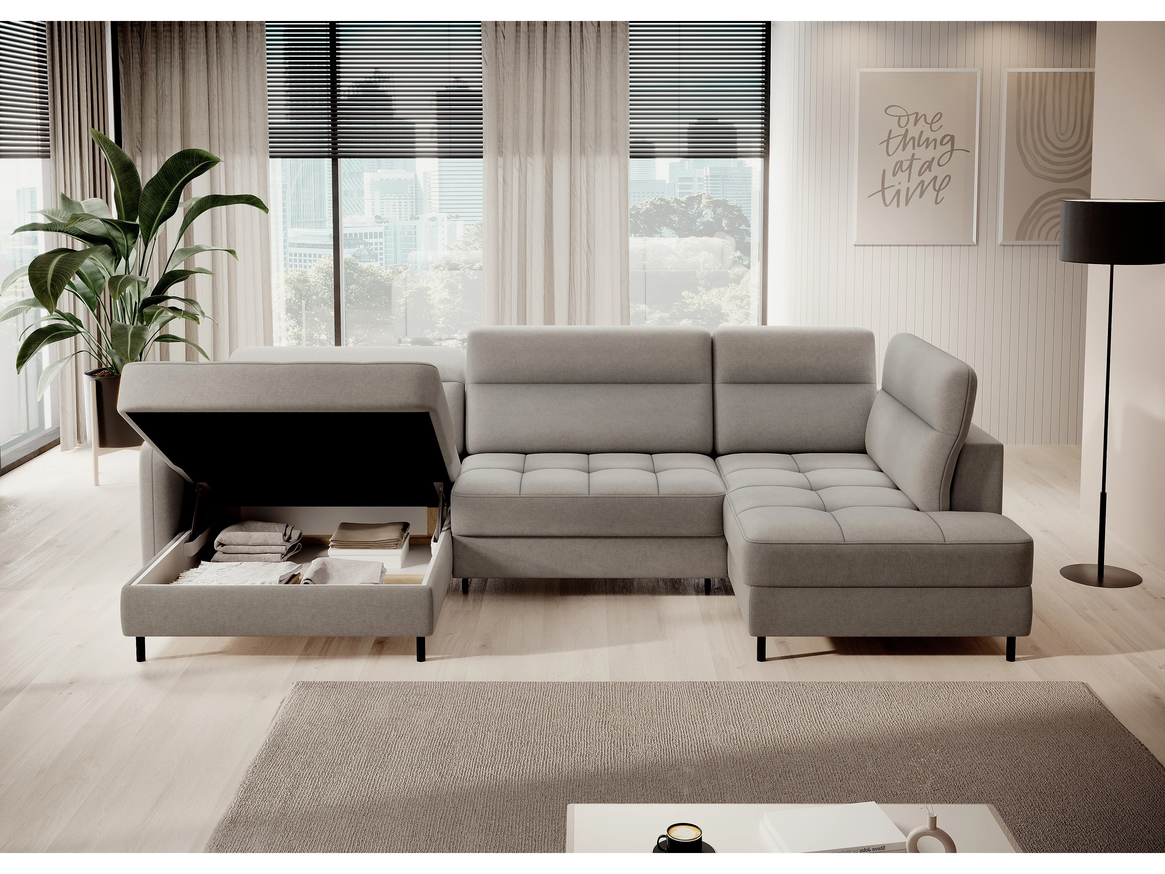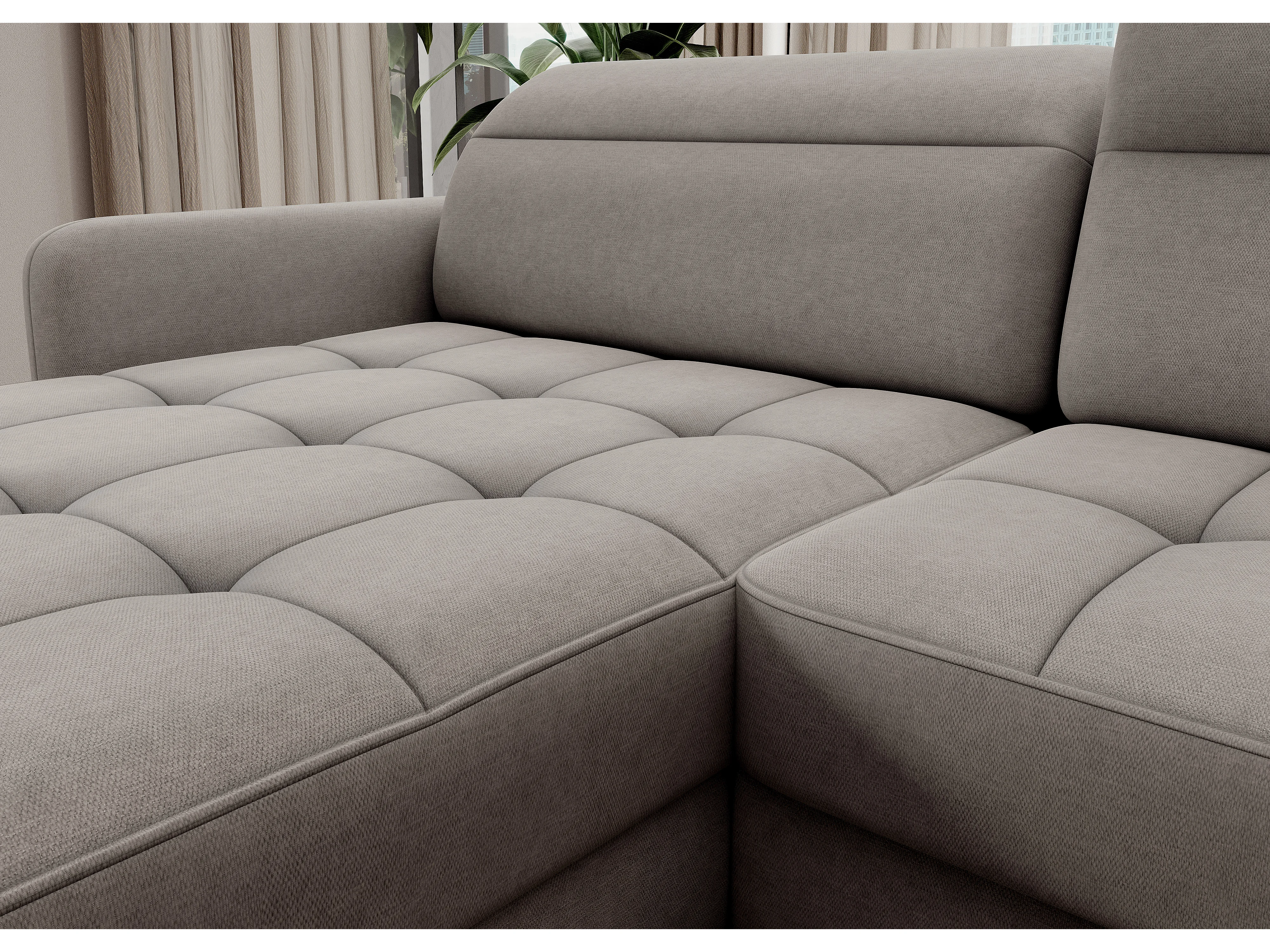 Canapé panoramique convertible BENTO en tissu avec coffre de rangement-Gris taupe-angle droit