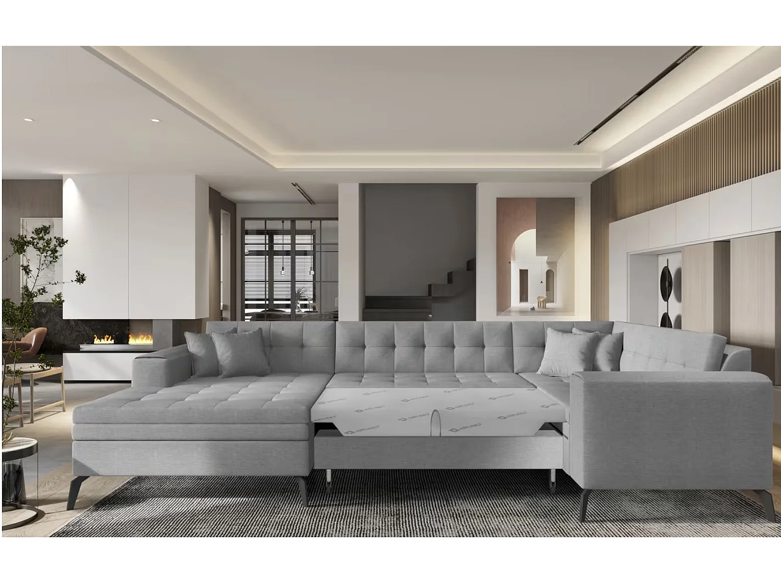 Canapé panoramique convertible BONTY tissu matelassé-Gris clair-Méridienne A gauche