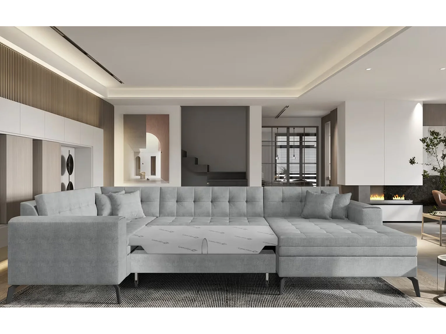 Canapé panoramique convertible BONTY tissu matelassé-Gris clair-Méridienne A gauche