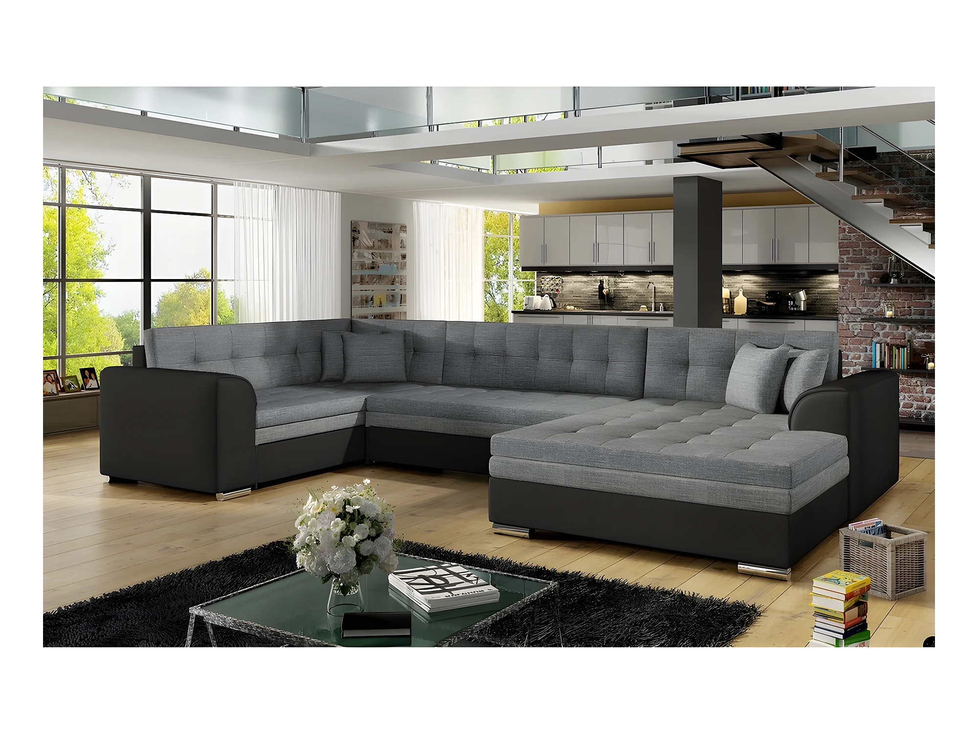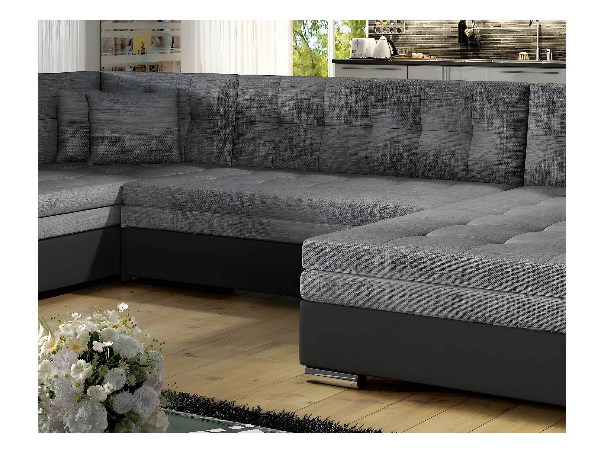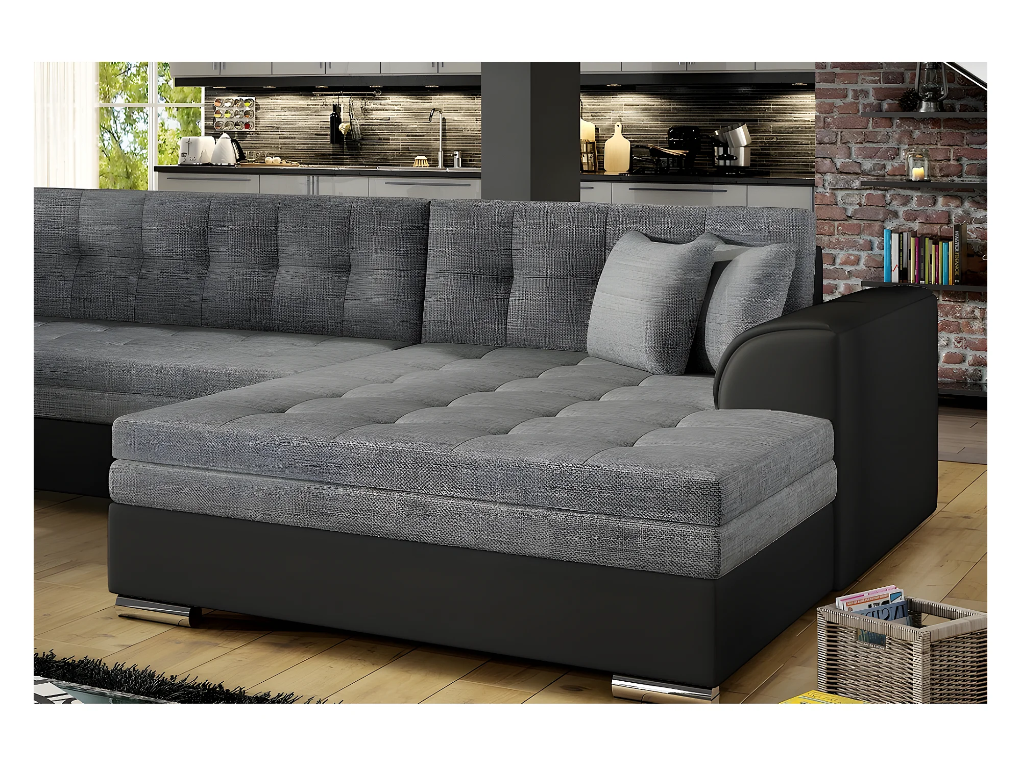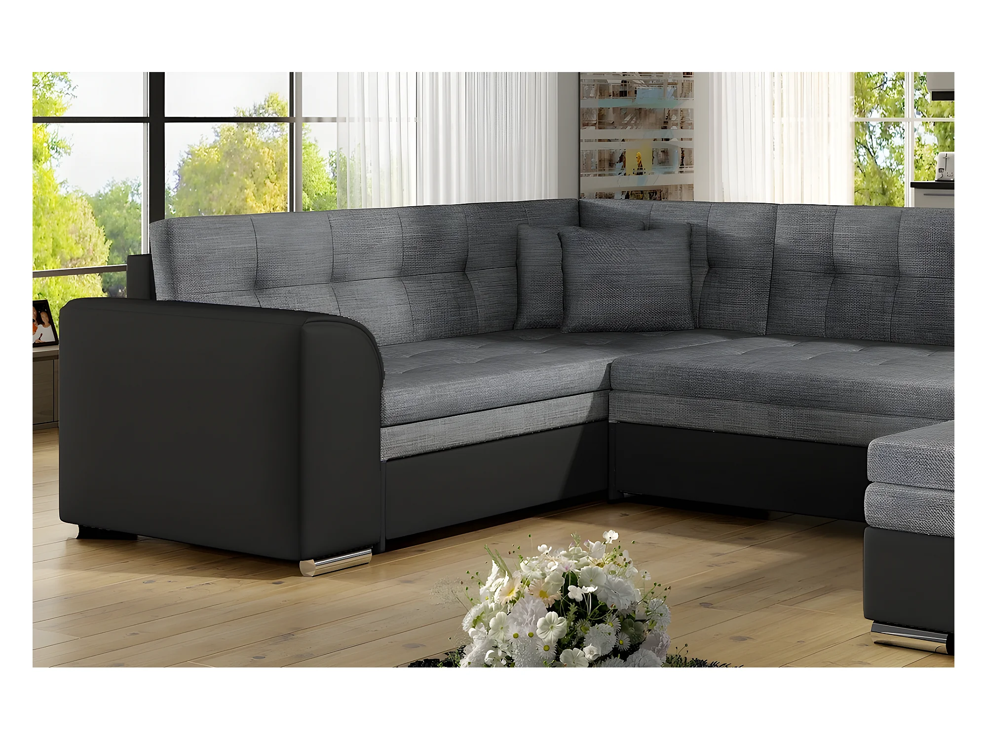 Canapé d'angle convertible en tissu gris foncé et simili noir de qualité, 5 places, angle gauche (vu de face) - SOHO