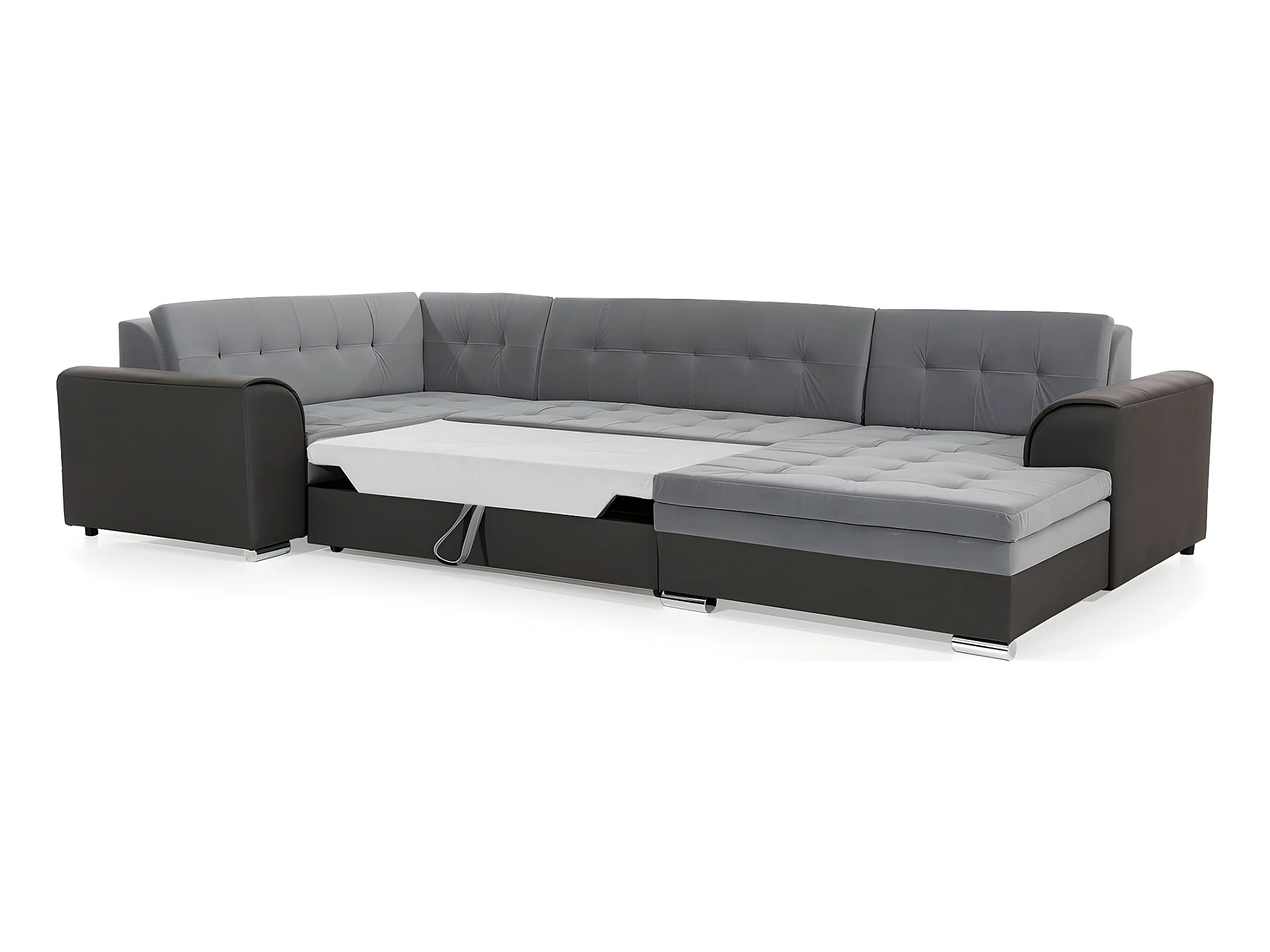 Canapé panoramique convertible - ESTEBAN - en tissu prestige luxe gris - 7 places, partie sans accoudoir à gauche (vu de face)