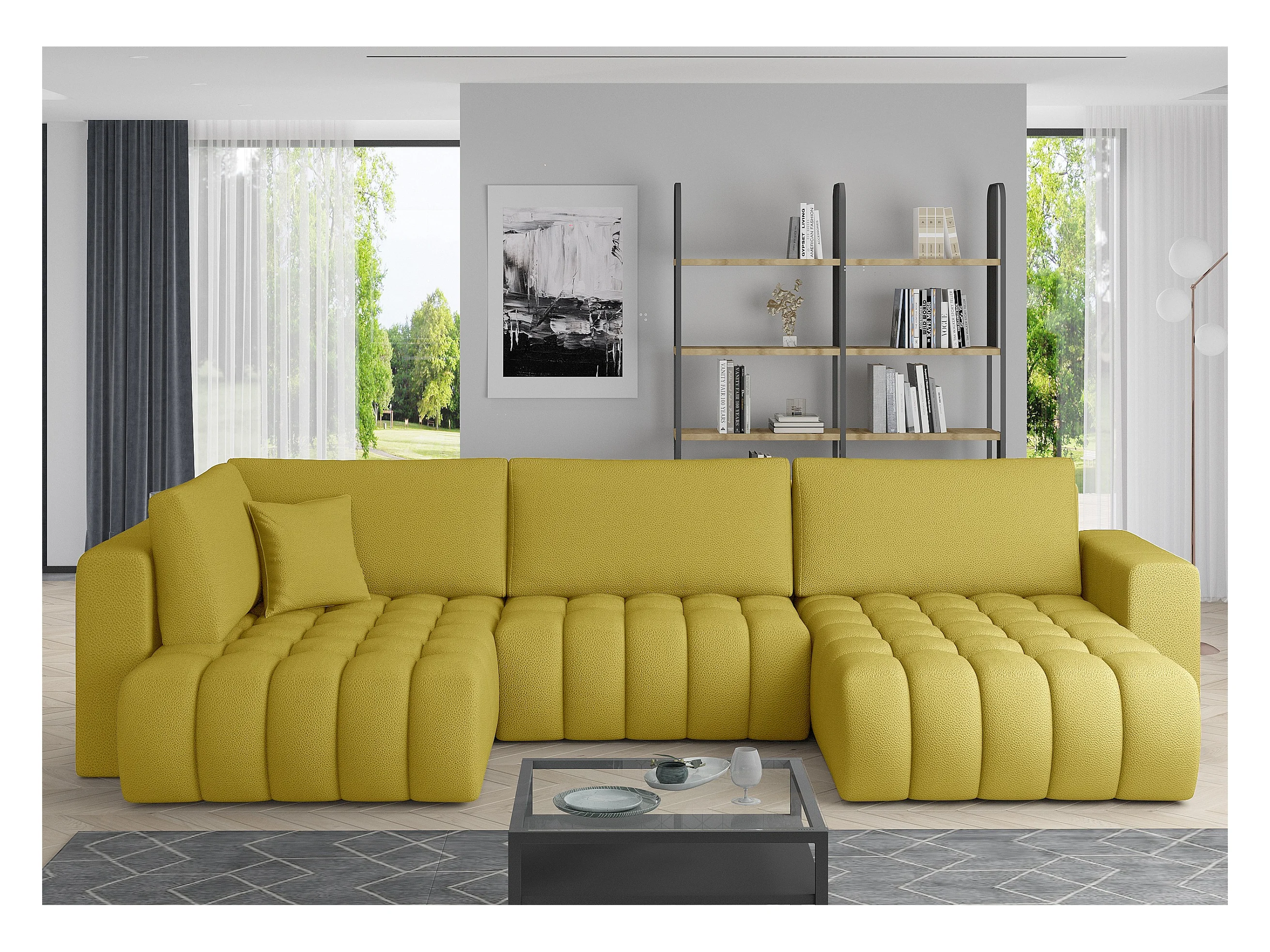 Canapé convertible design tissu matelassé jaune moutarde angle droit Bozen 250cm