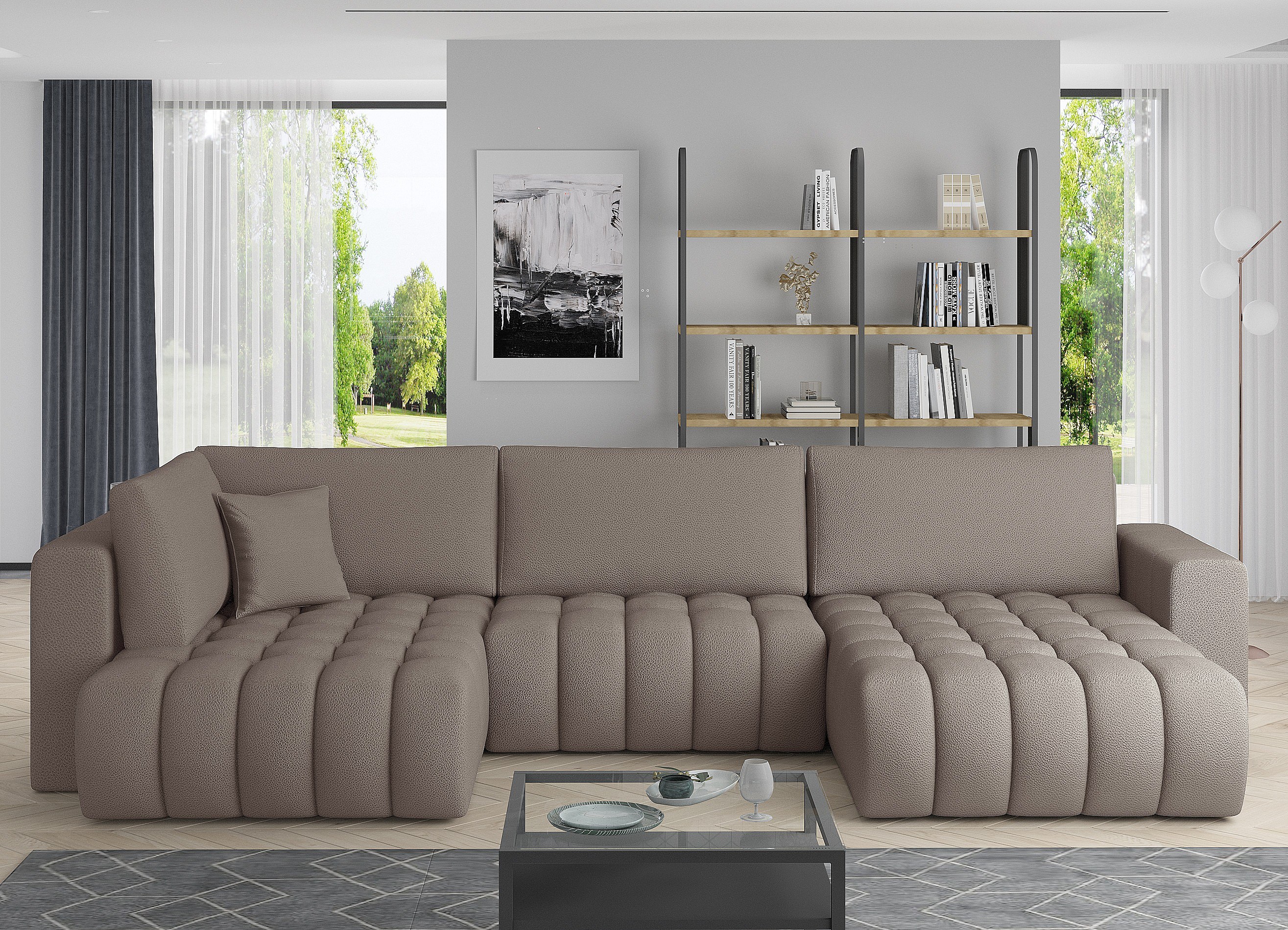 Canapé panoramique LARGOS – Tissu-Marron clair