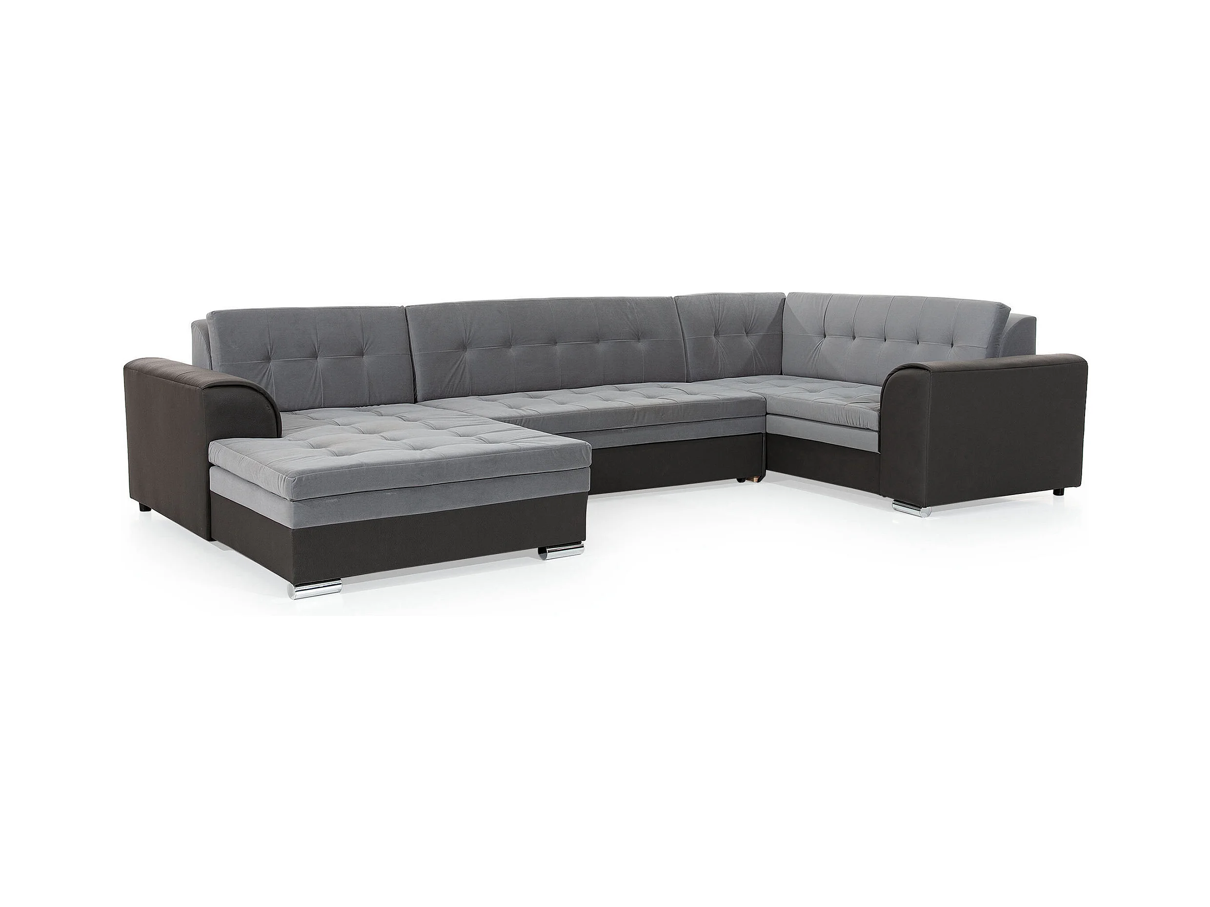Canapé panoramique convertible DIANO velours-Gris/Bleu foncé-Méridienne A gauche