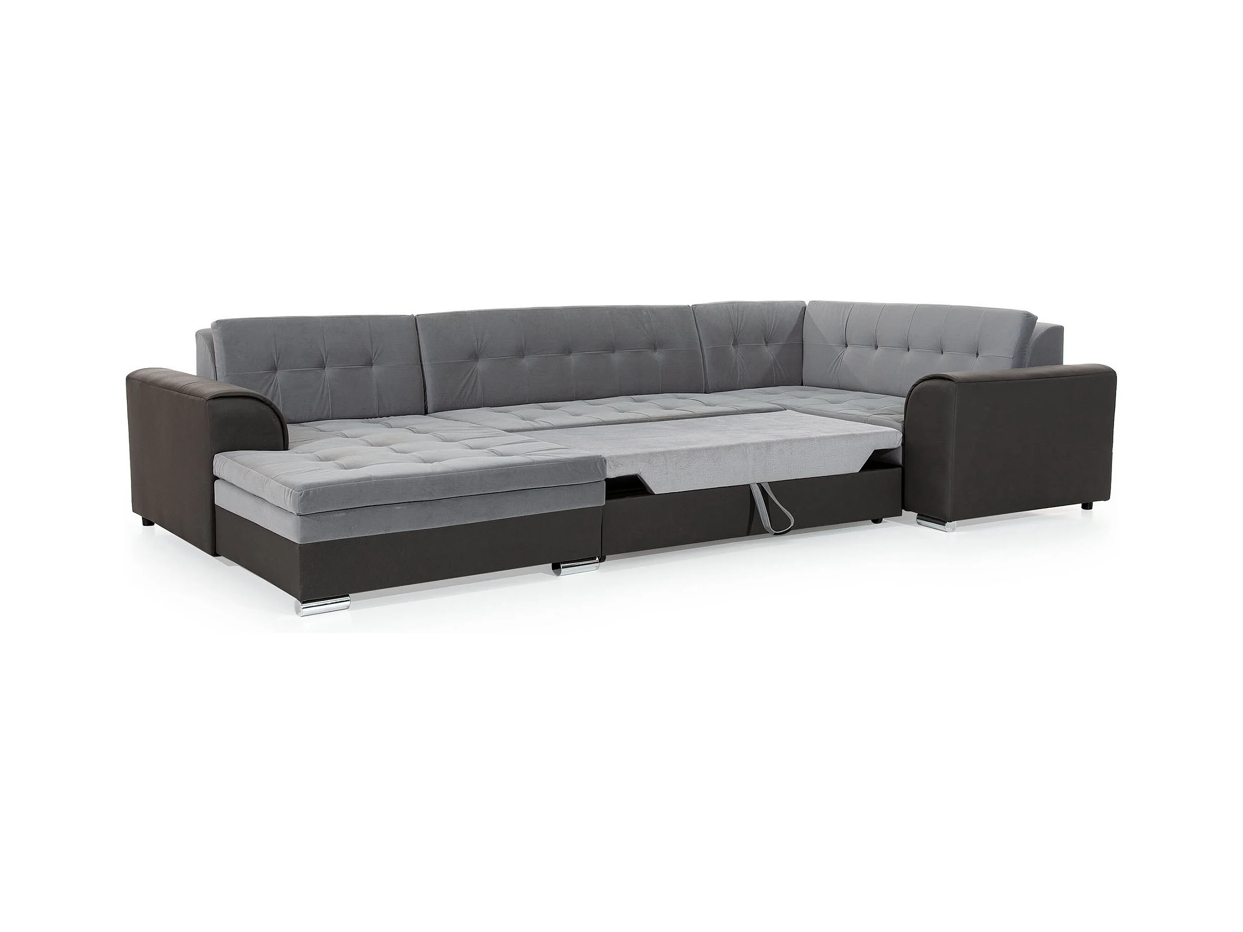 Canapé panoramique convertible DIANO velours-Gris/Bleu foncé-Méridienne A droite