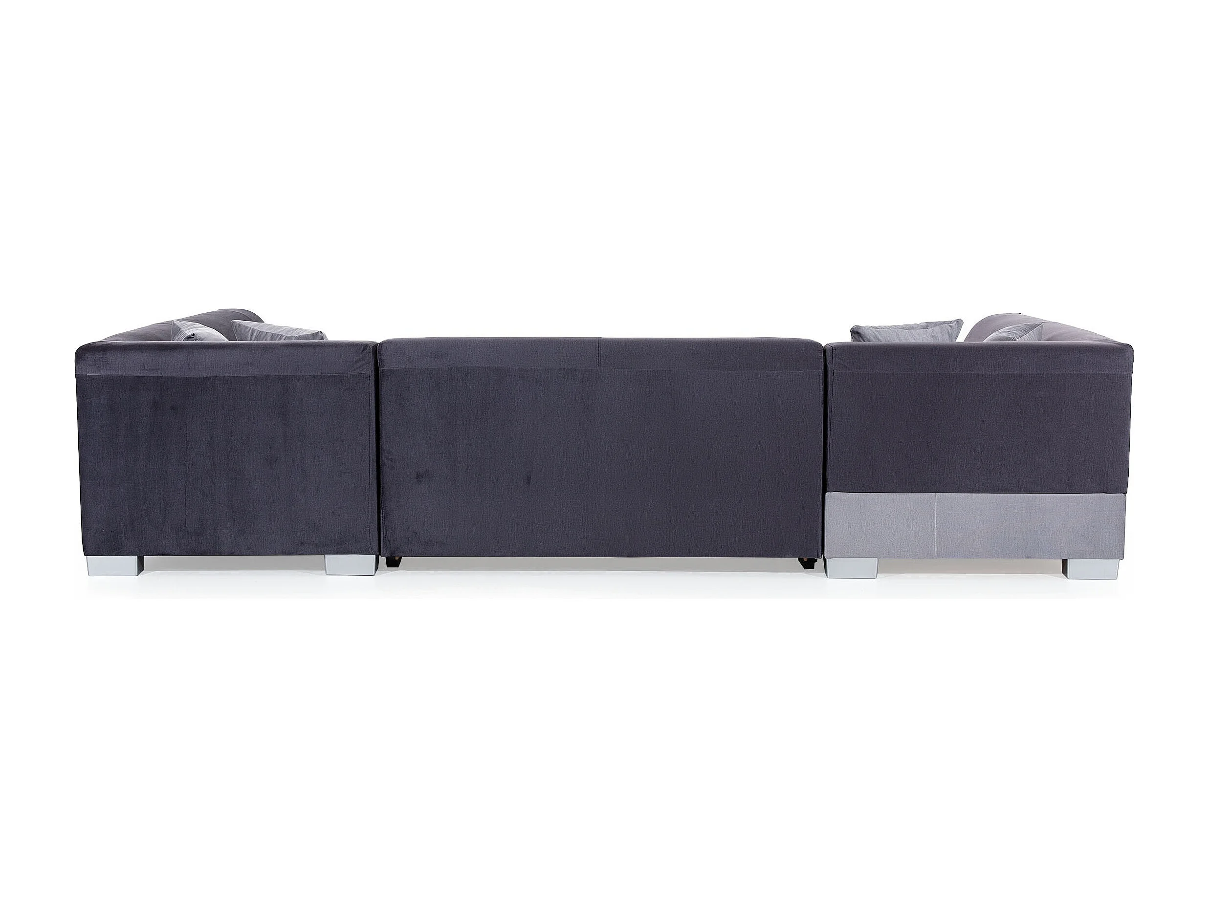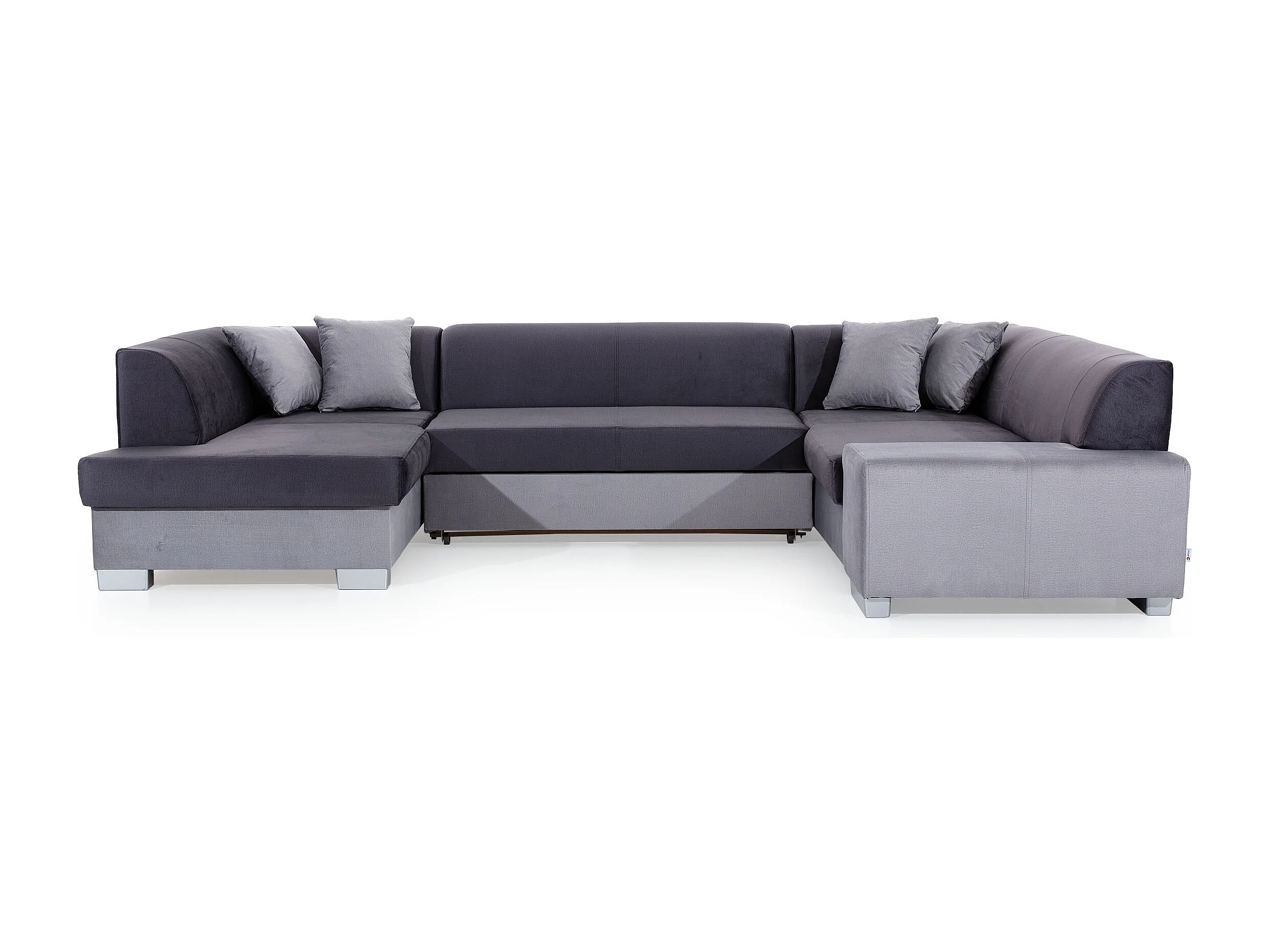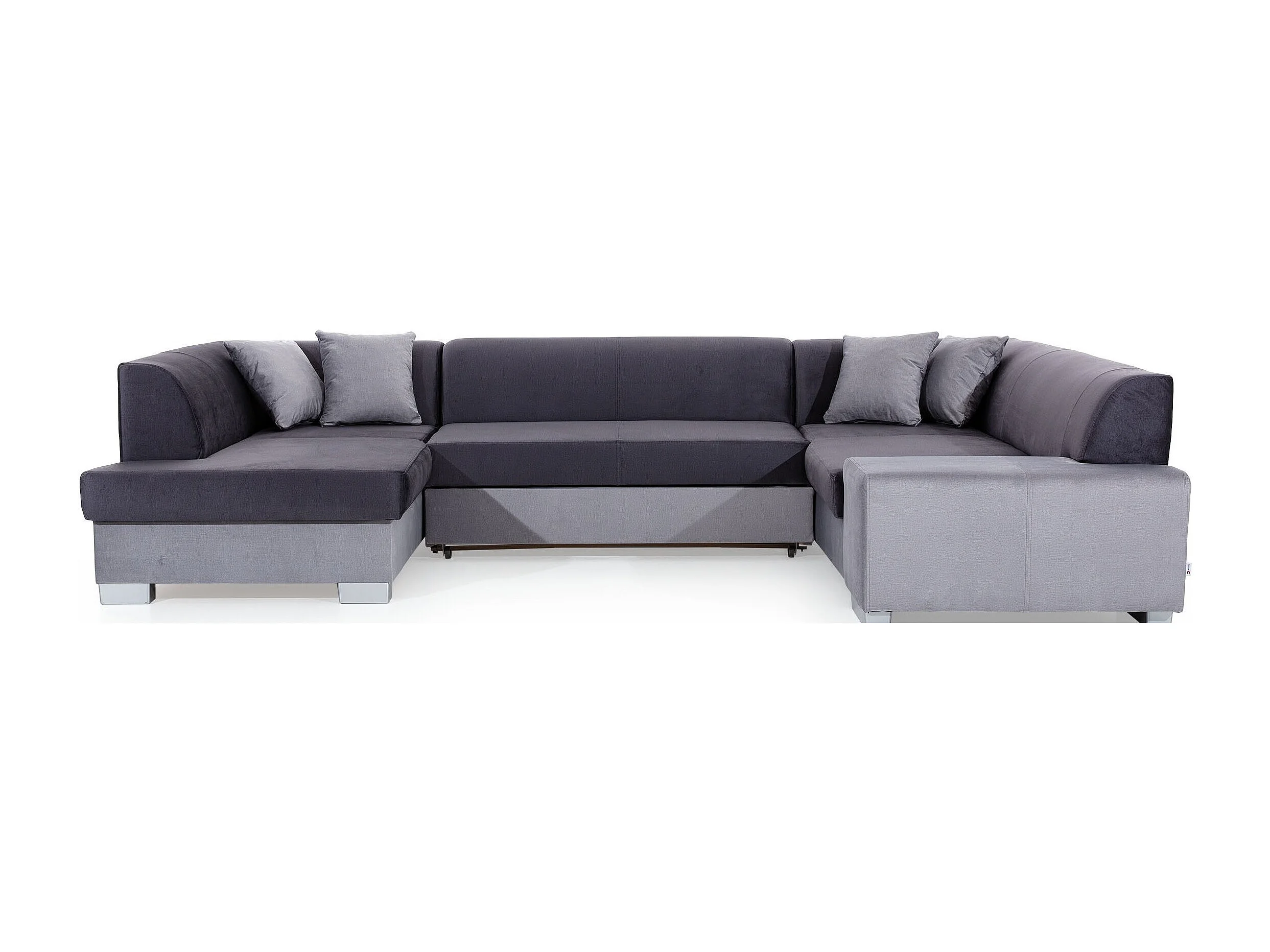 Canapé panoramique convertible LEVANO velours - Rangement et appuie-têtes réglables-Gris/Gris clair-Coffre à droite