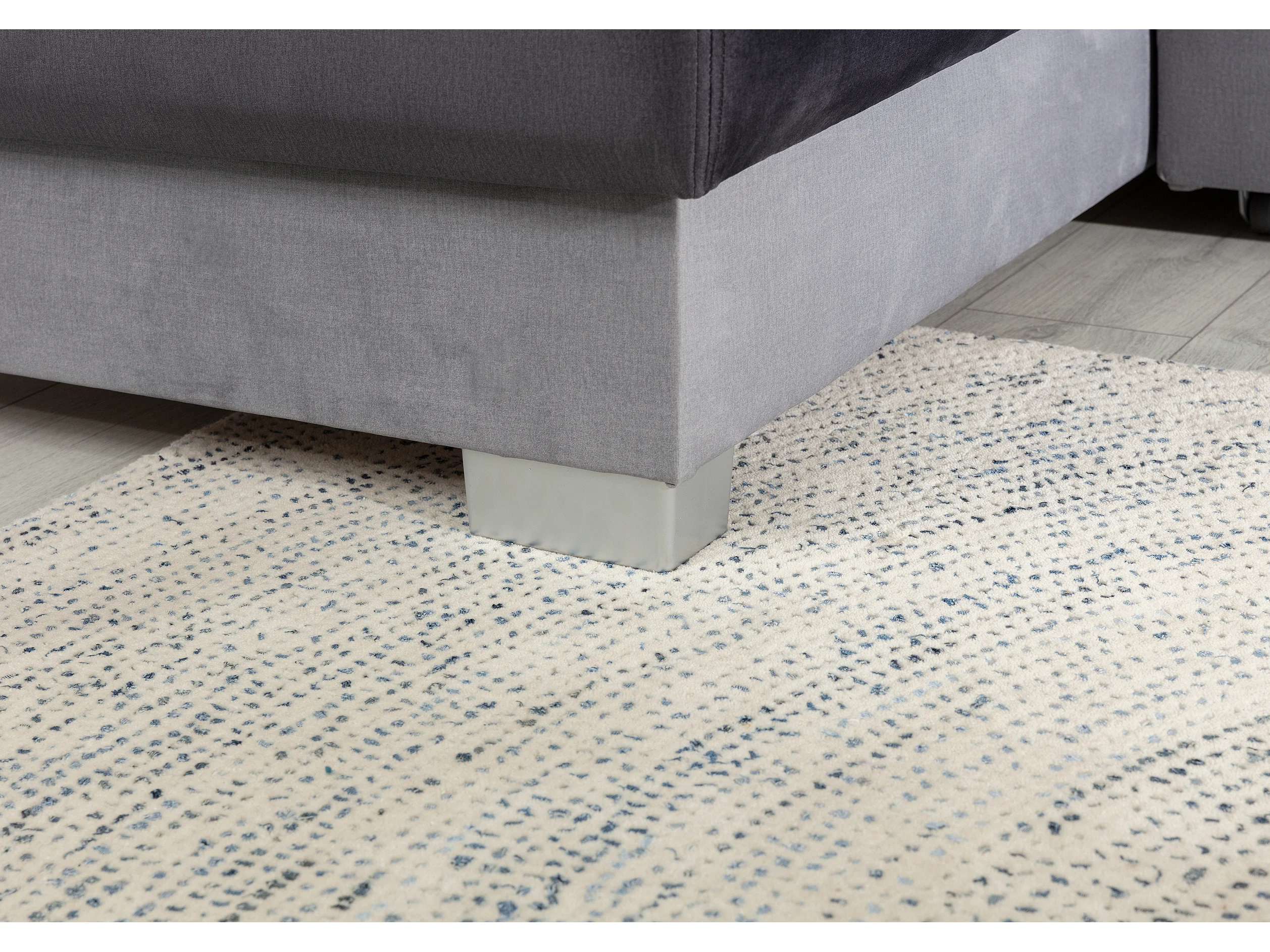 Canapé panoramique convertible LEVANO velours - Rangement et appuie-têtes réglables-Gris/Gris clair-Coffre à gauche
