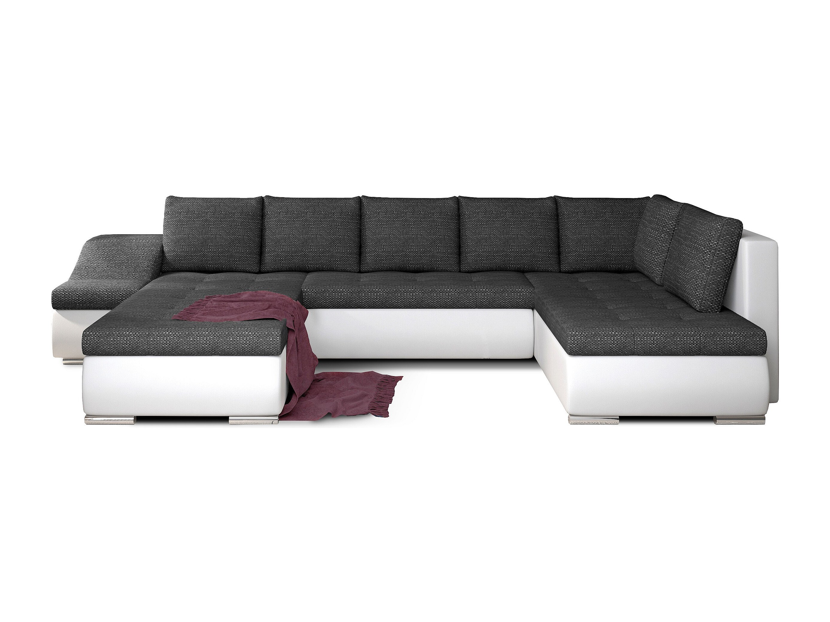 Canapé d'angle réversible et convertible bi-matières Neo - Pieds acier chromé-Noir/Noir