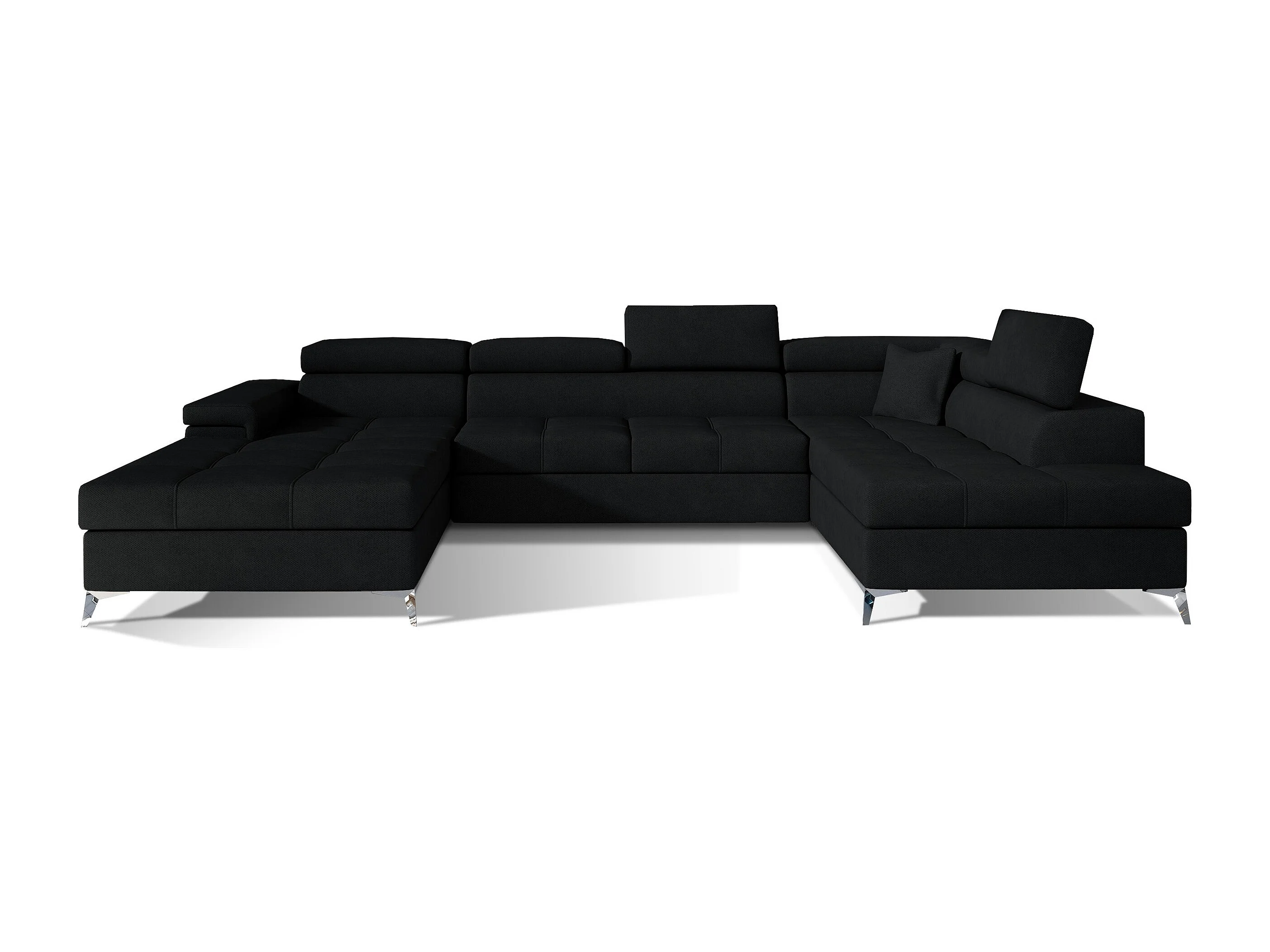 Canapé panoramique convertible LEVANO velours - Rangement et appuie-têtes réglables-Noir-Coffre à droite