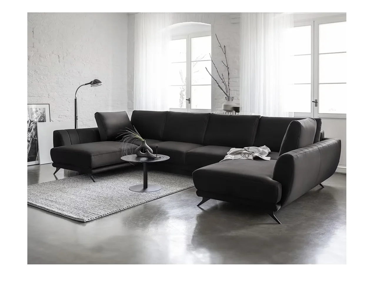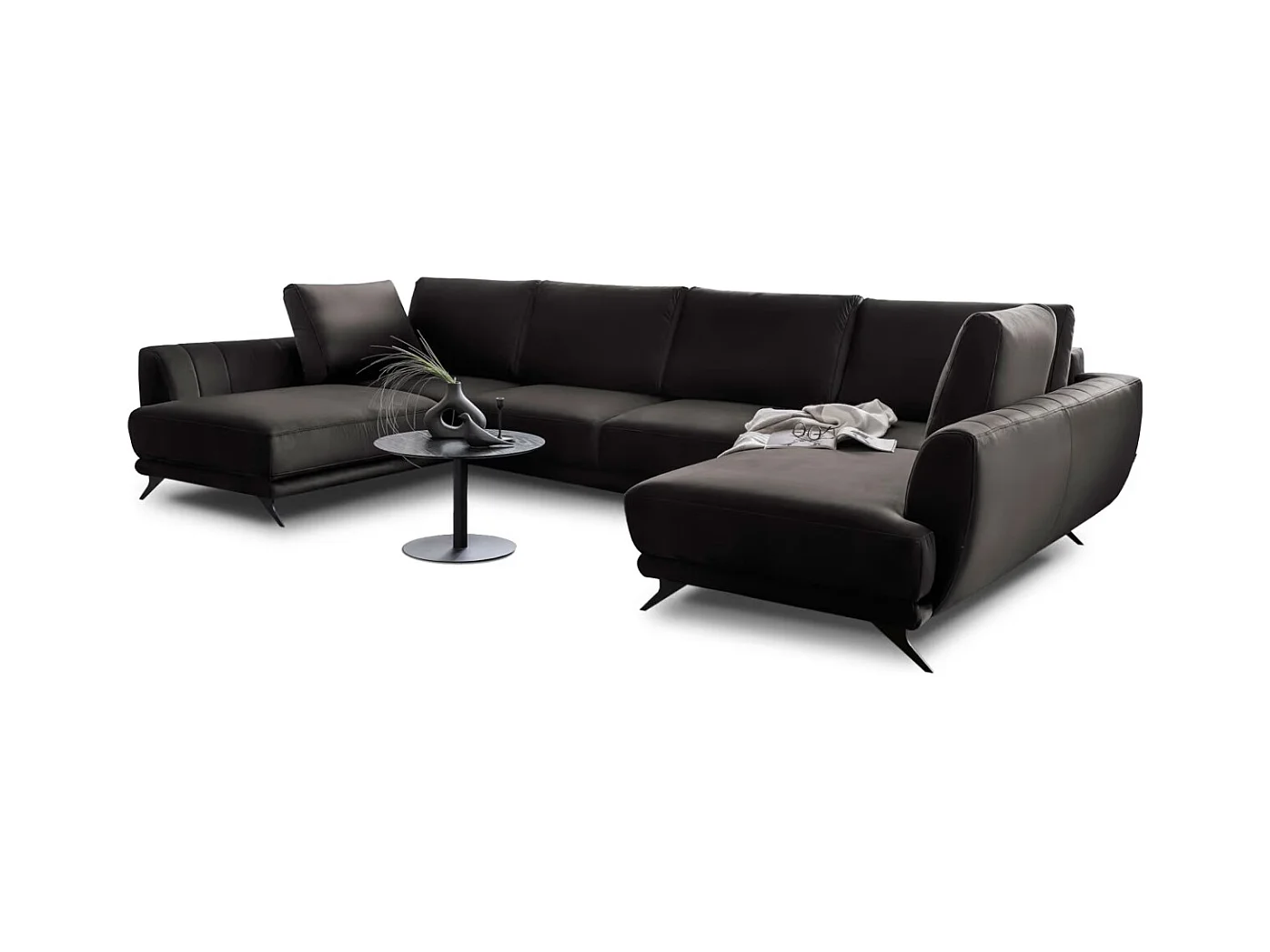 Canapé panoramique convertible LARGOS - Velours irrésistiblement douillet-Marron foncé