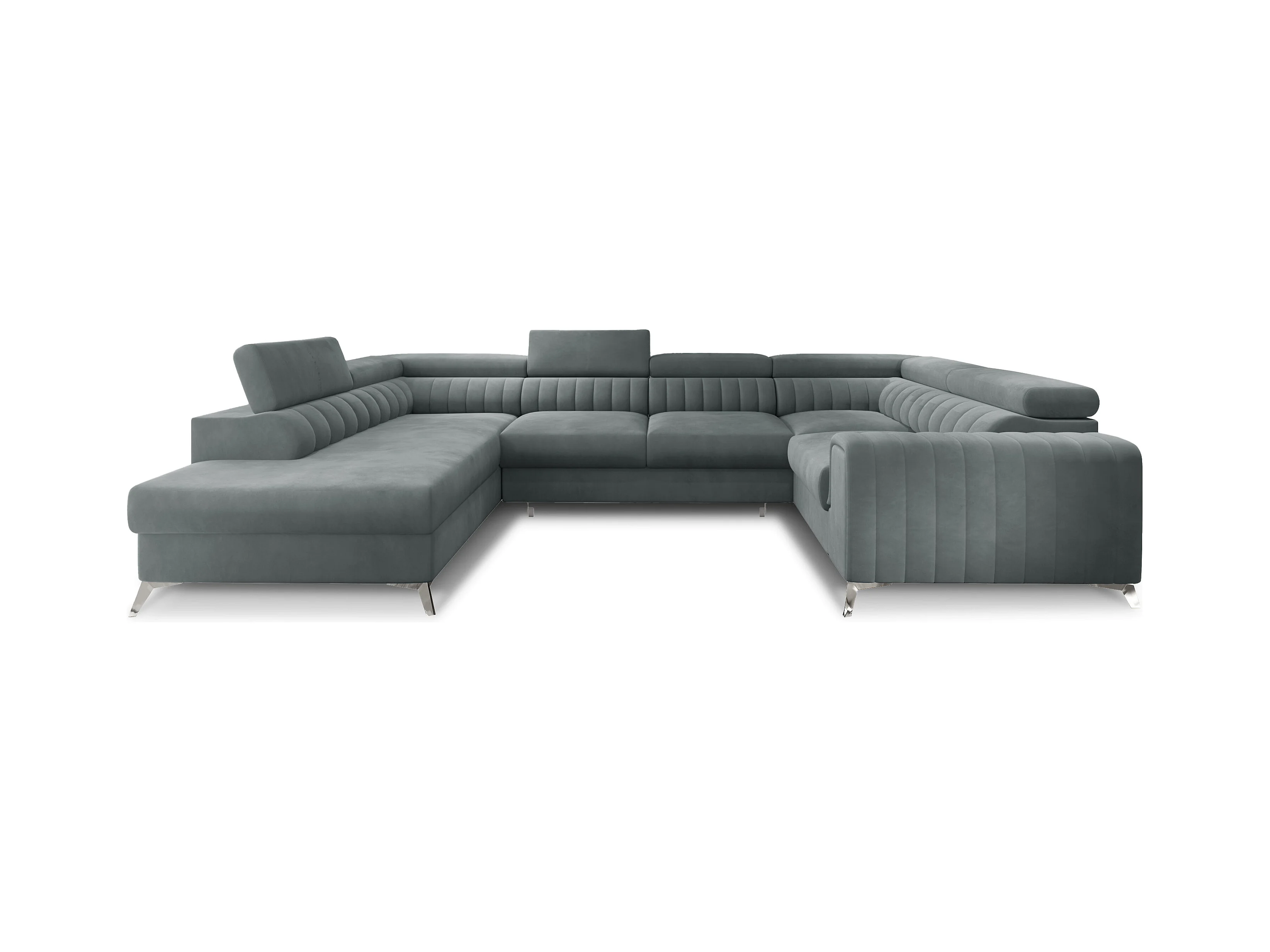 Canapé panoramique convertible LOUVE velours - Rangement et têtières réglables-Gris-Coffre à gauche