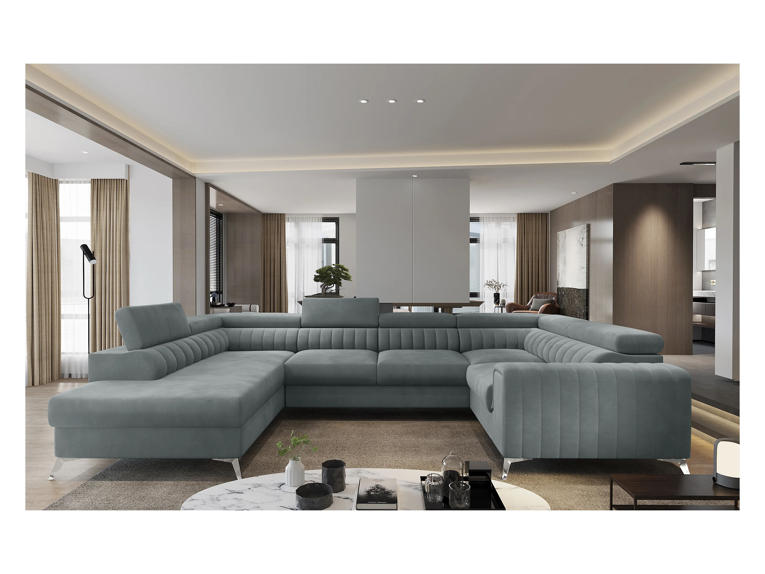 Canapé panoramique convertible LARGOS - Velours irrésistiblement douillet-Gris clair