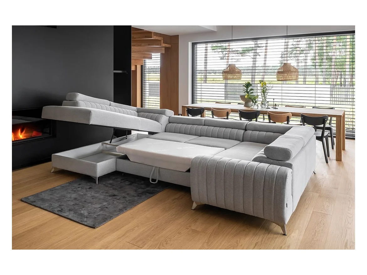 Canapé panoramique convertible velours gris foncé avec coffre de rangement Triano 342cm-Coffre de rangement à gauche