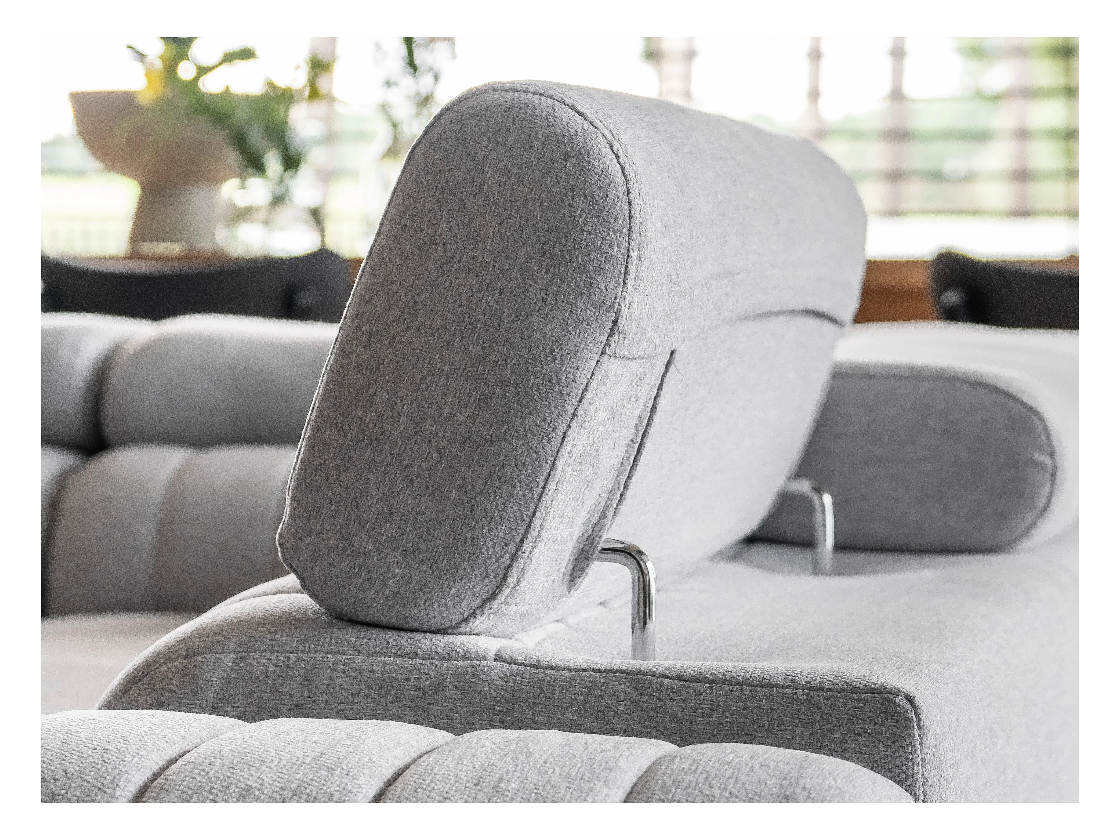 Canapé panoramique convertible LOUVE tissu - Rangement et têtières réglables-Gris perle-Coffre à droite
