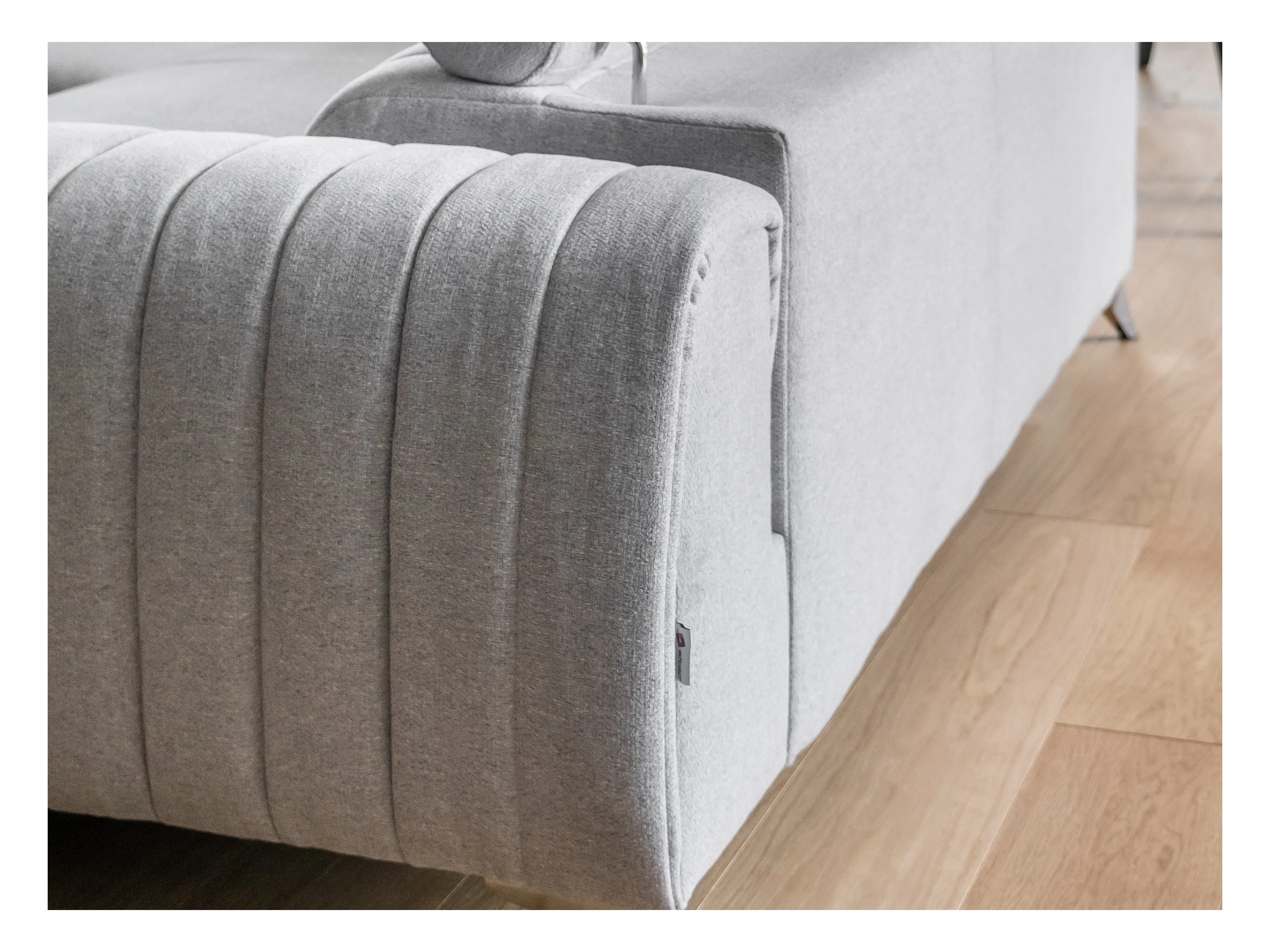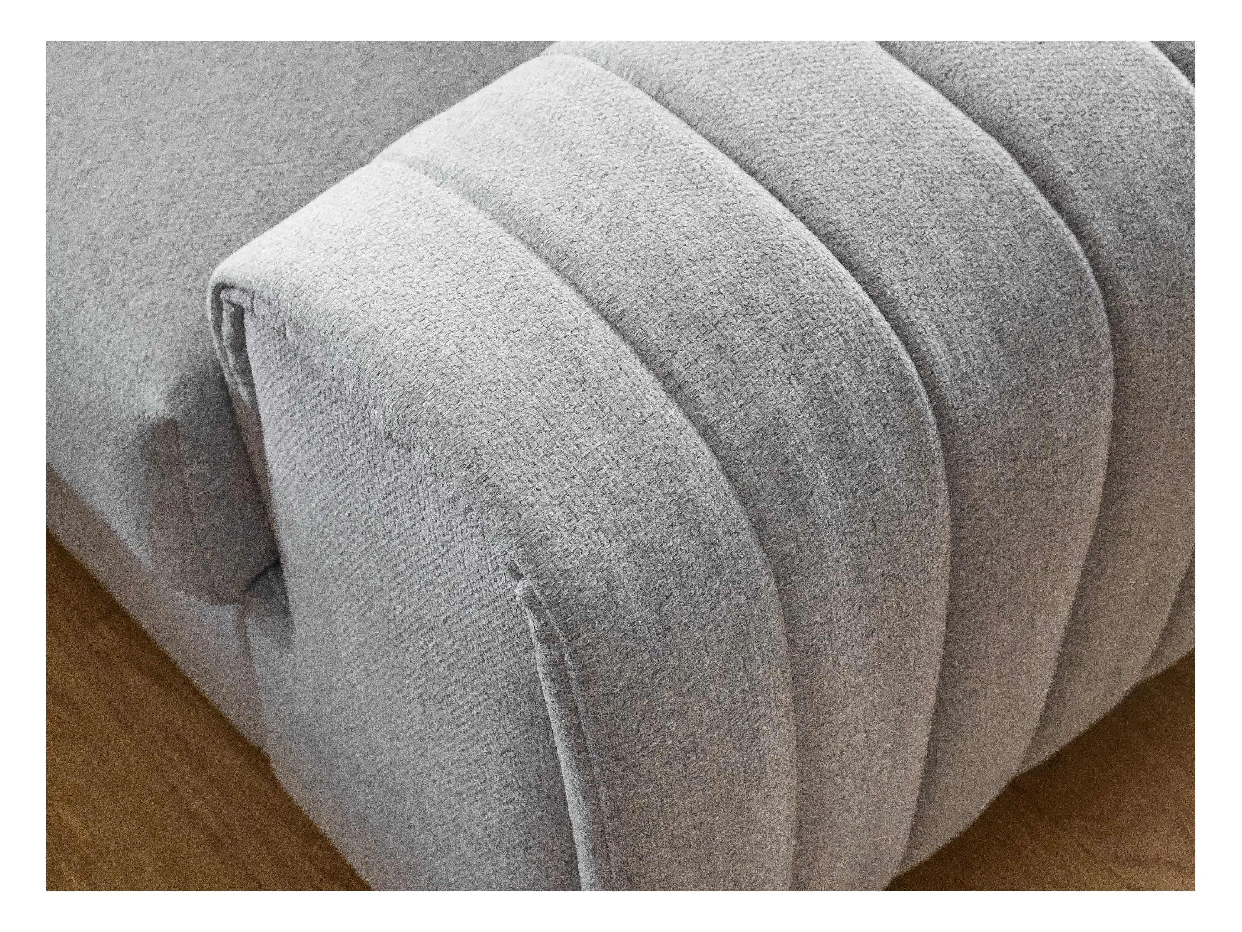 Canapé panoramique convertible design capitonné velours gris clair méridienne gauche Boston 350cm