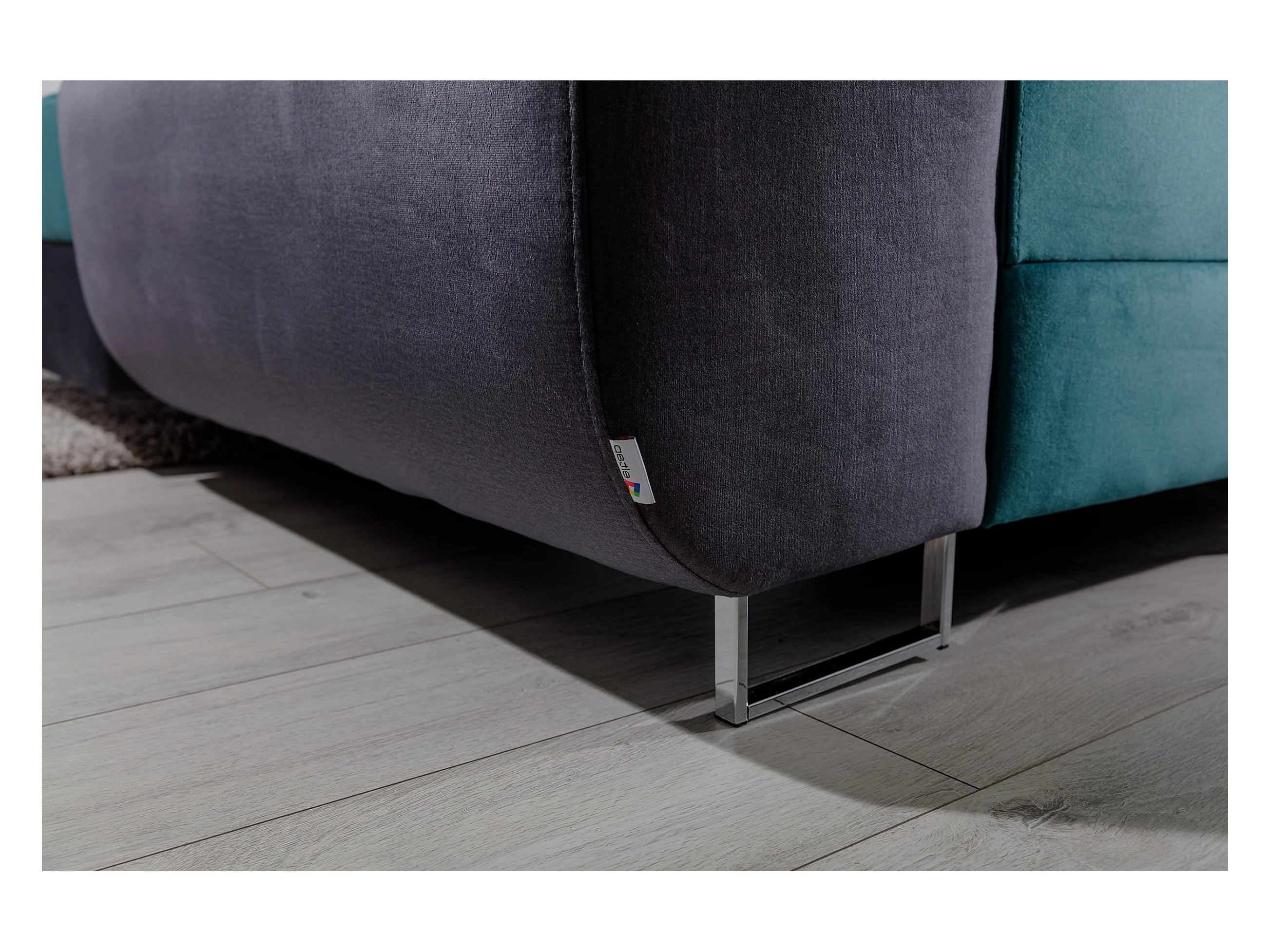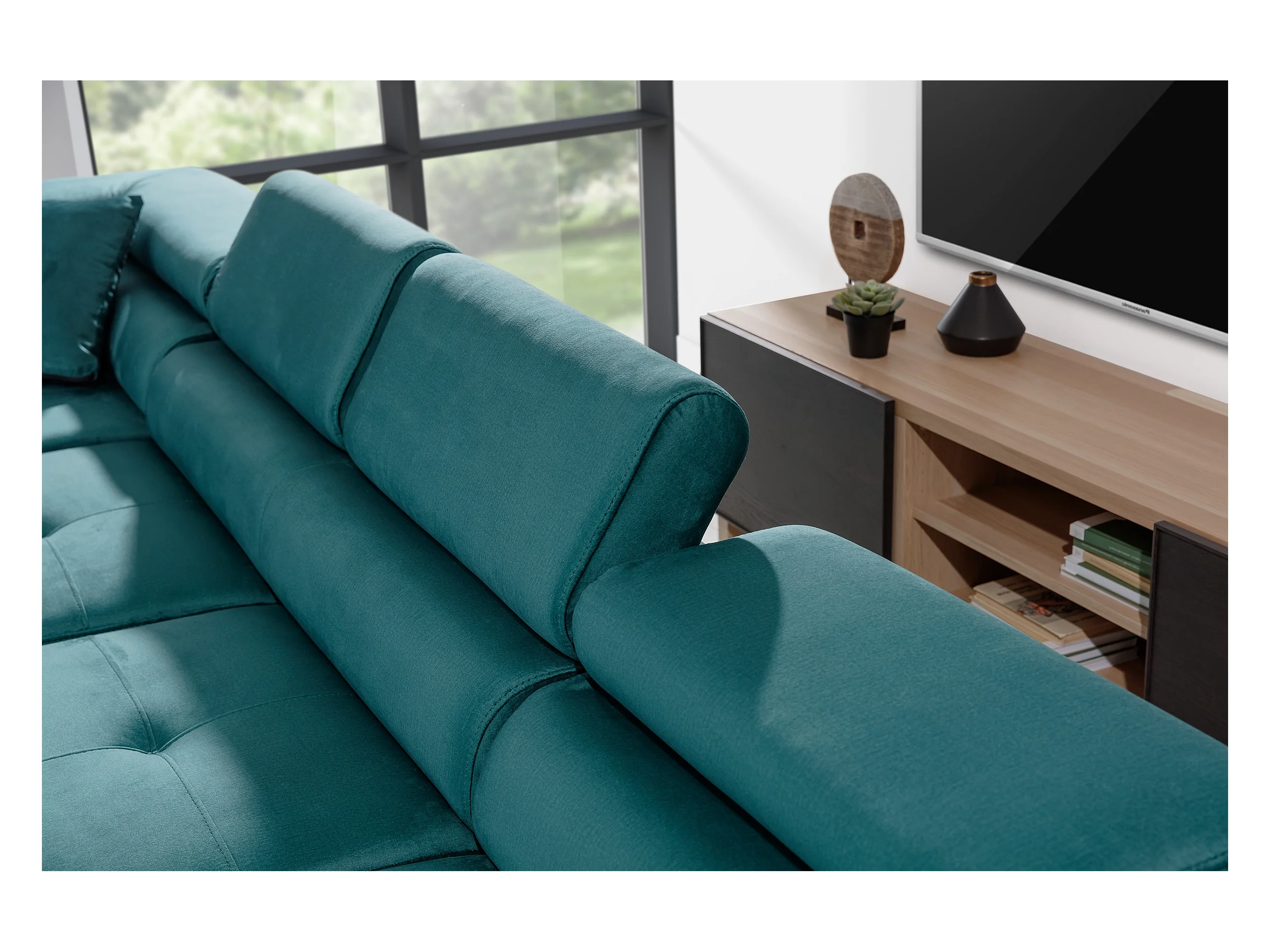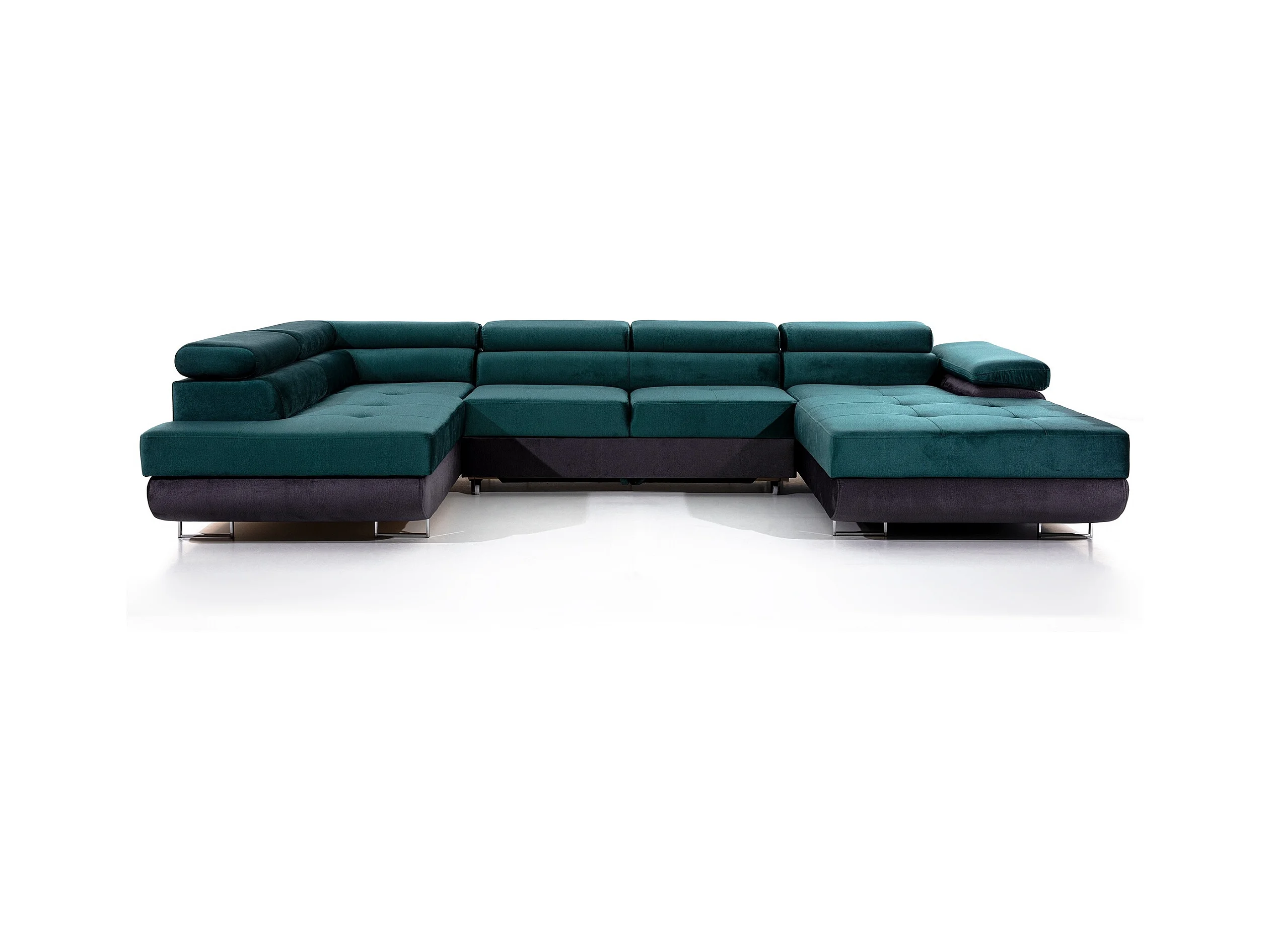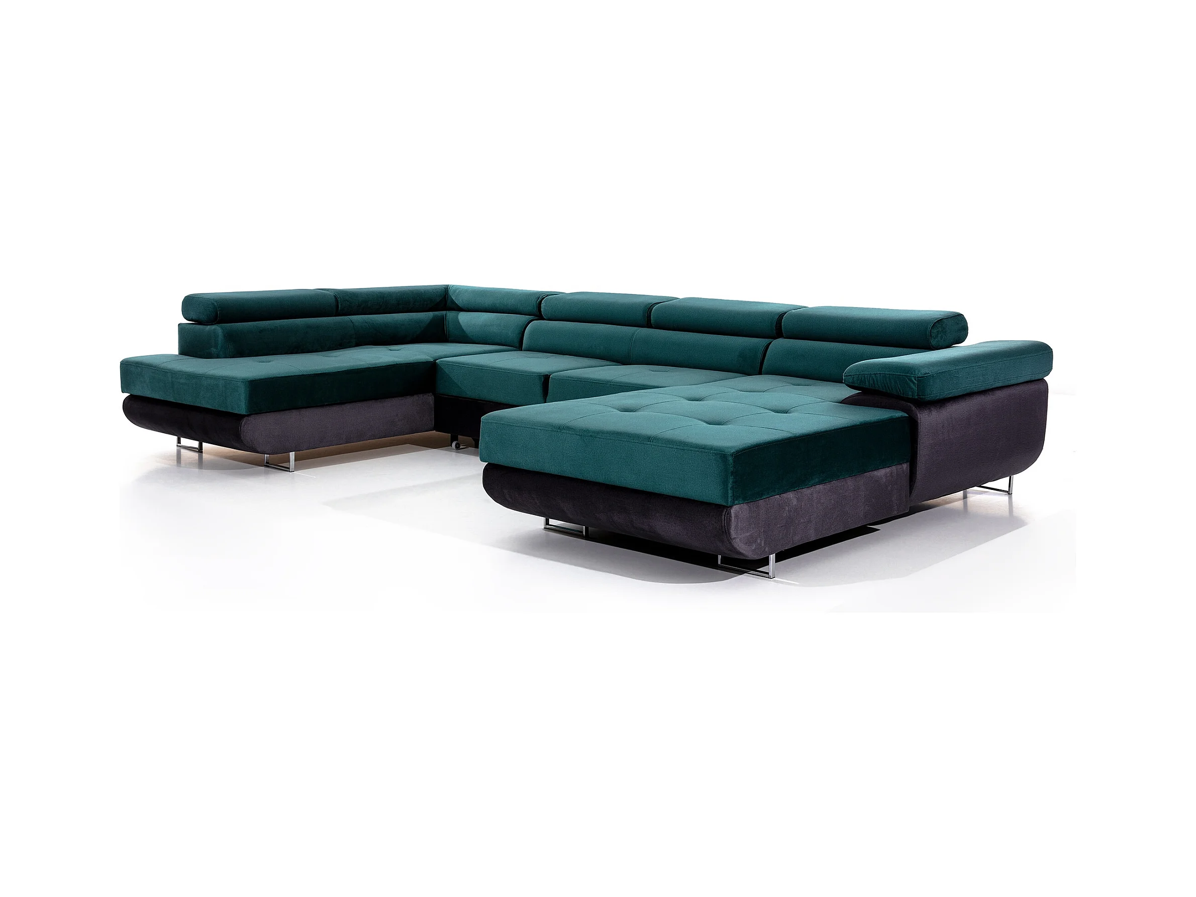 Canapé panoramique convertible ROMANO - Rangement et appuie-têtes réglables-Gris foncé/Vert-Coffre à gauche