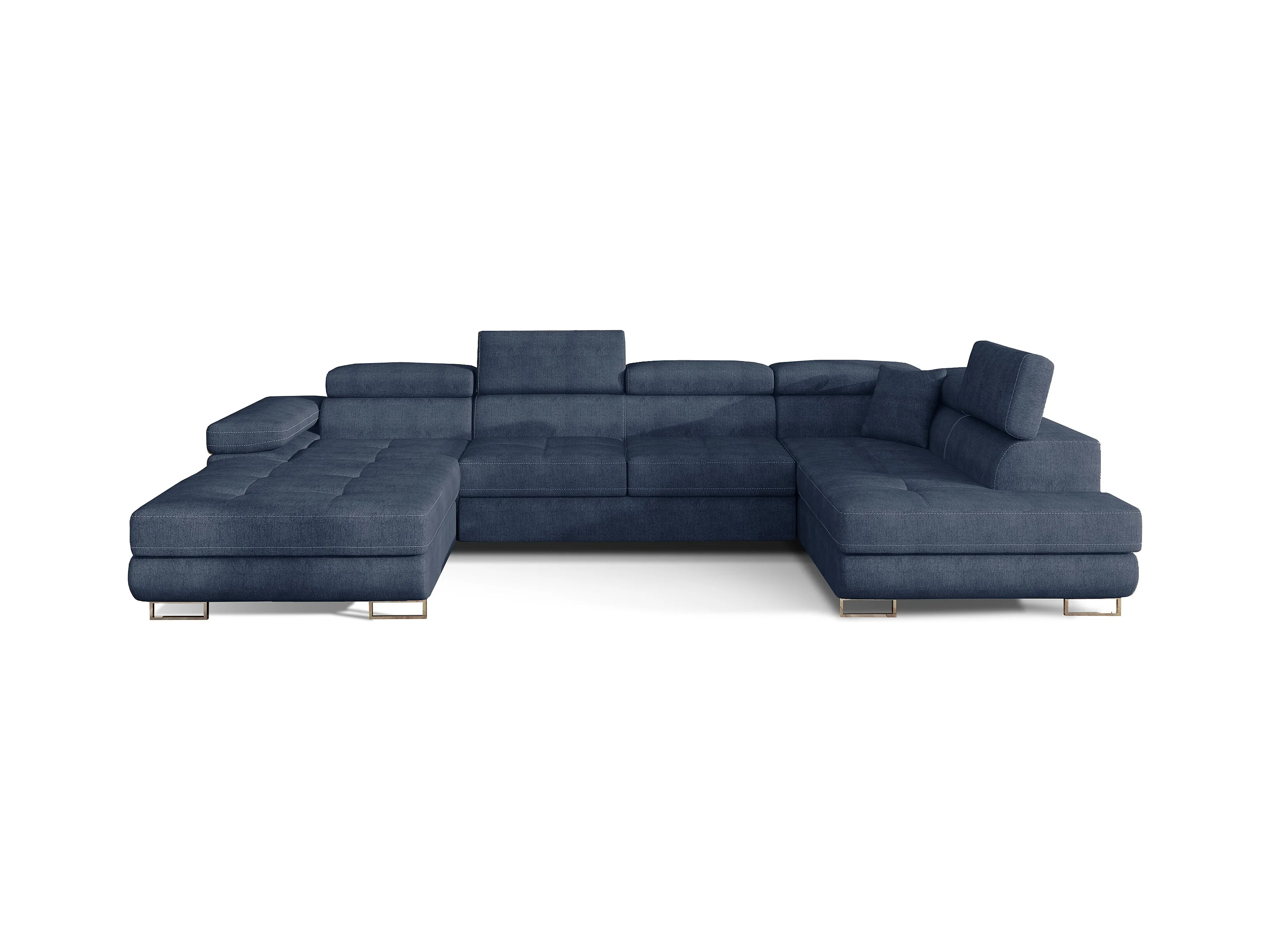 Canapé panoramique convertible design capitonné tissu bleu foncé méridienne droite Boston 350cm