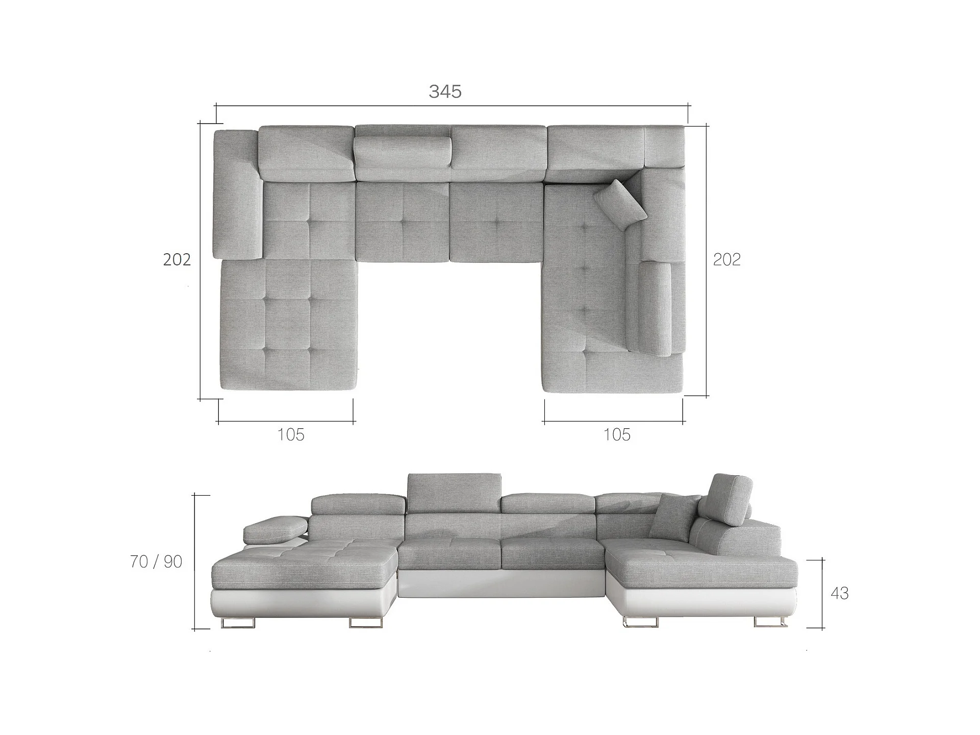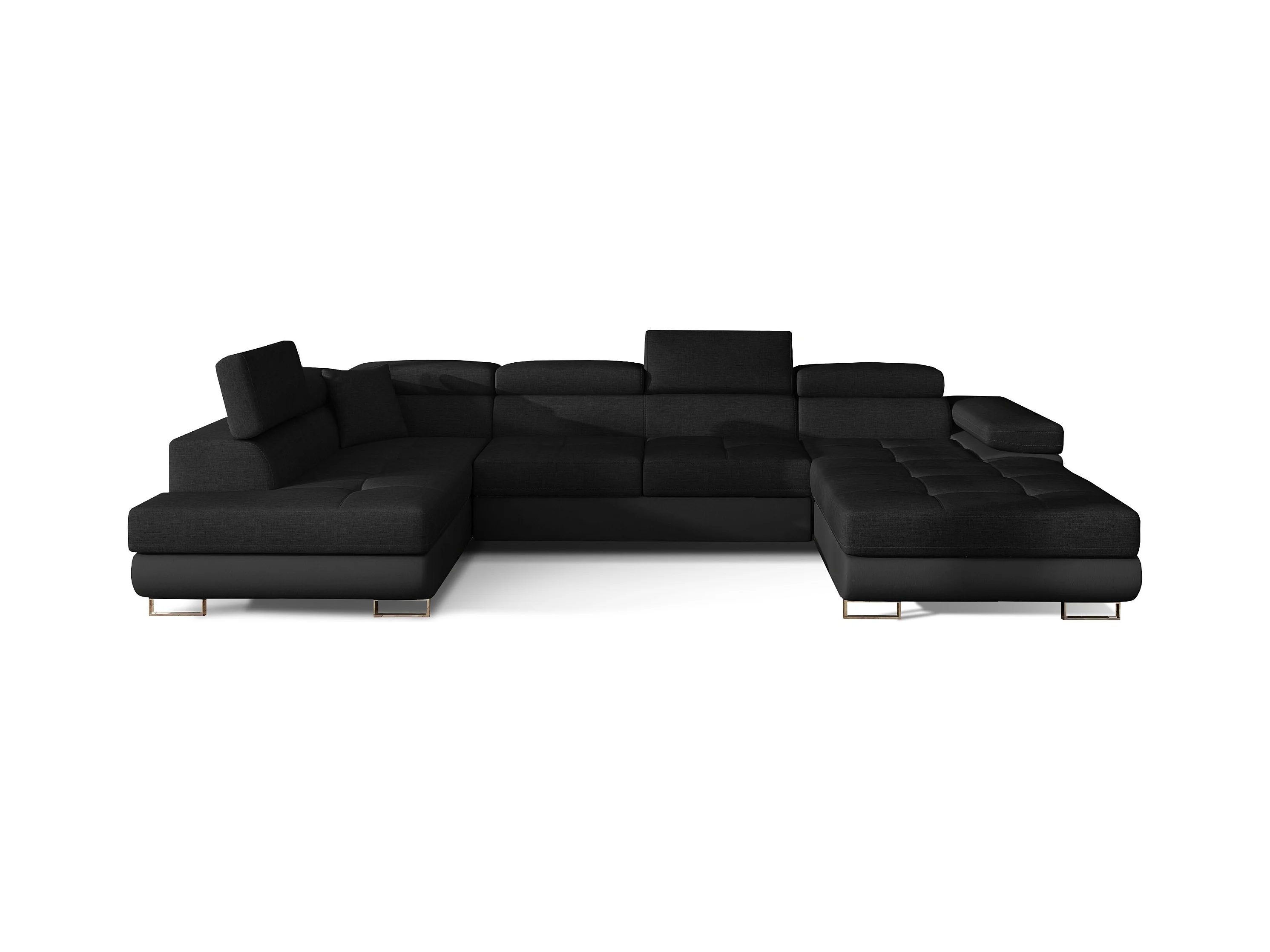 Canapé panoramique convertible ROMANO tissu - Rangement et appuie-têtes réglables-Bleu turquin-Coffre à gauche