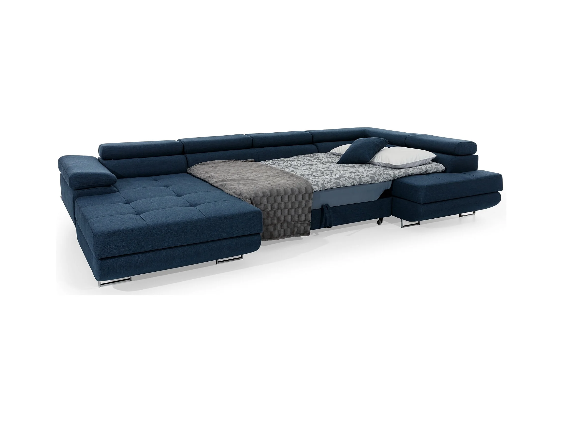 Canapé panoramique convertible design capitonné tissu bleu foncé méridienne gauche Boston 350cm