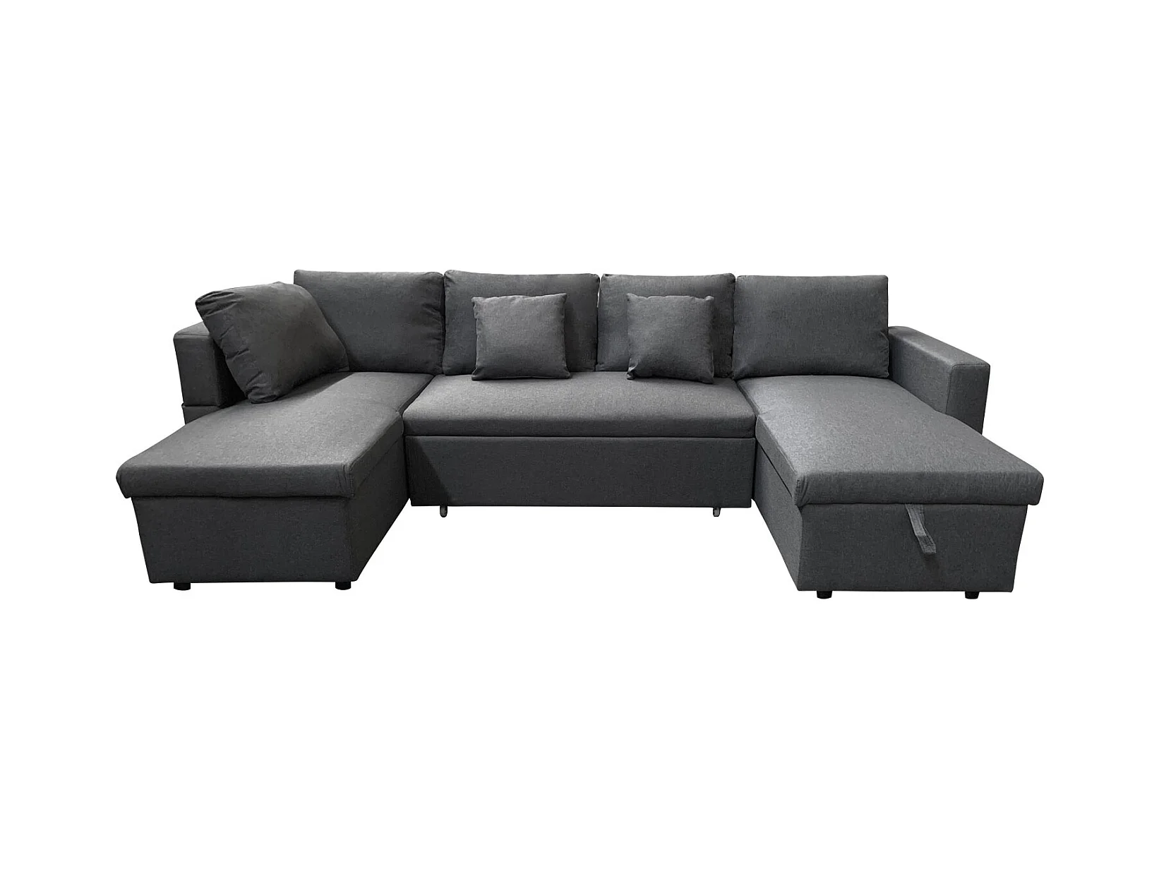 Canapé panoramique convertible EMPERO U en tissu et simili gris et noir