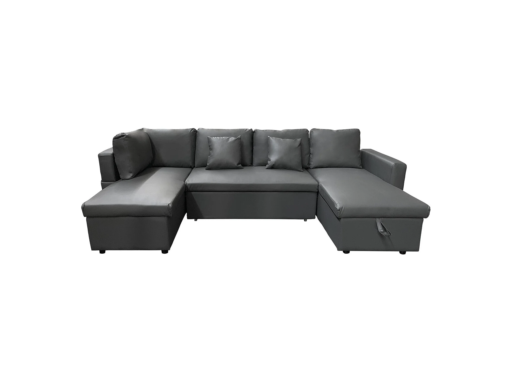 Canapé panoramique convertible simili SCOTT 4 places gris - HAPPY GARDEN
