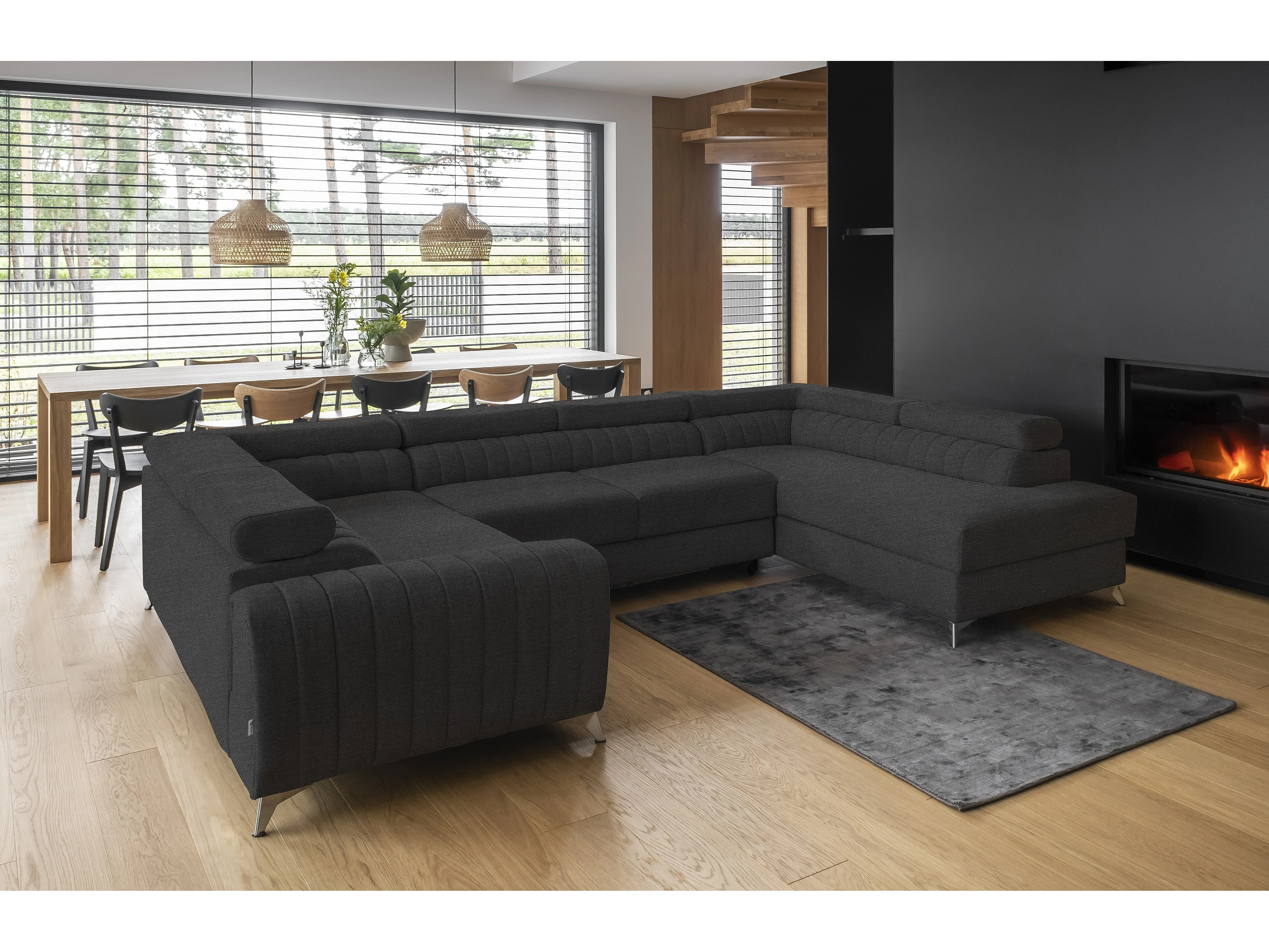 Canapé panoramique convertible tissu anthracite avec coffre de rangement Louve 340cm-Coffre de rangement à droite