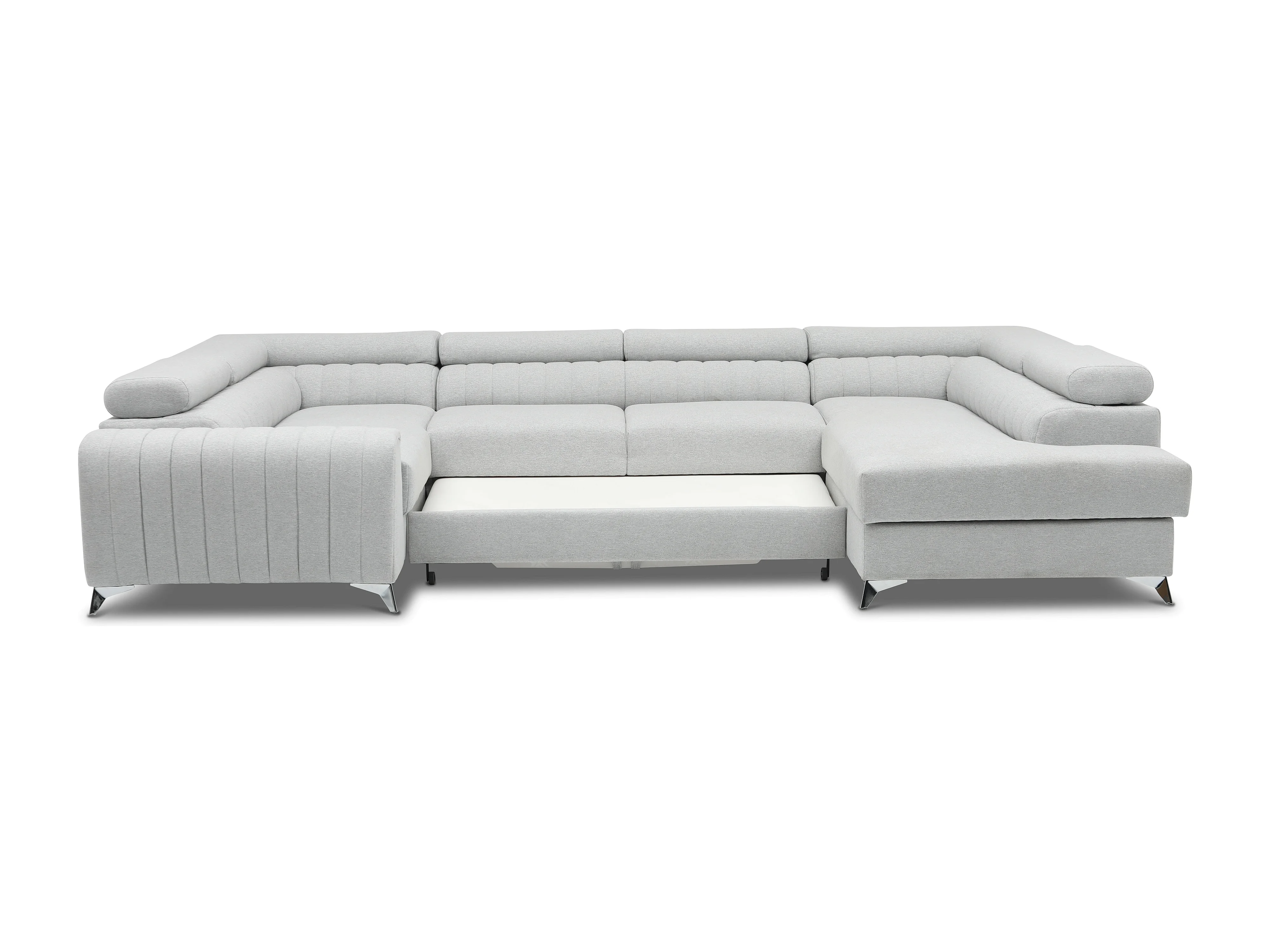 Canapé panoramique convertible tissu gris clair avec coffre de rangement Triano 342cm-Coffre de rangement à gauche