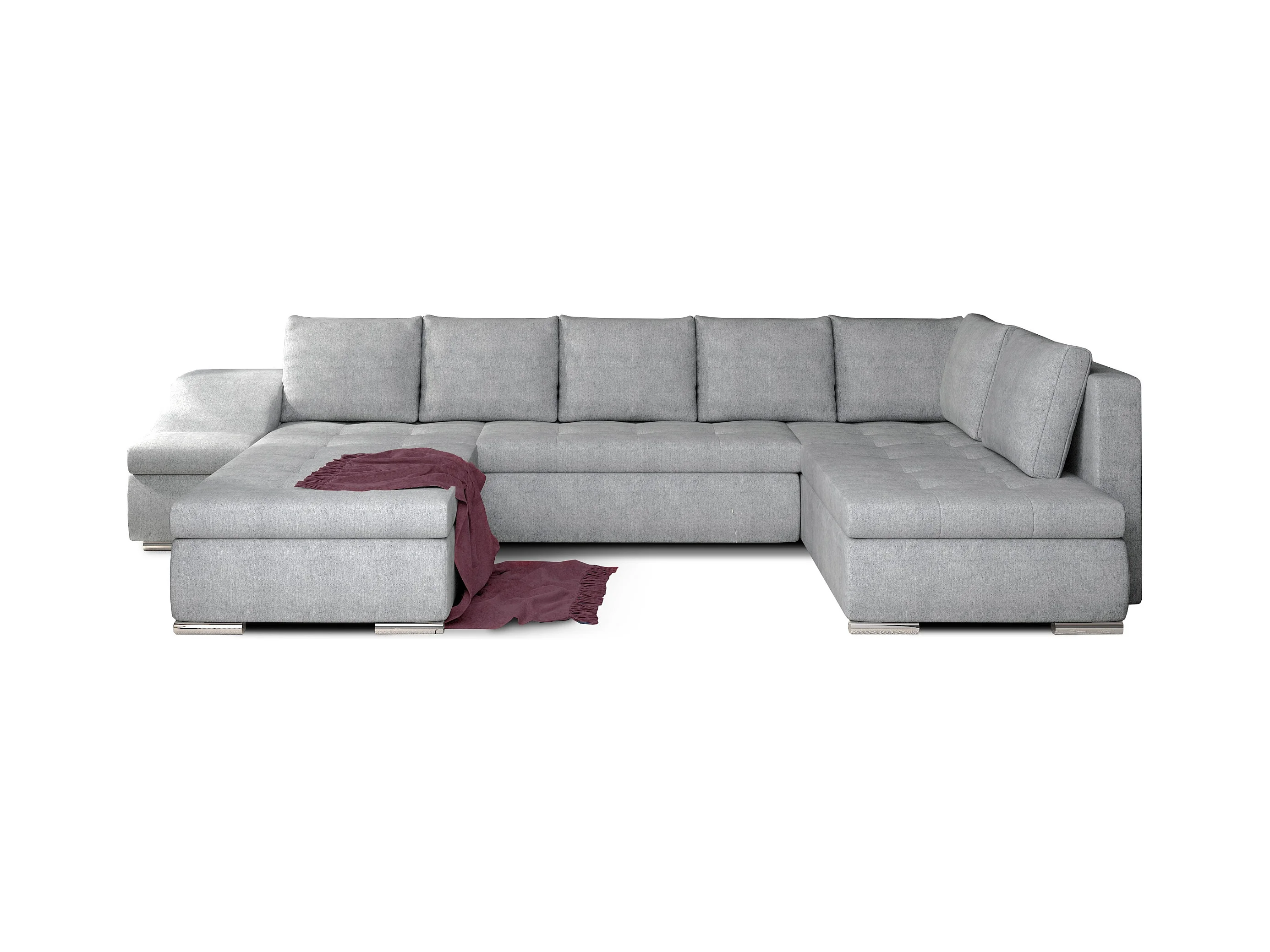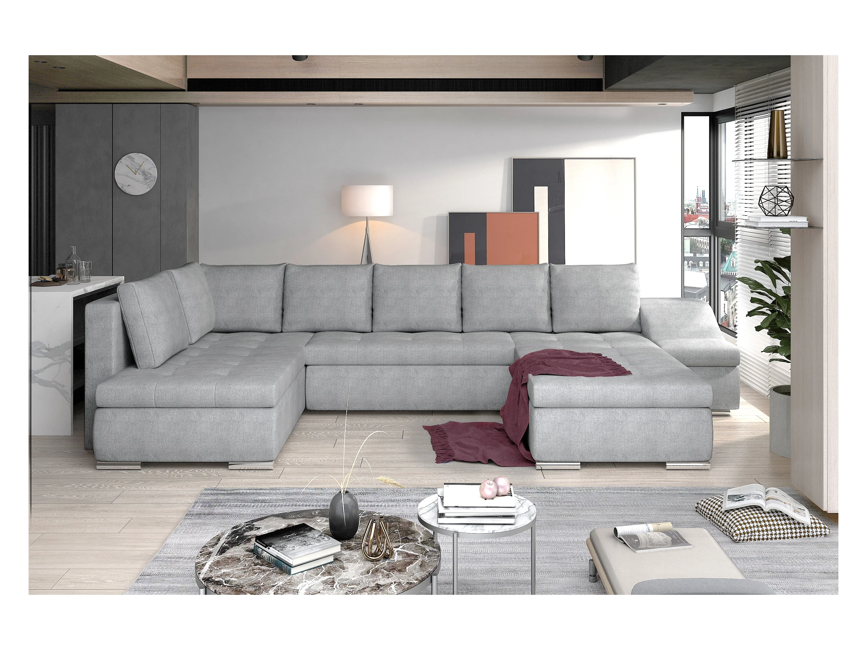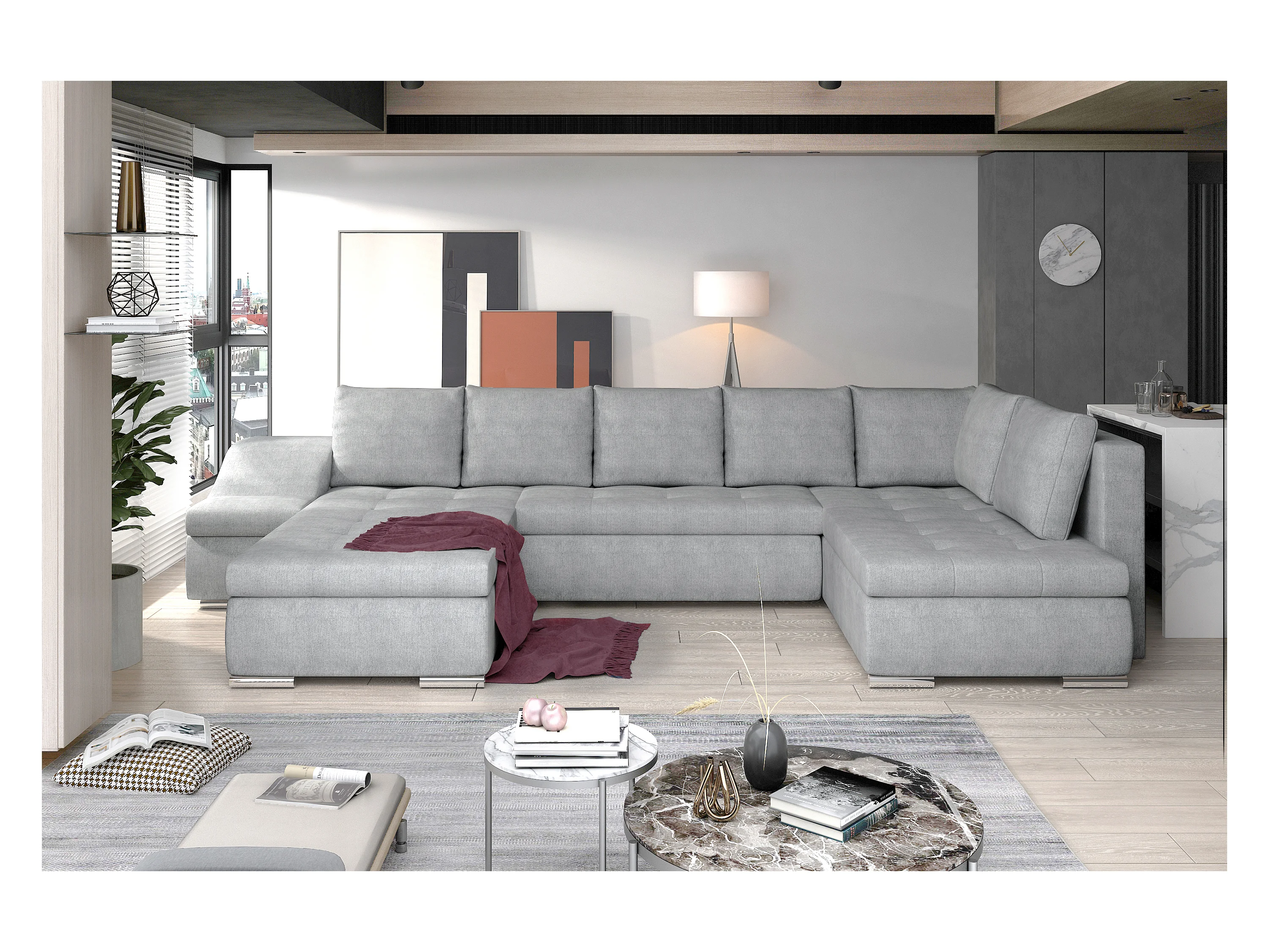 Canapé panoramique tissu gris clair convertible avec coffre de rangement Romano 345cm-Coffre de rangement à gauche