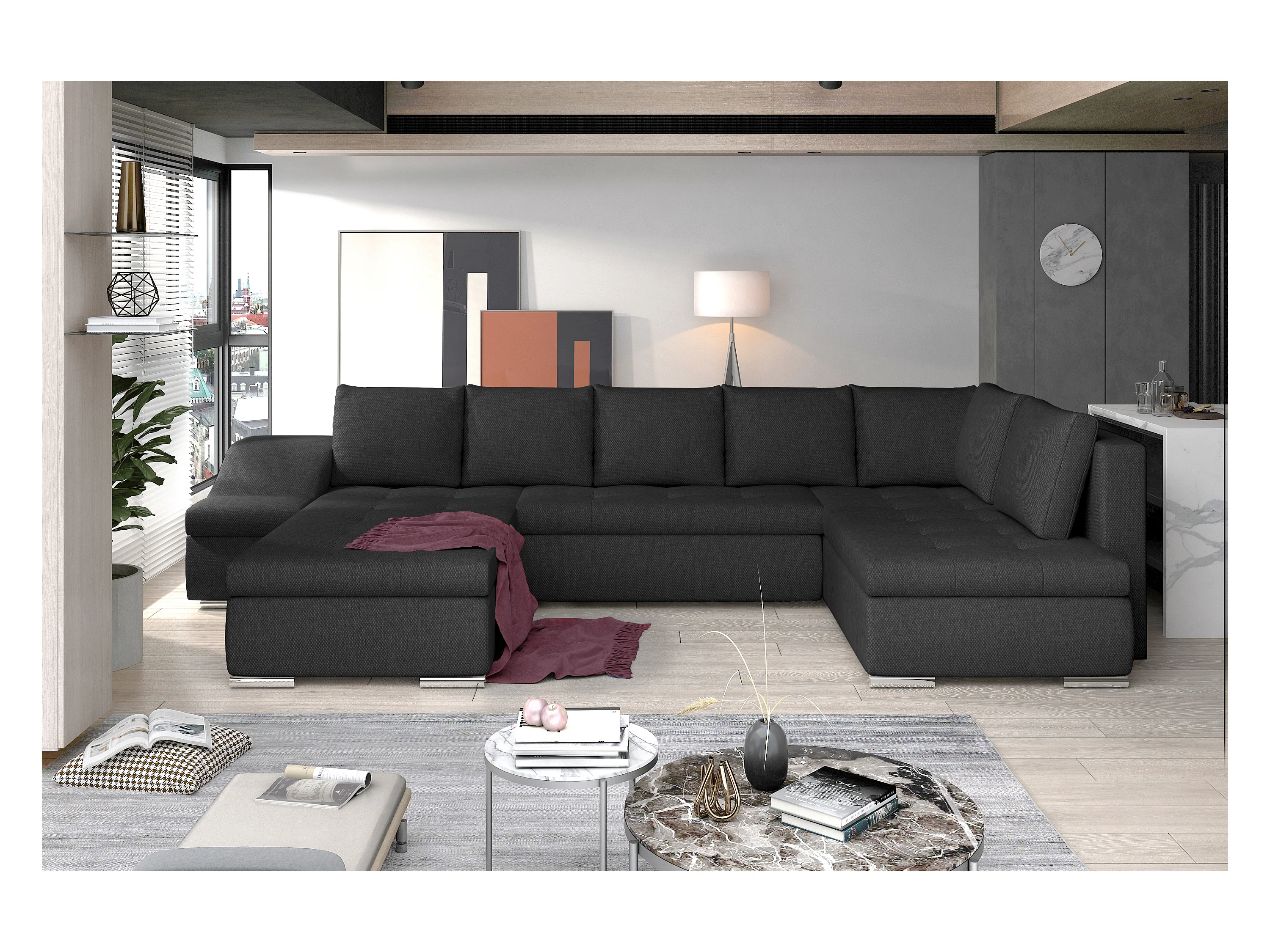 Canapé panoramique convertible tissu gris foncé Jonaz 340cm-Méridienne A gauche